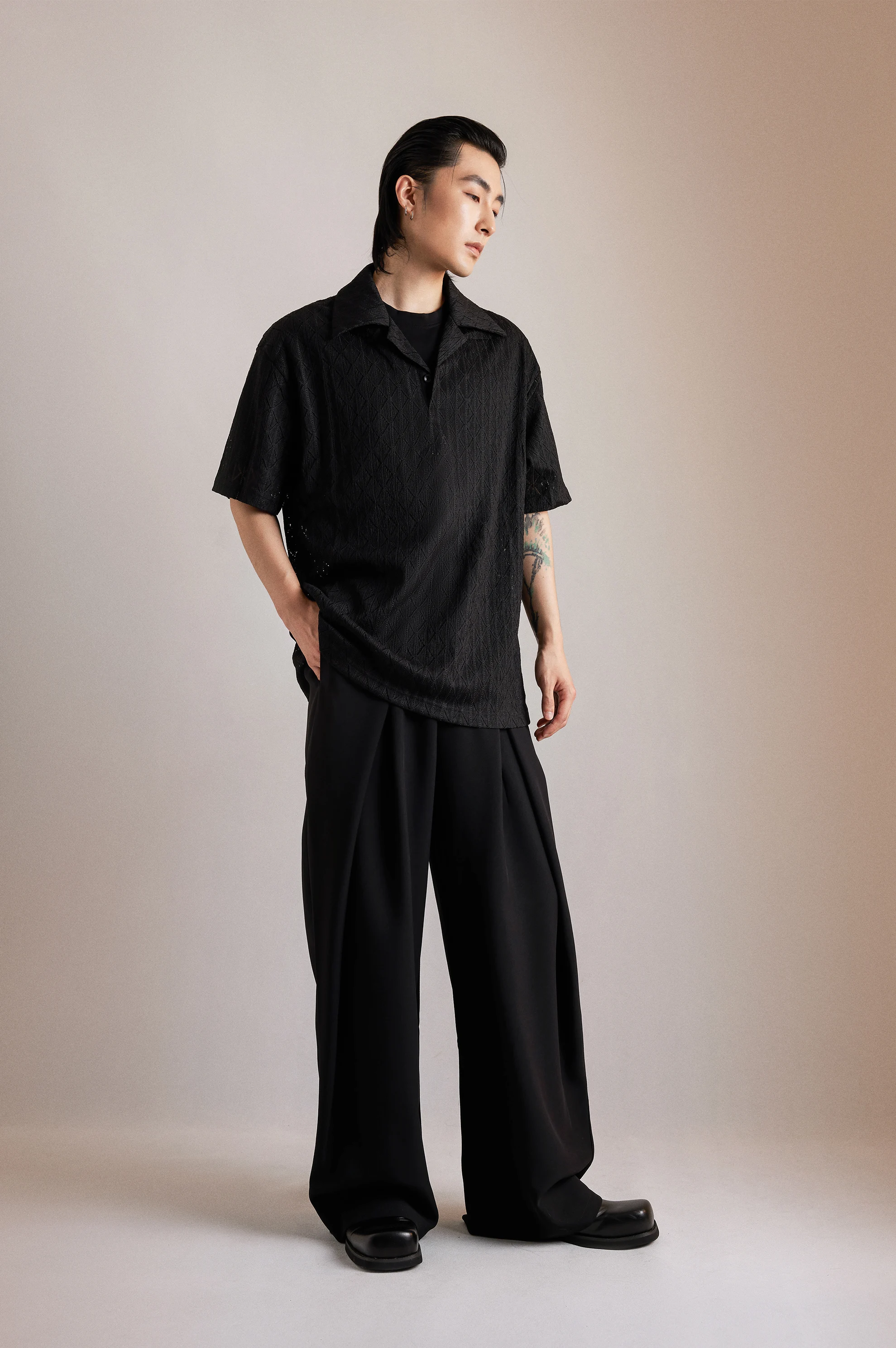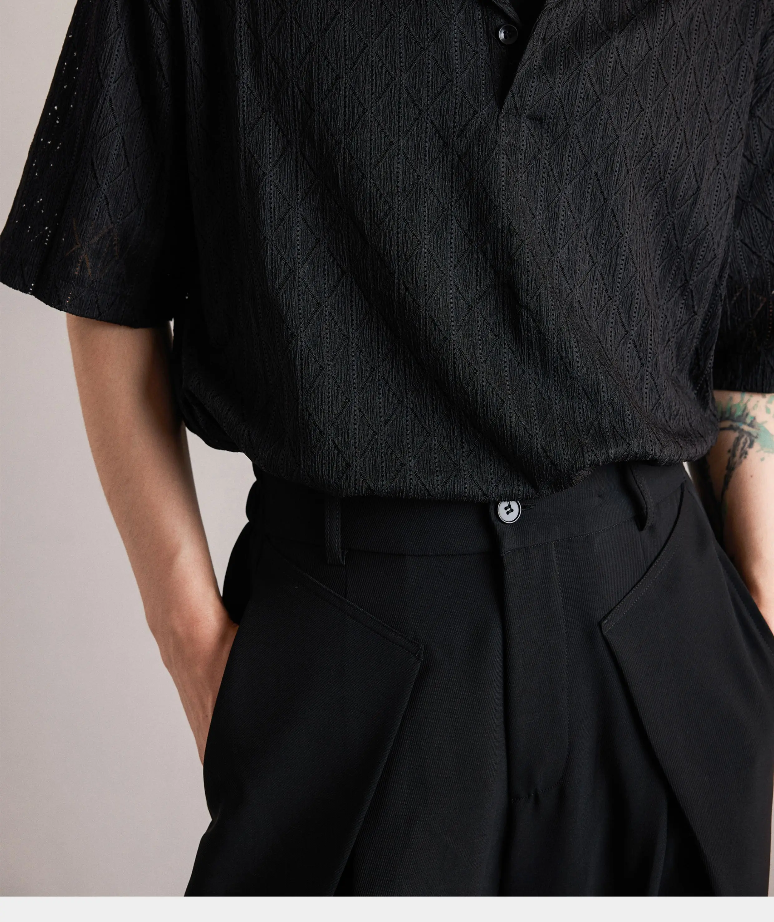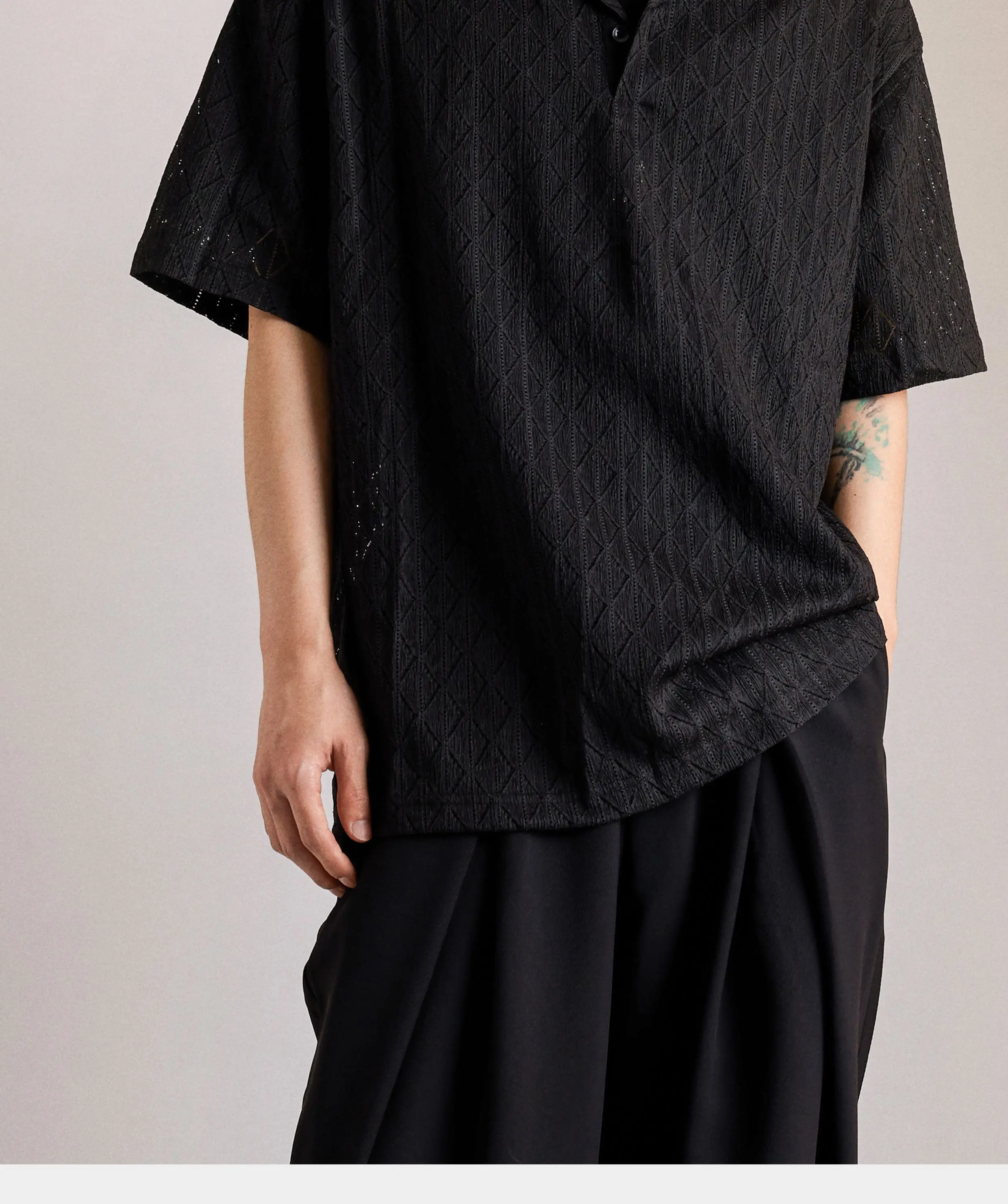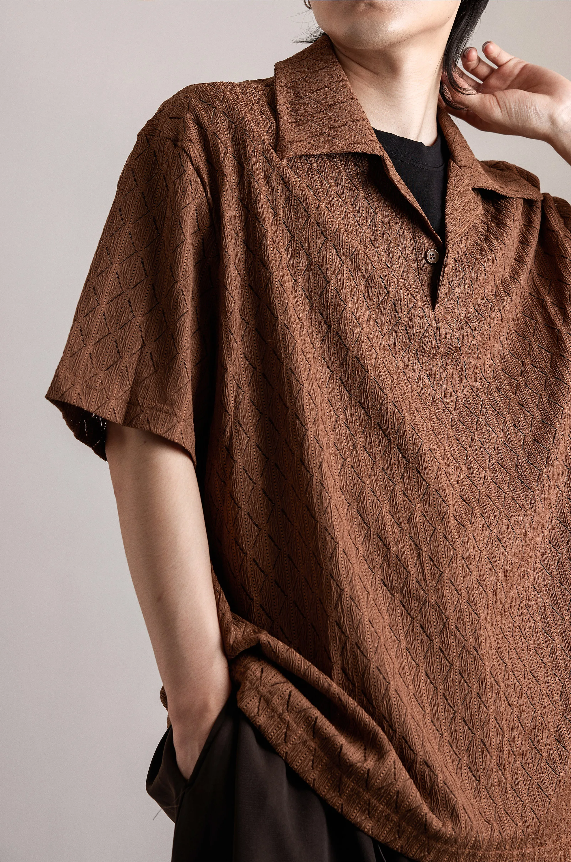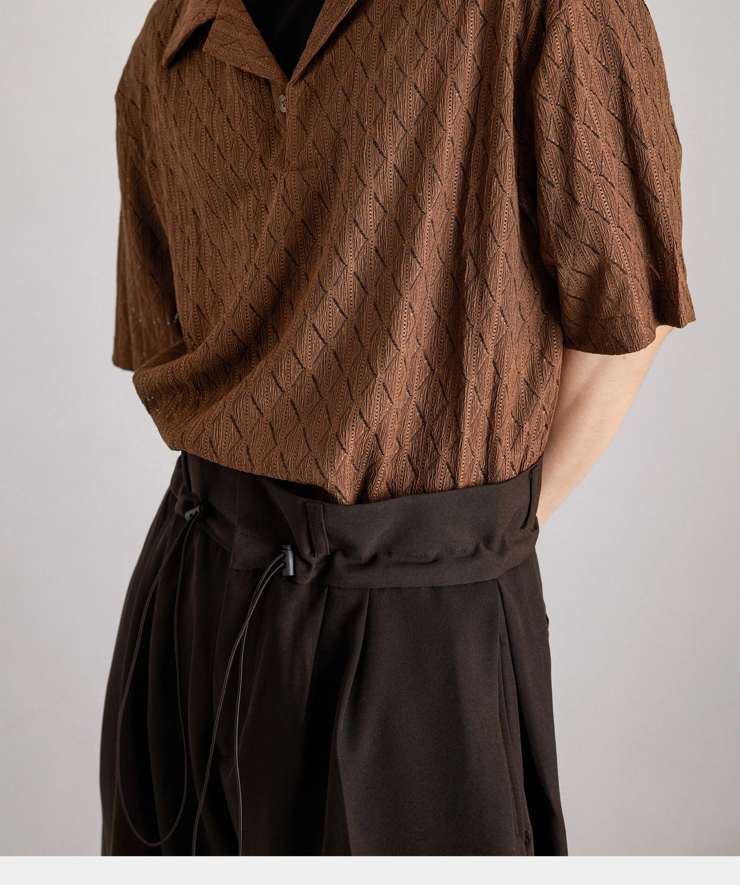 Wiaofellas - Male White Retro Hollow Knitted Polo Shirt Men's Advanced Japan fashion Lapel Short sleeve T-shirt Loose Drape Fashion