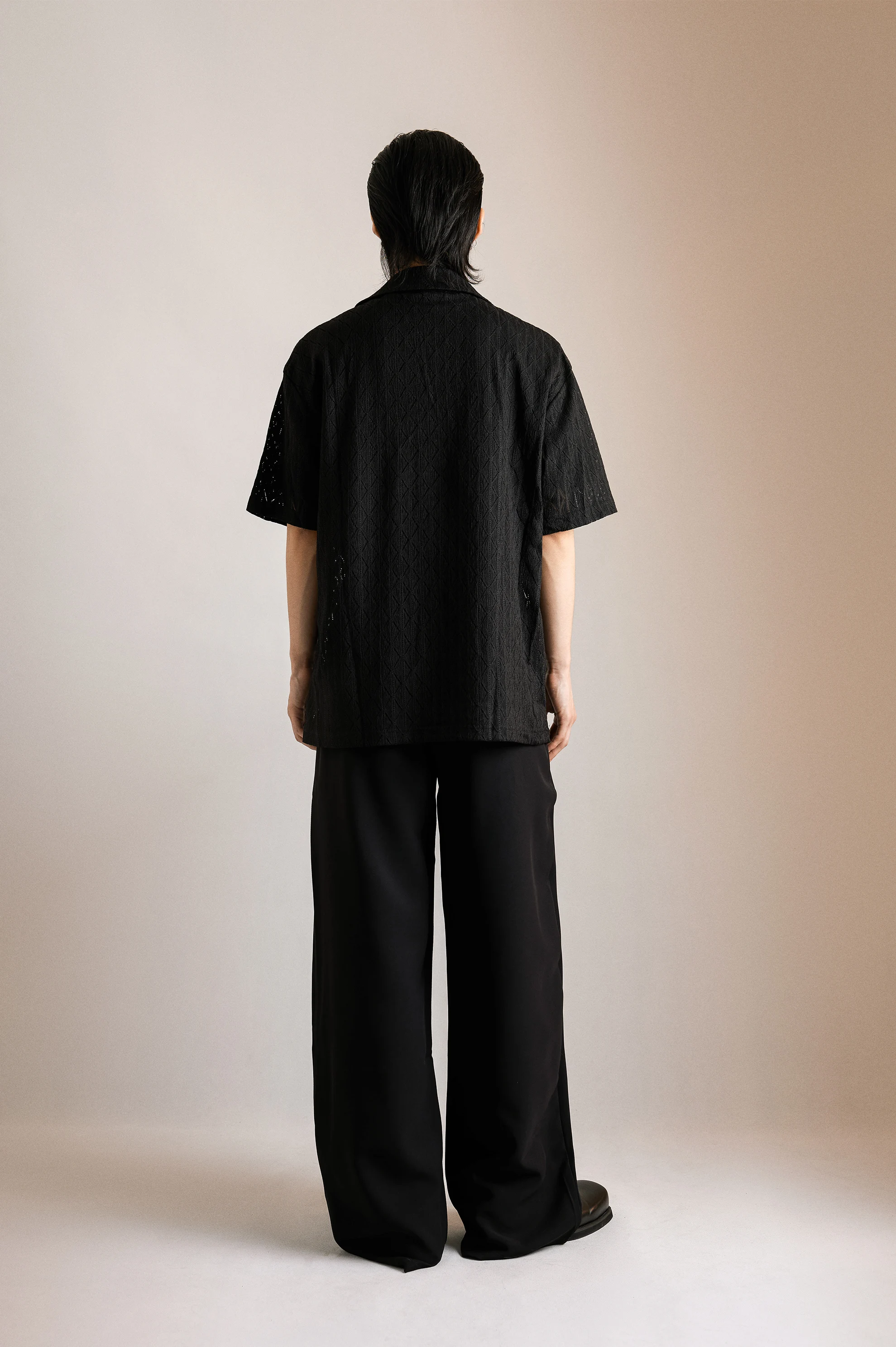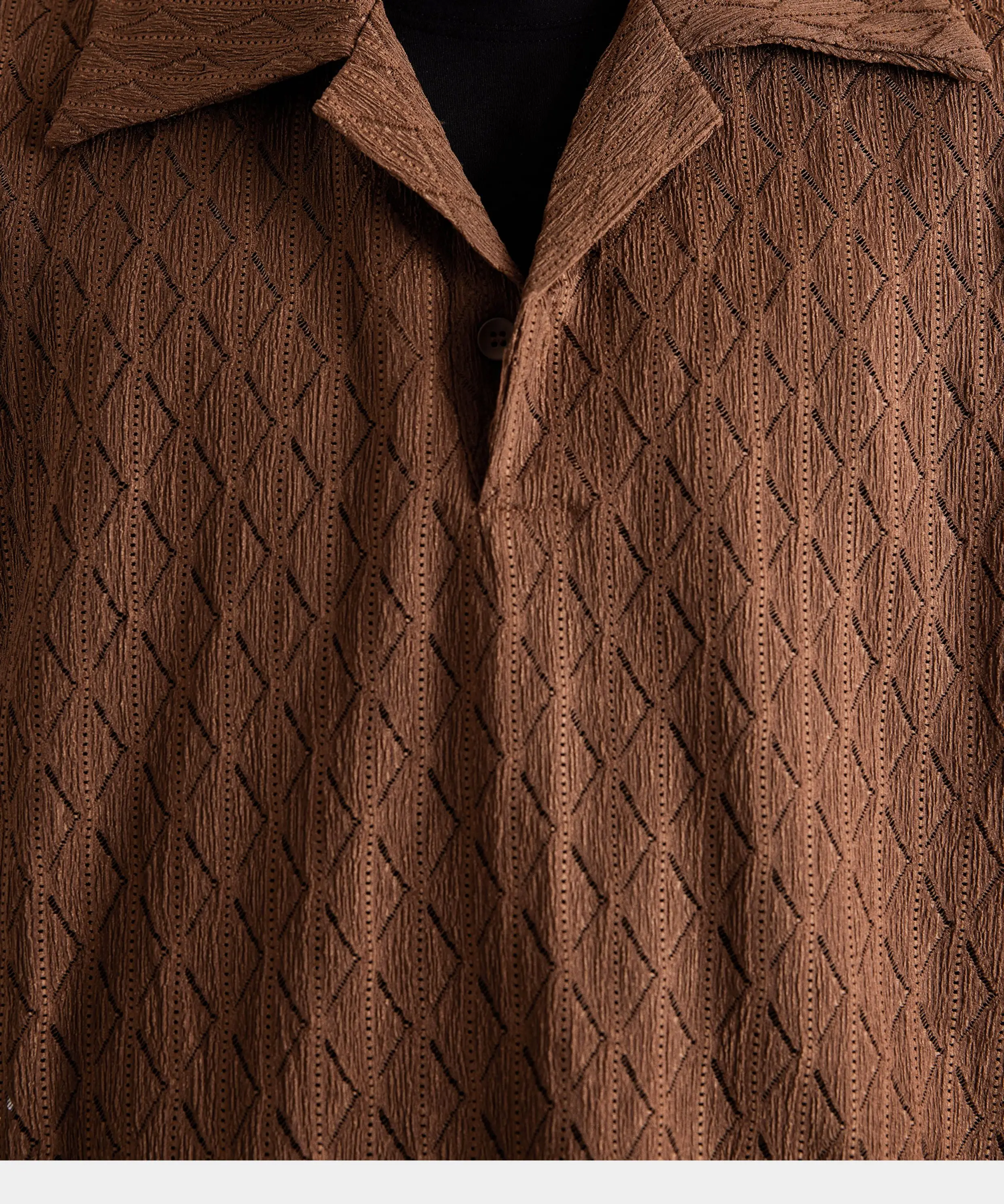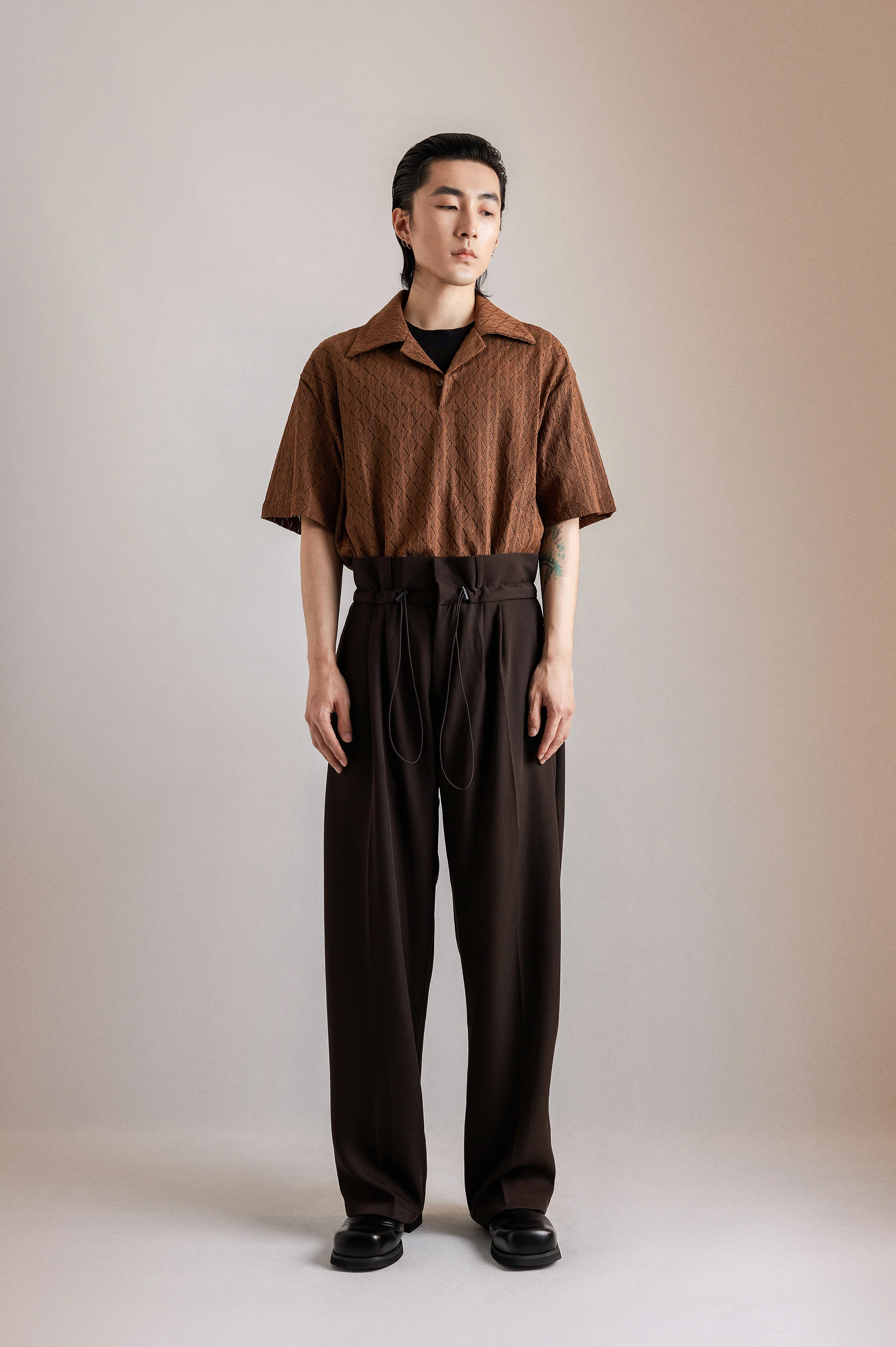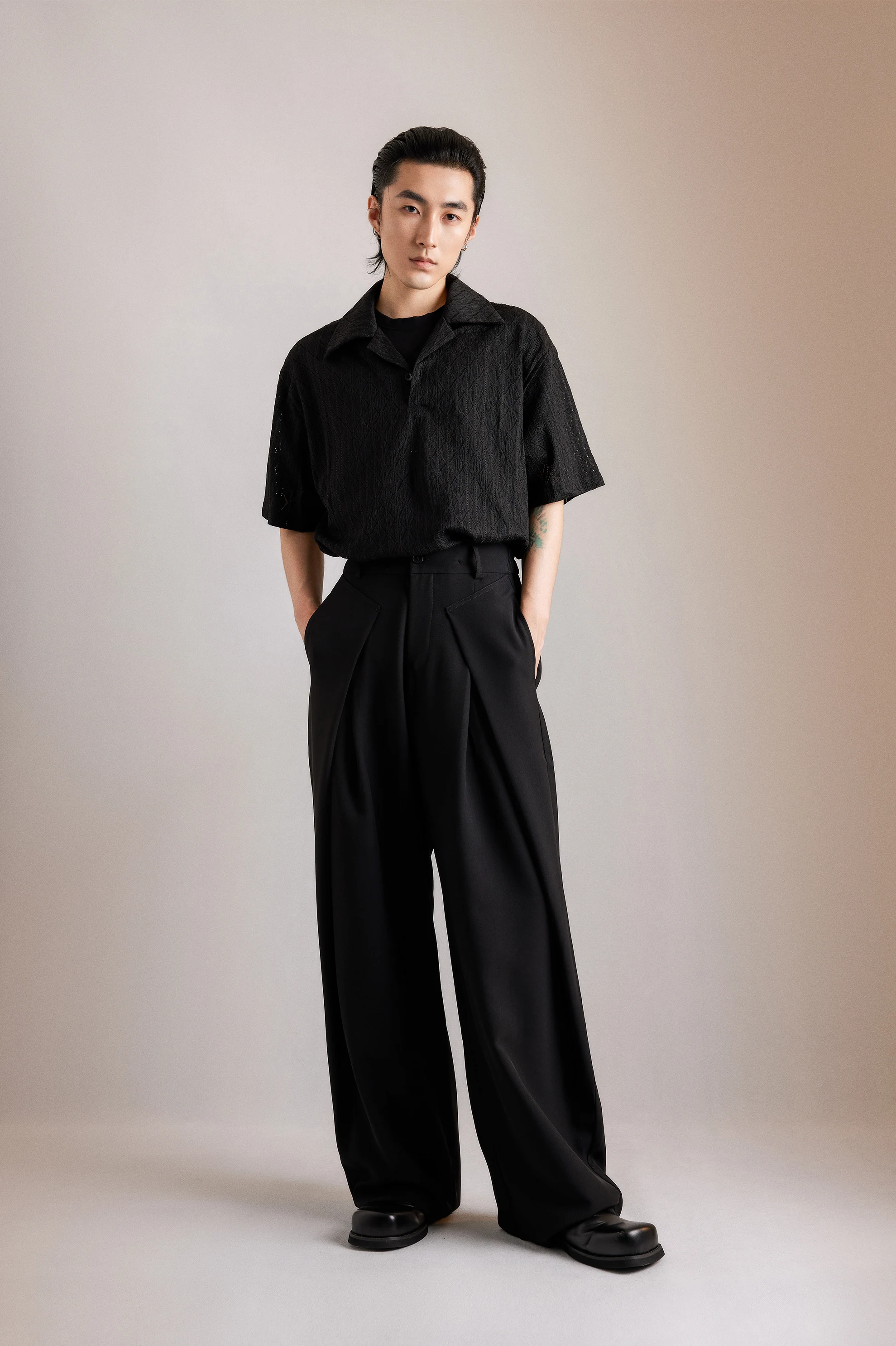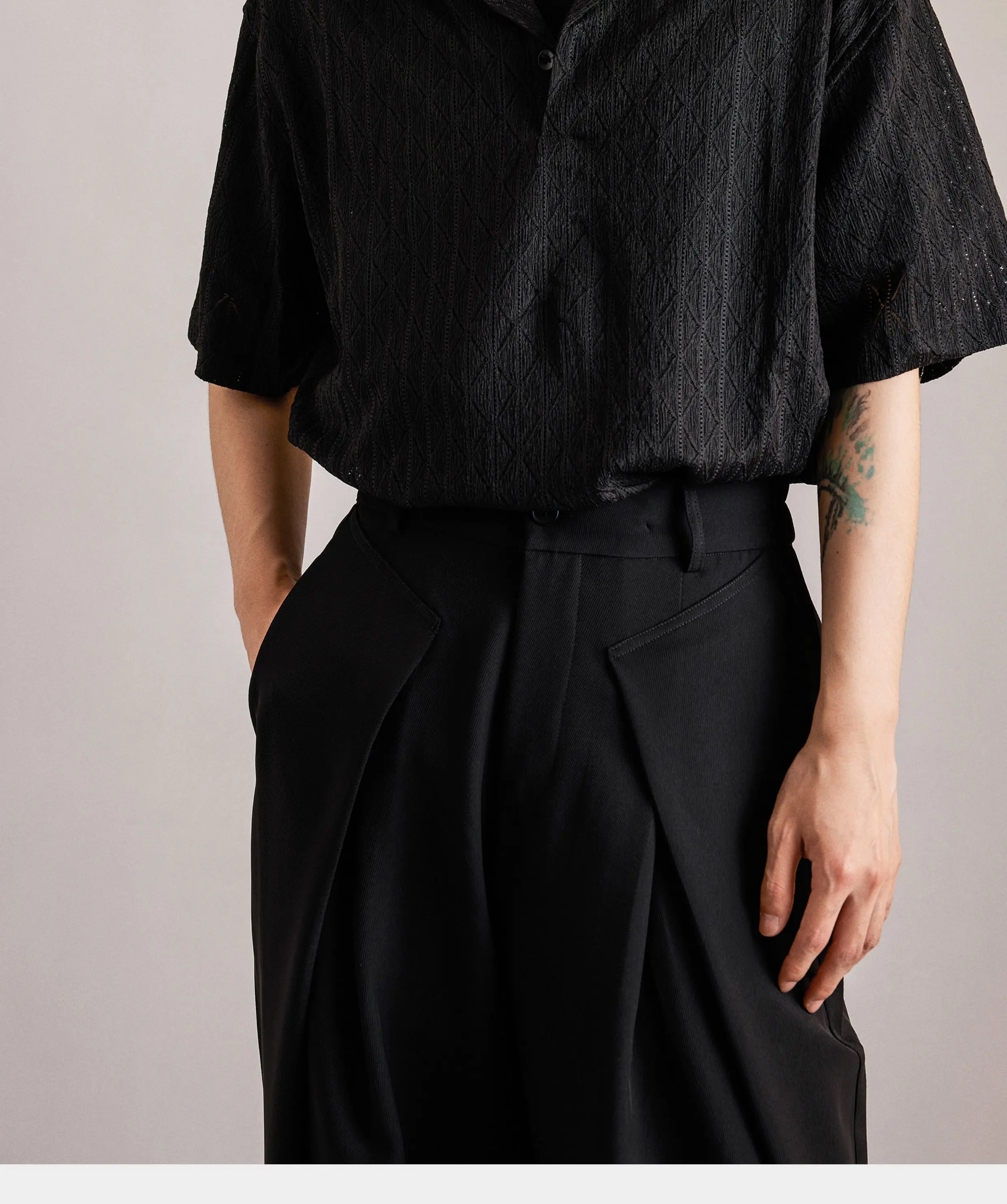 Wiaofellas - Male White Retro Hollow Knitted Polo Shirt Men's Advanced Japan fashion Lapel Short sleeve T-shirt Loose Drape Fashion