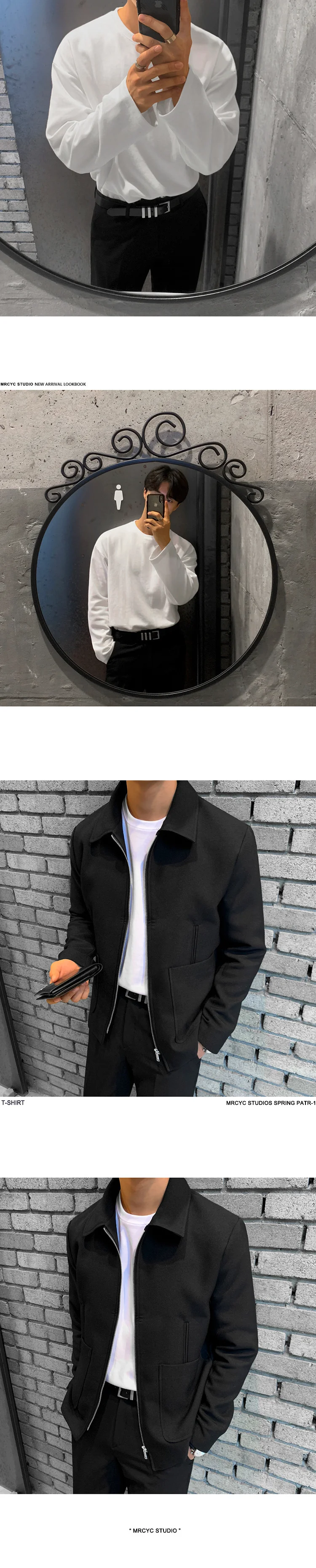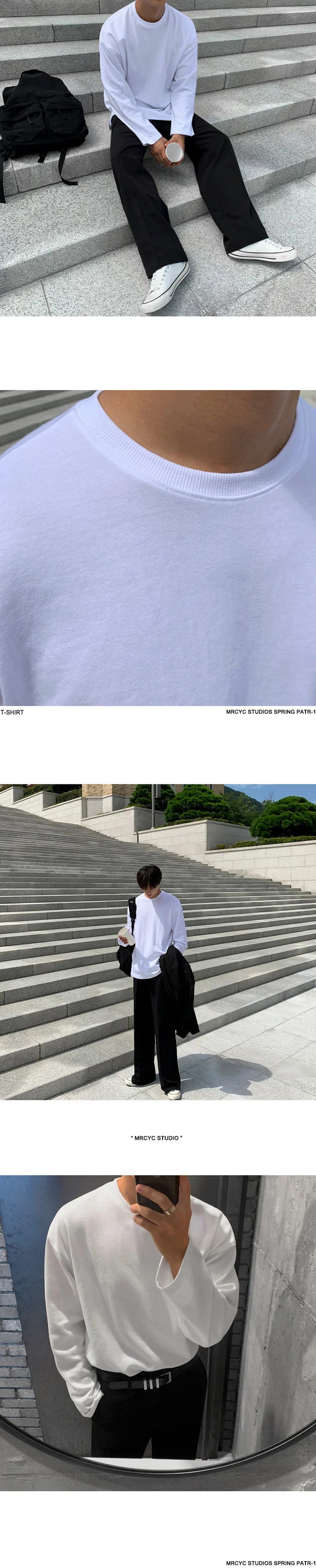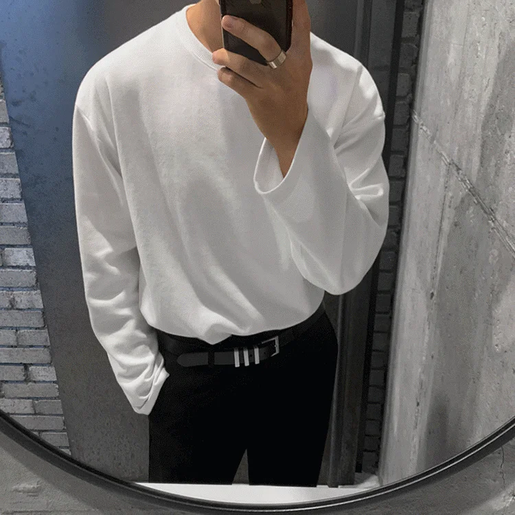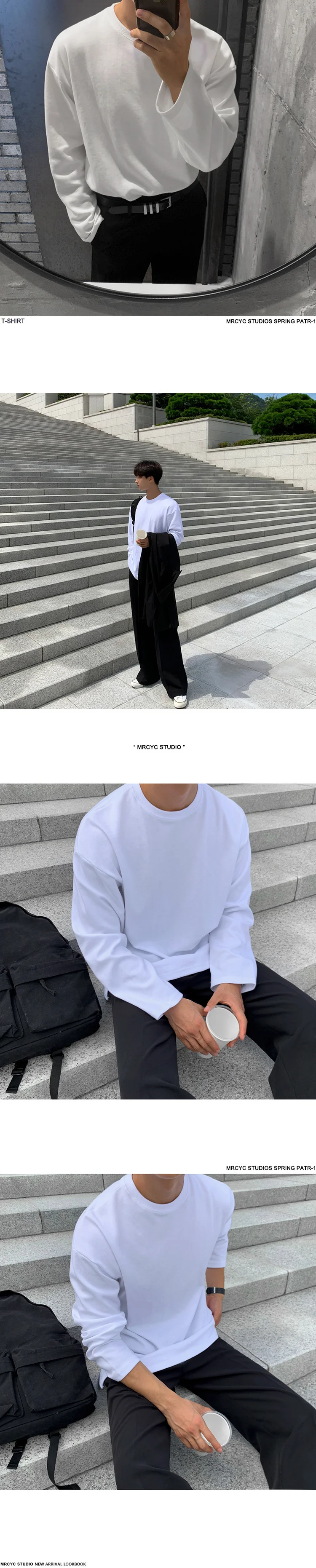 Wiaofellas men's / wear Autumn long-sleeved T-shirt Korean style trendy round neck loose men's base white all-match male's tops 2Y4021
