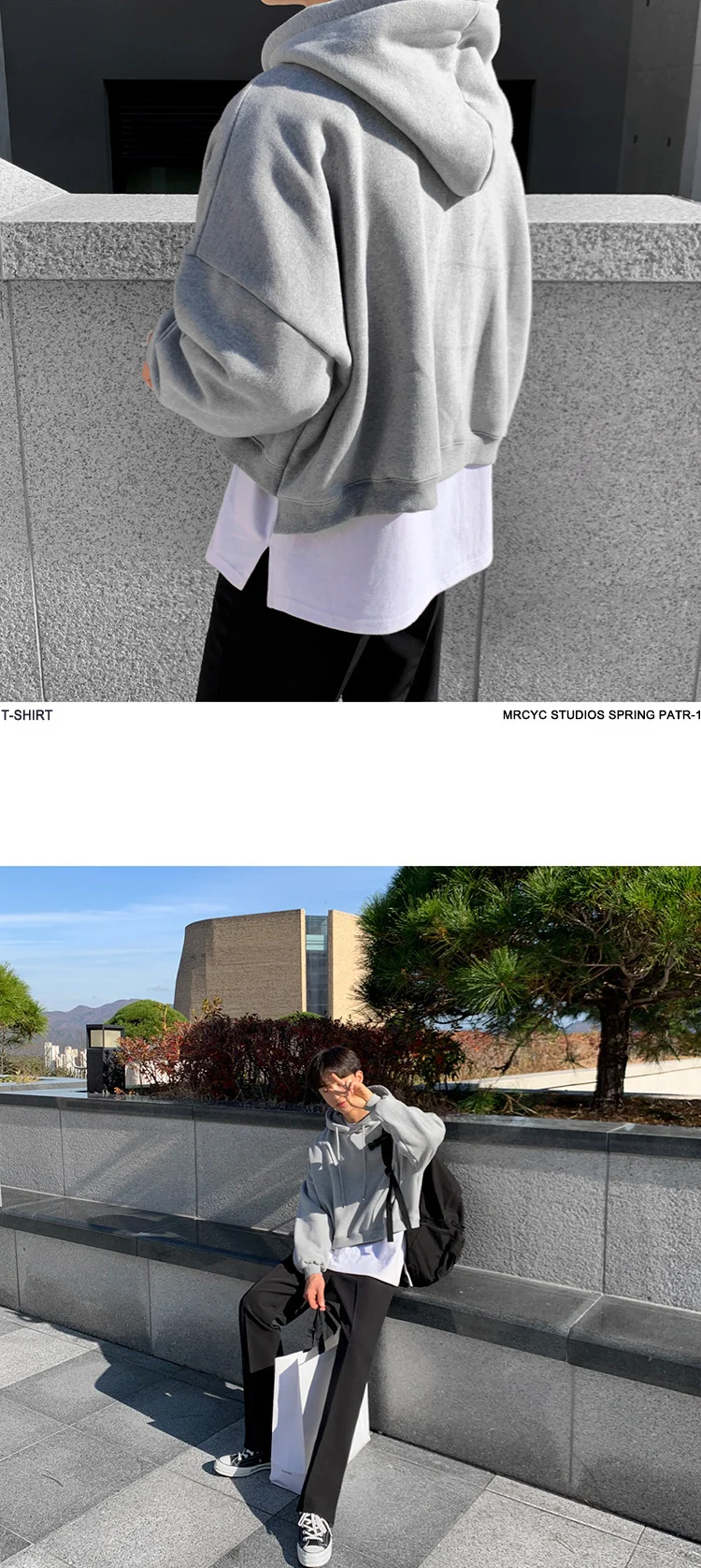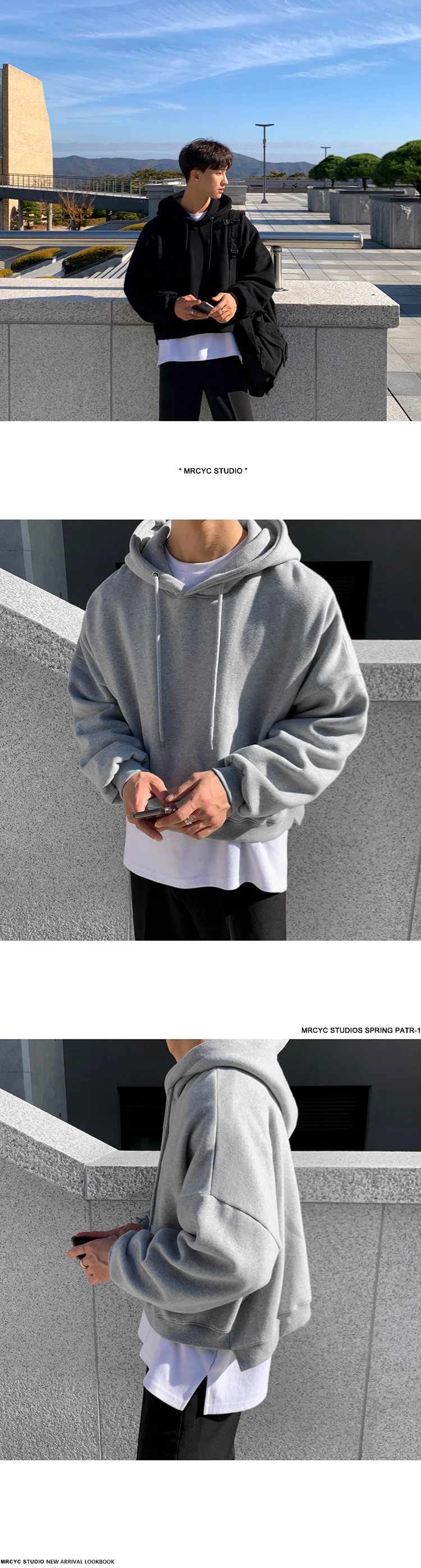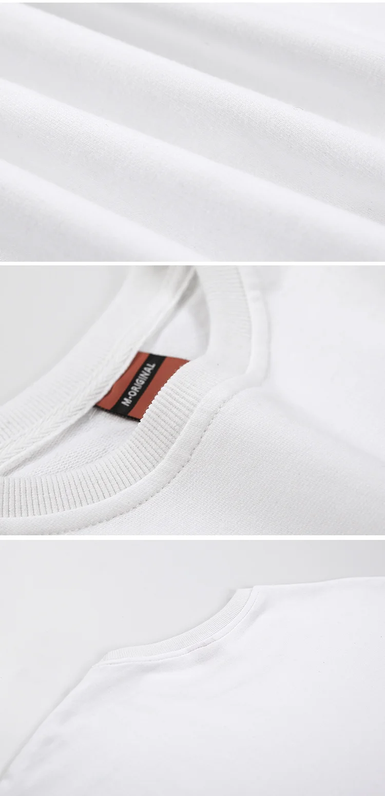 Wiaofellas men's / wear Autumn long-sleeved T-shirt Korean style trendy round neck loose men's base white all-match male's tops 2Y4021