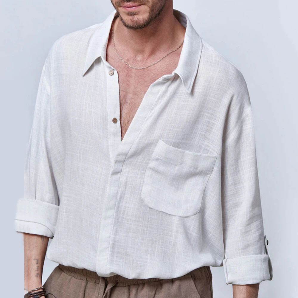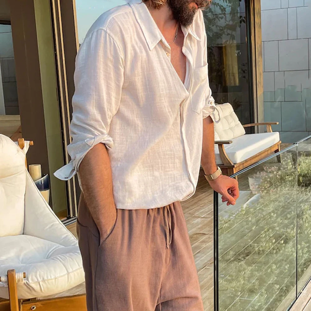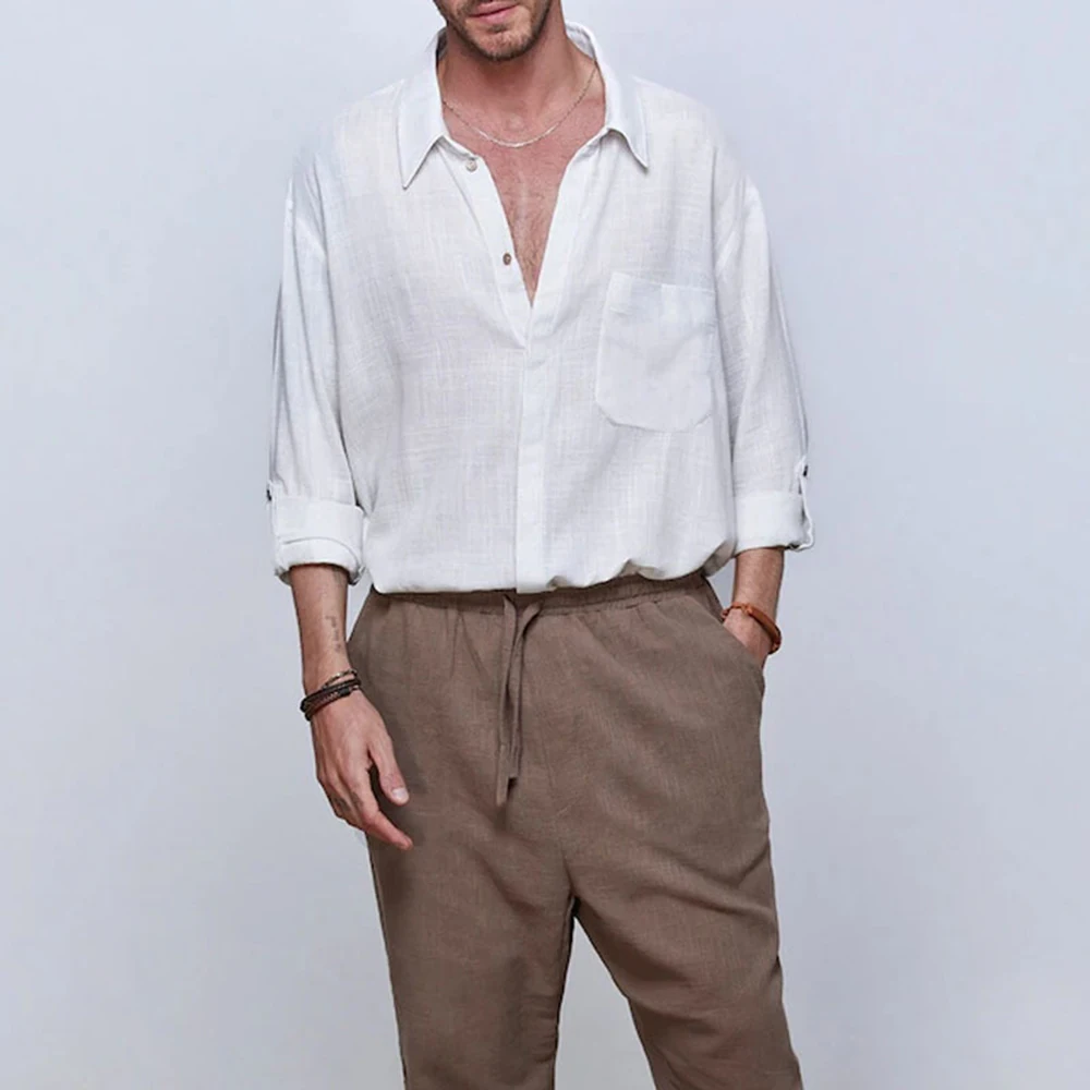 WIAOFELLAS - Spring And Autumn New Fashion Mens Casual Printed White Shirts Trendy Solid Color High-Quality Long-Sleeved Tops Shirts