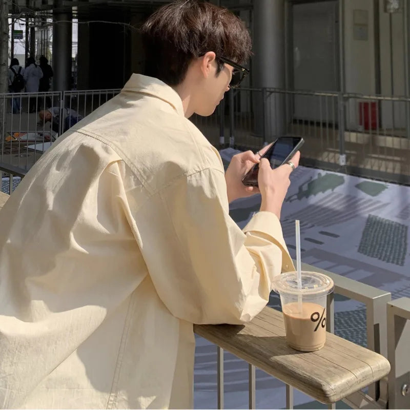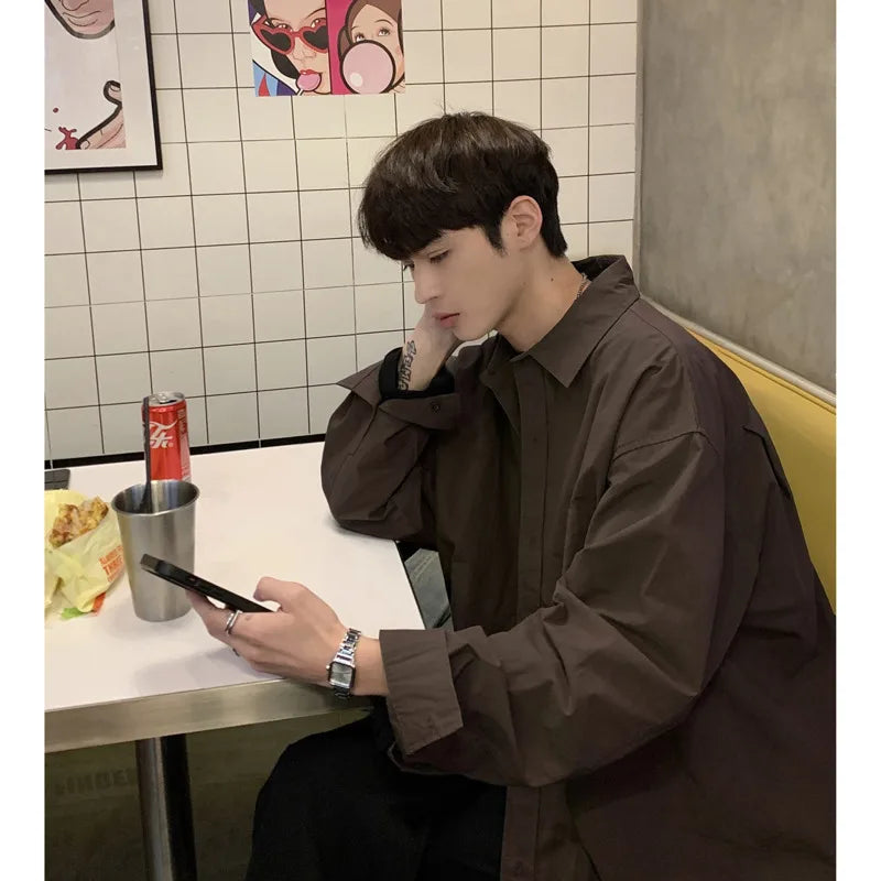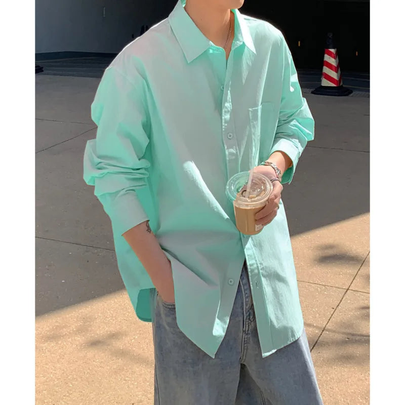 WIAOFELLAS  -  Spring Cotton Long Sleeved Shirt Men Society Mens Black Dress Shirt Korean Loose Casual White Shirt Mens Office Formal Shirts