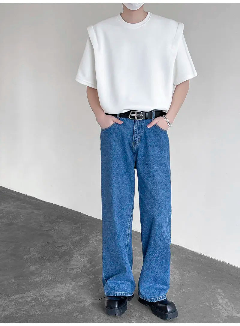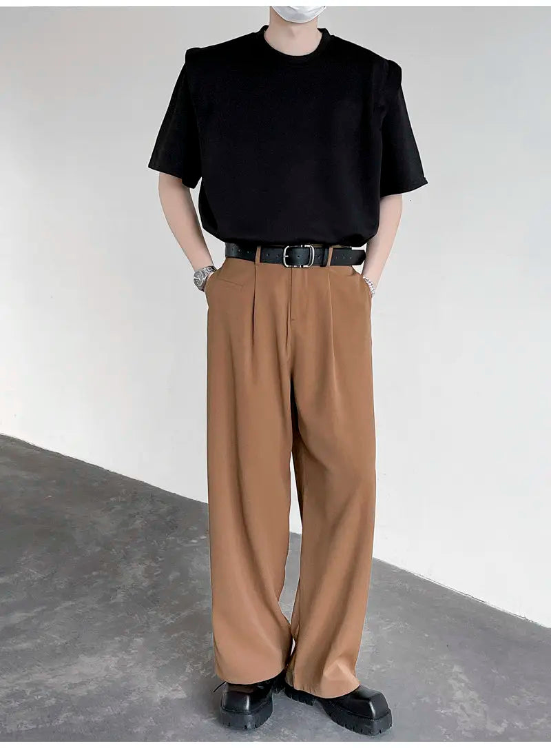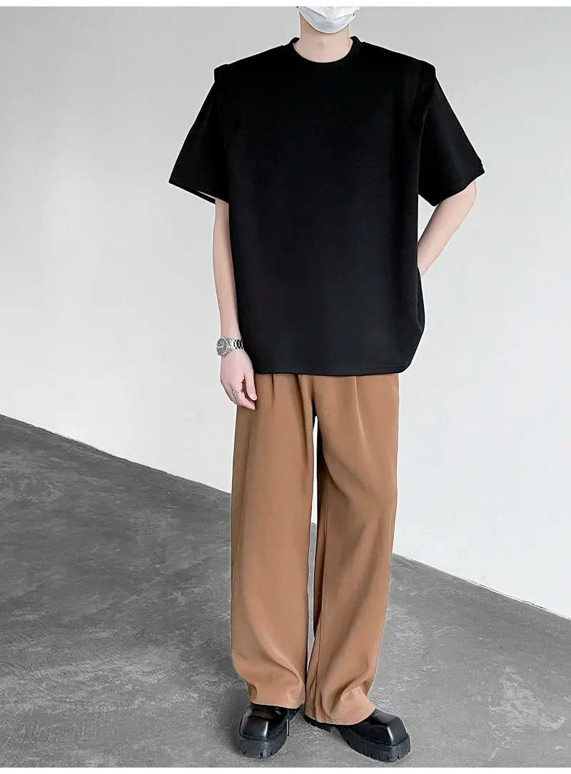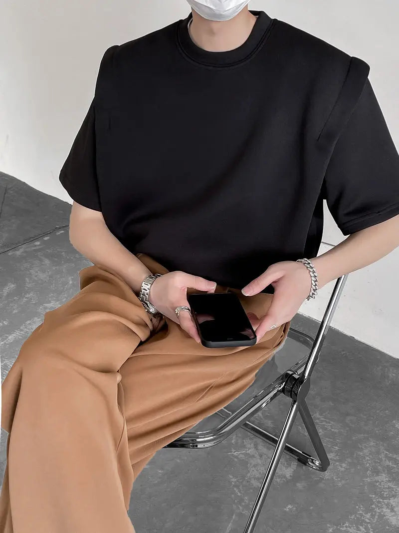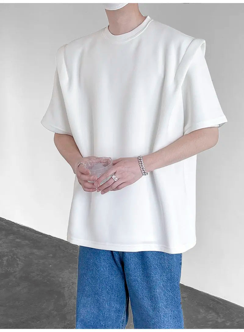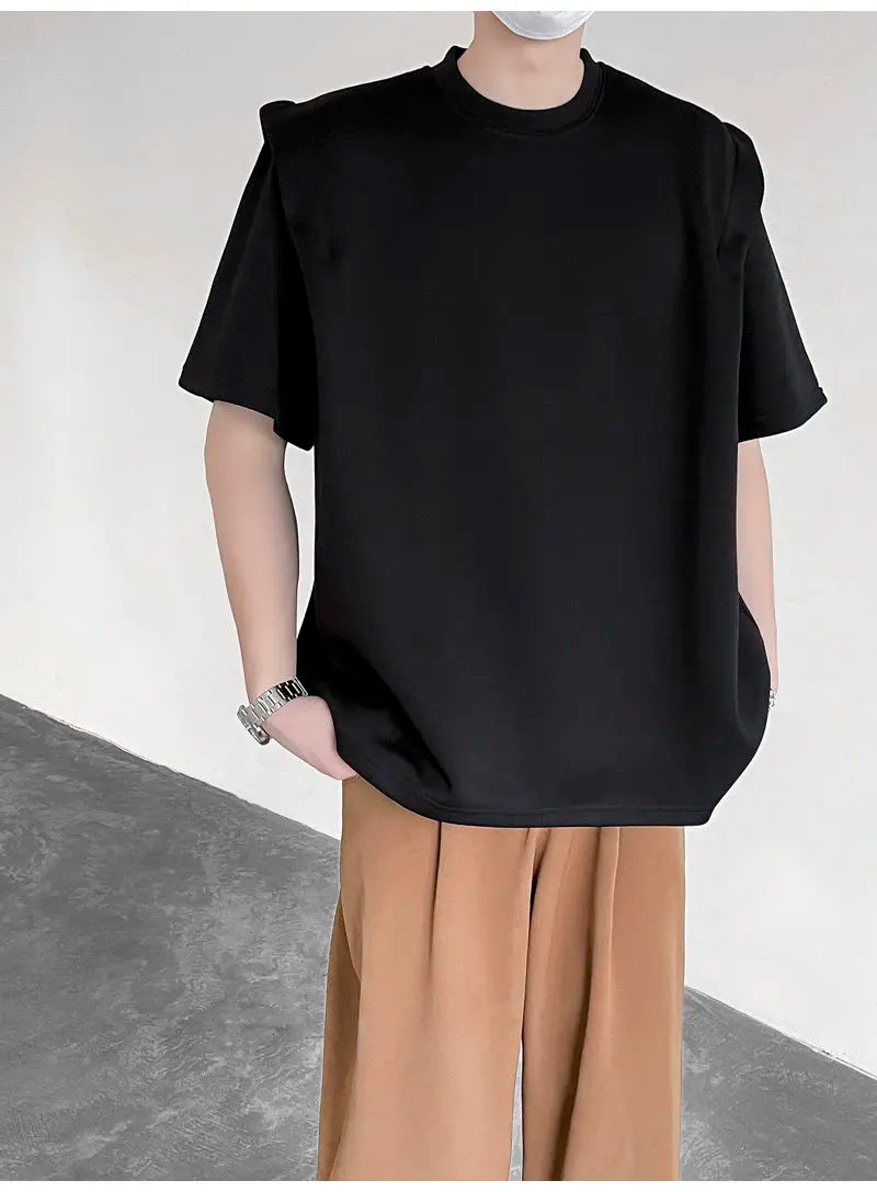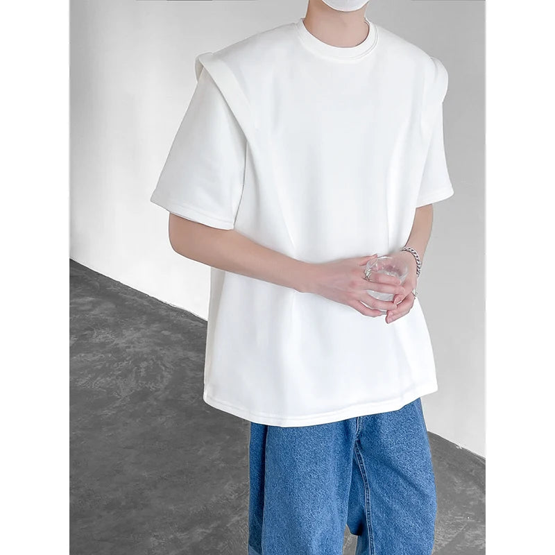 WIAOFELLAS - Summer T Shirt Men Fashion Black White Casual Short Sleeved T-shirt Men Streetwear Korean Loose Shoulder Pad T Shirt Mens Top