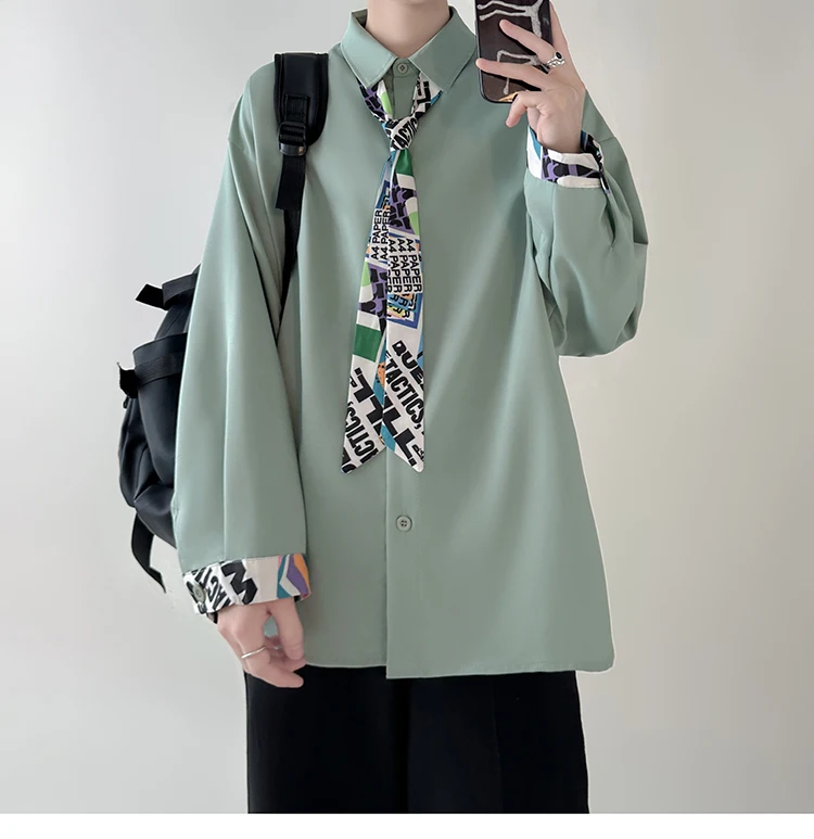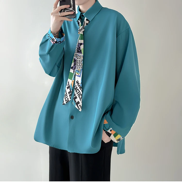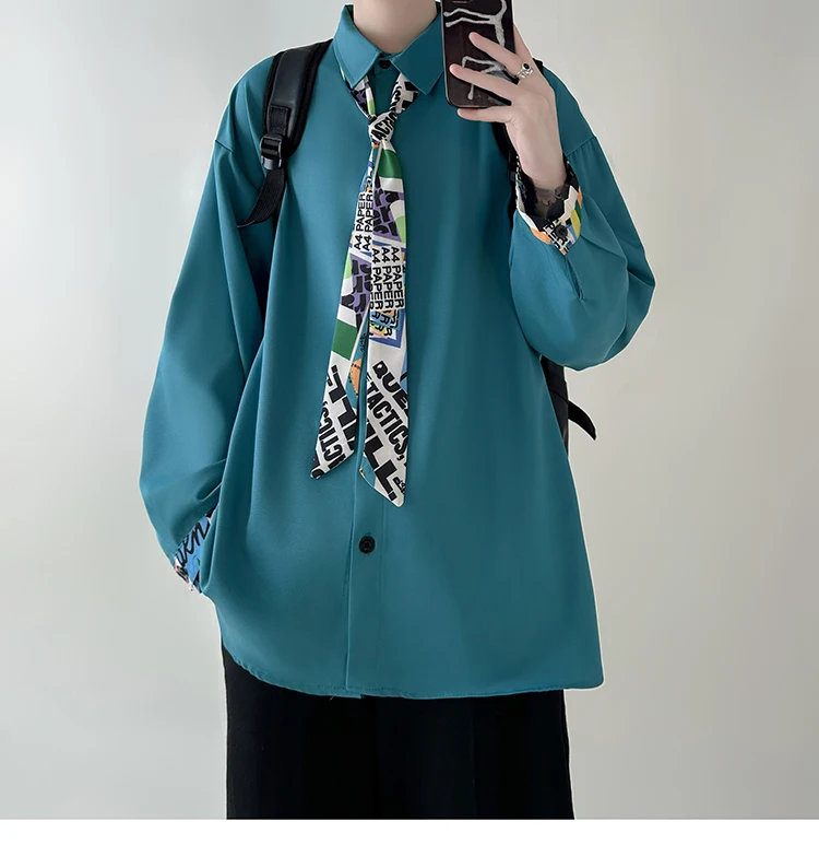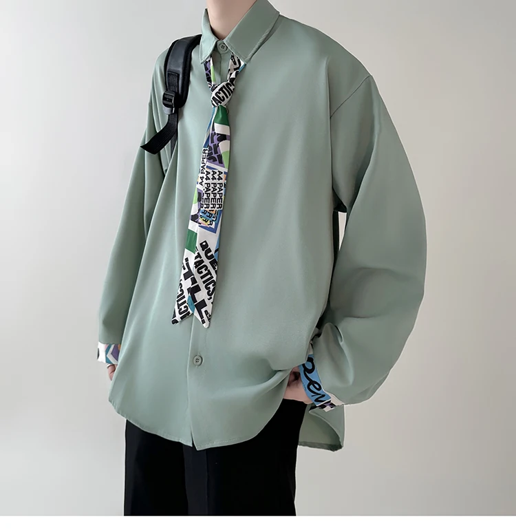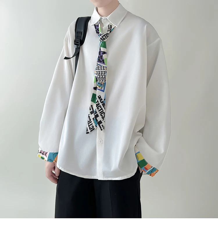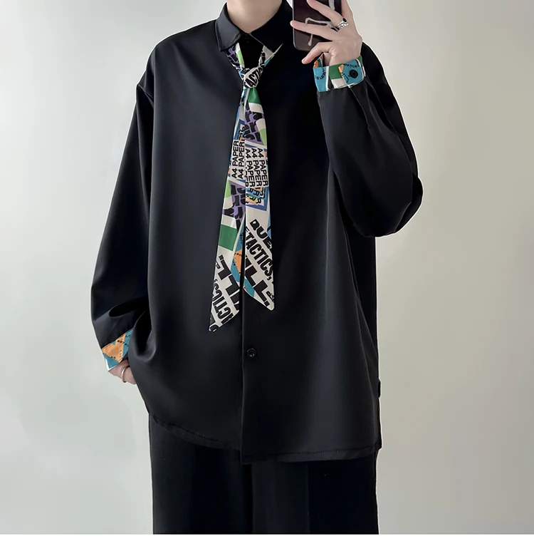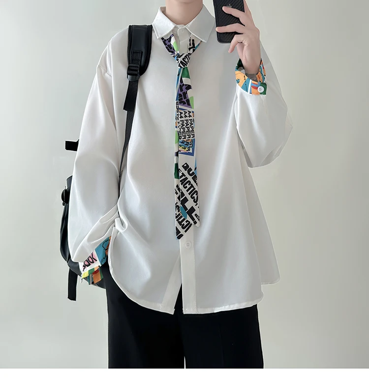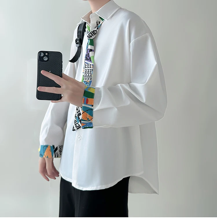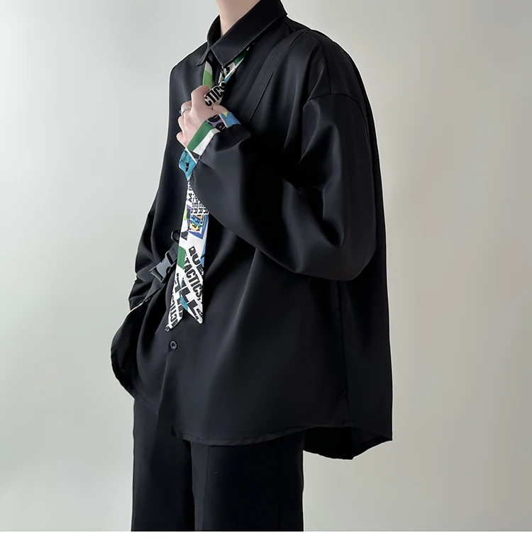 WIAOFELLAS - Tie Long Sleeved Shirt Men Oversized Society Mens Formal Dress Shirt Korean Loose Casual Shirt Mens Ice Silk White Shirts M-2XL