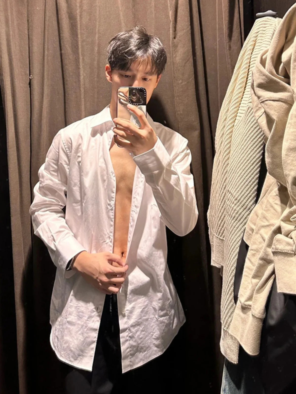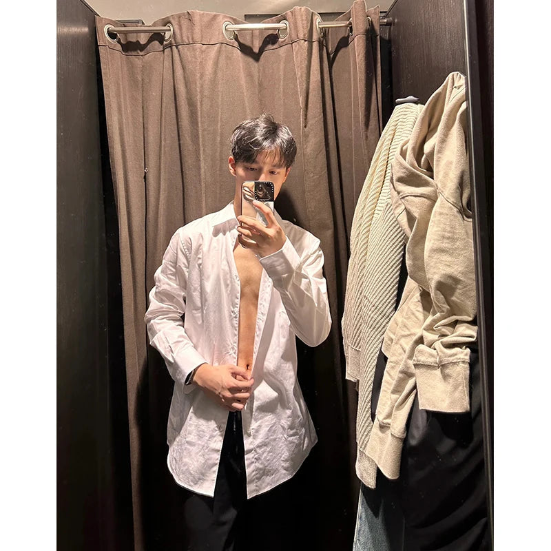 WIAOFELLAS - White irt for Men with Tie High School Student Inner Wear Autumn Winter Faion Brand College Sle orm Top Class