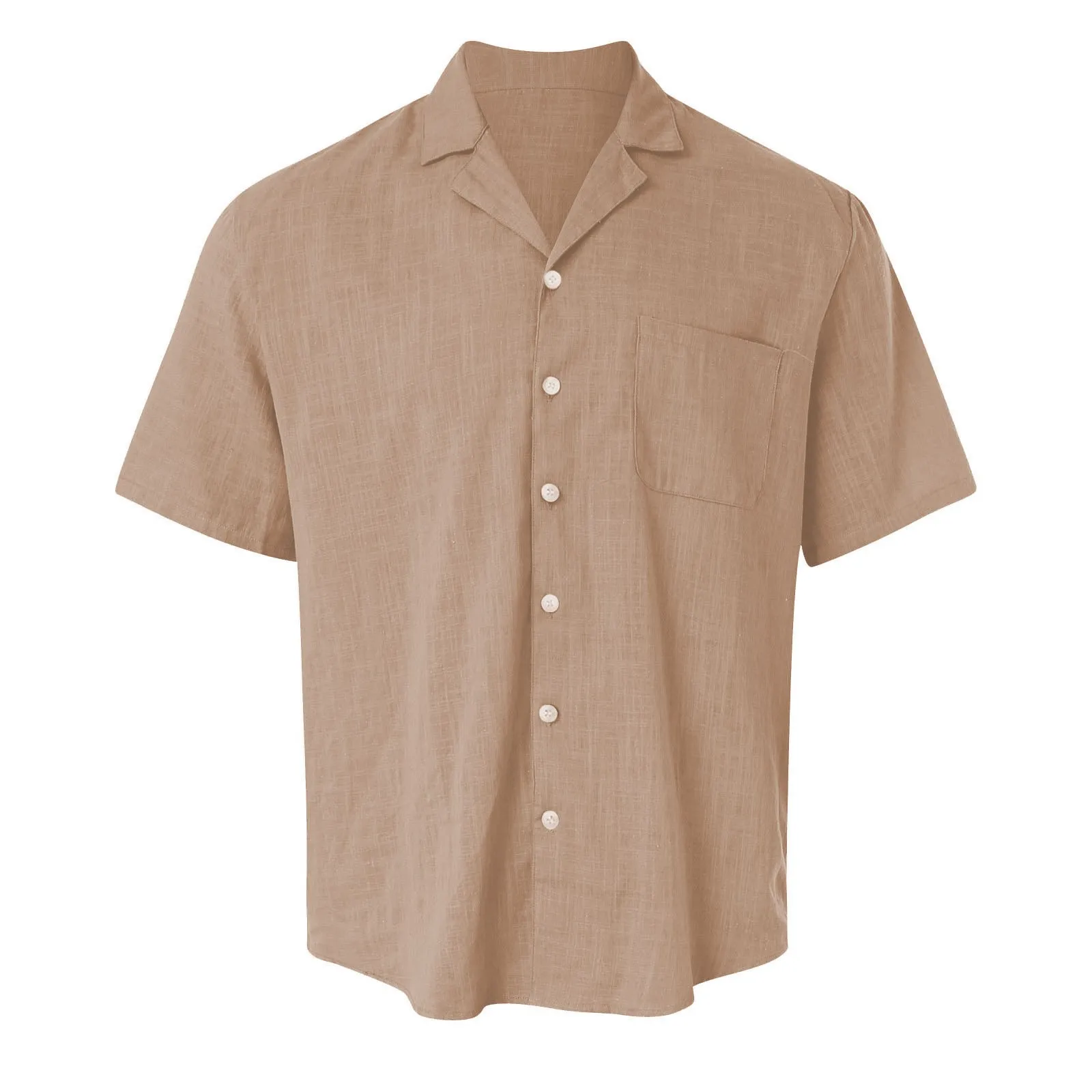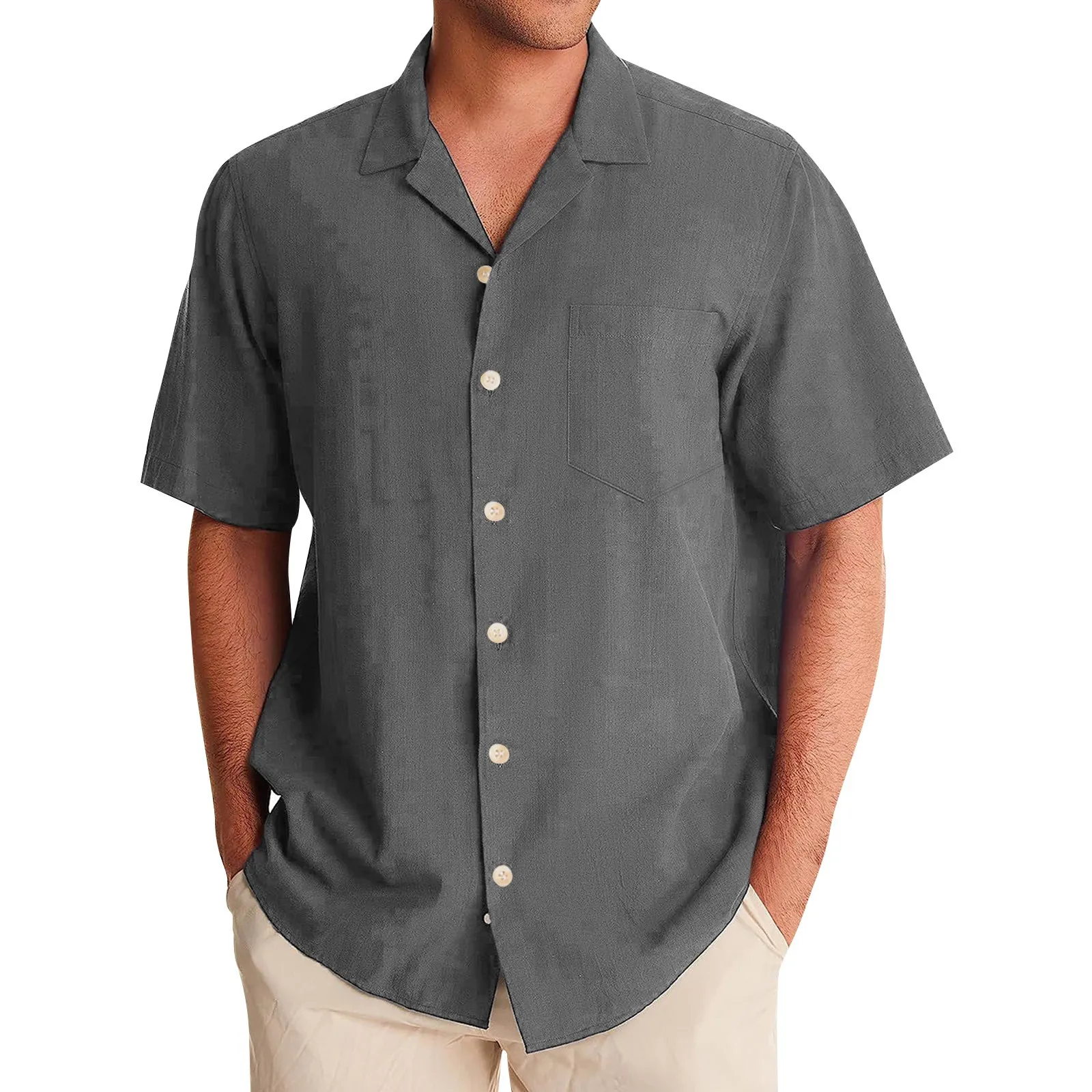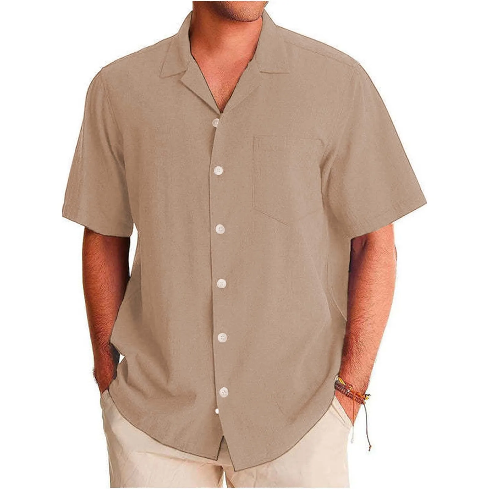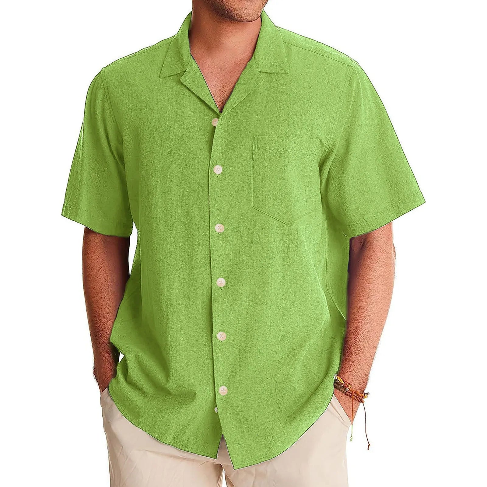 WIAOFELLAS  -  British Men'S Shirt New Summer Solid Color Casual Lapel Simple Breathable Top Comfortable Open-Collar Men'S Loose Beach Shirt