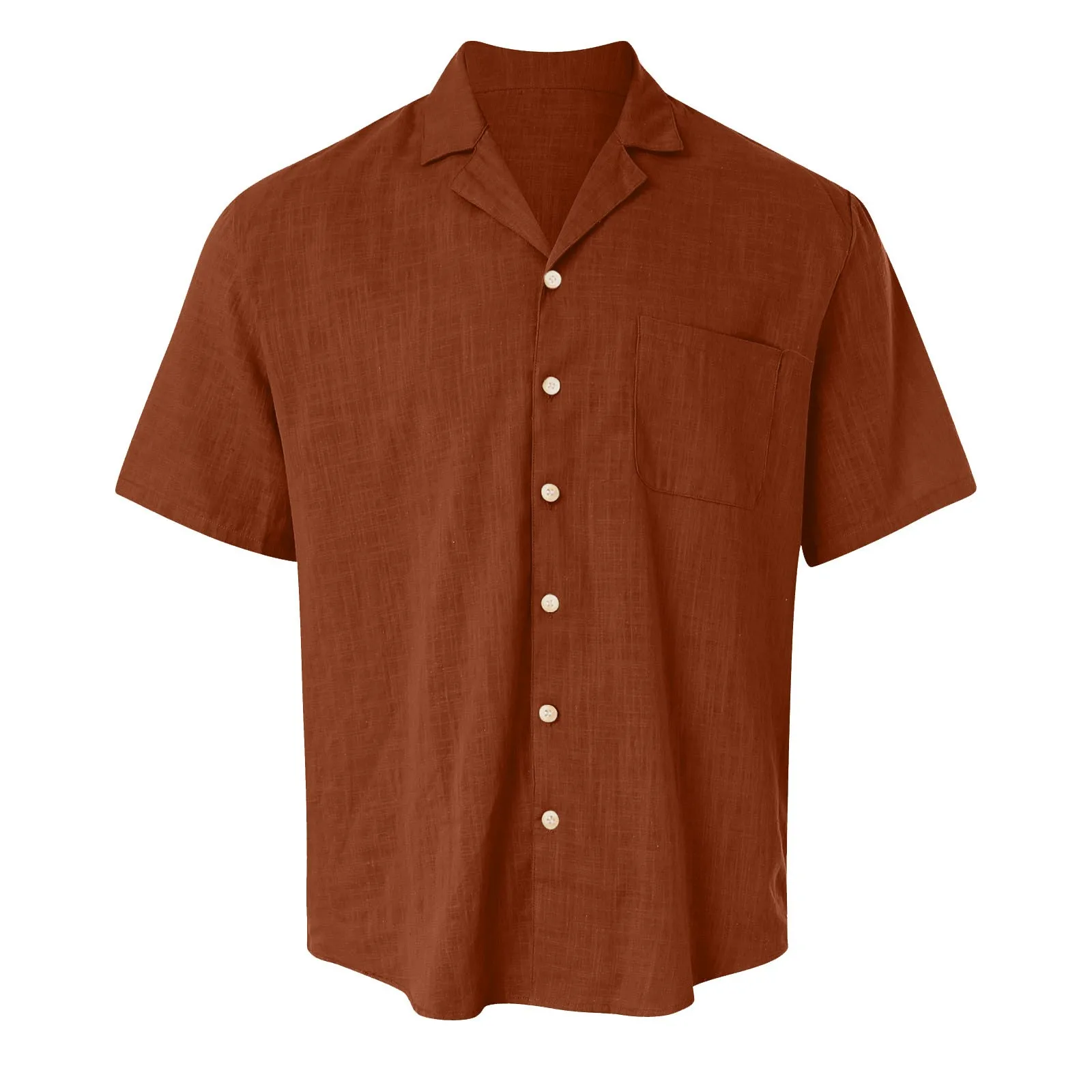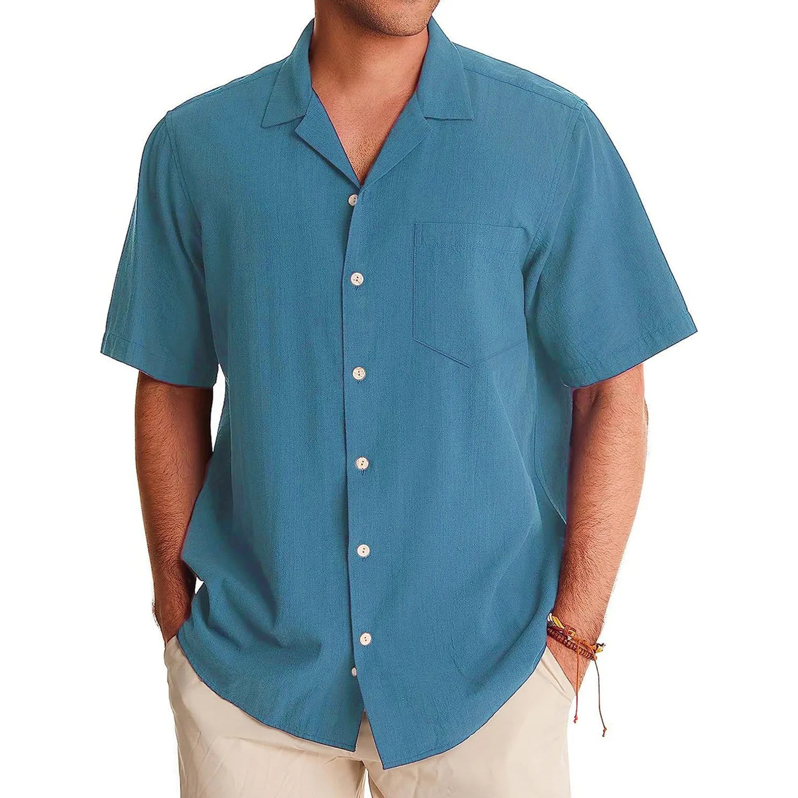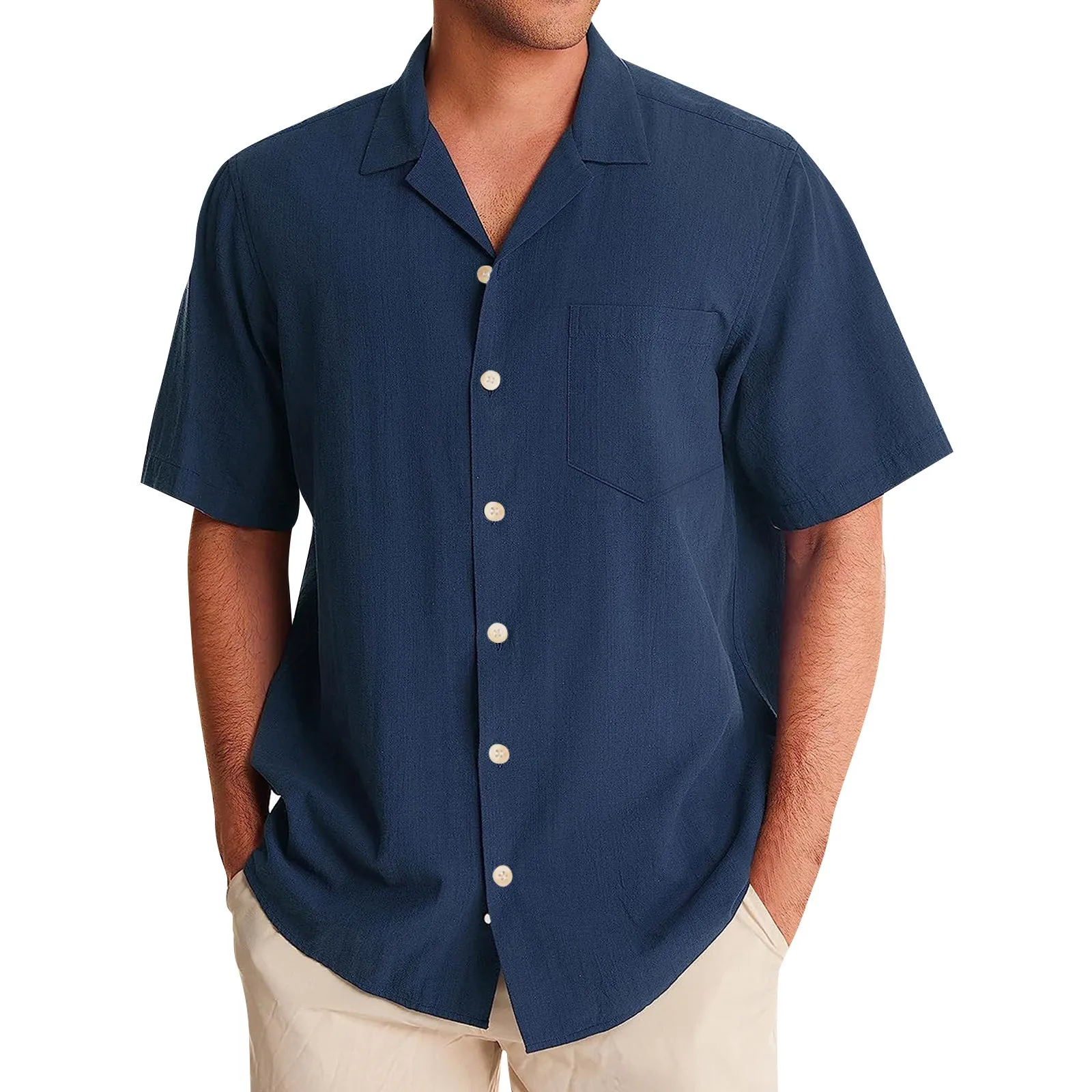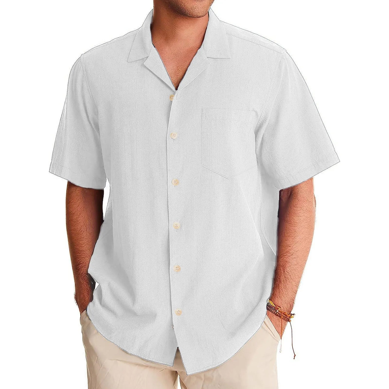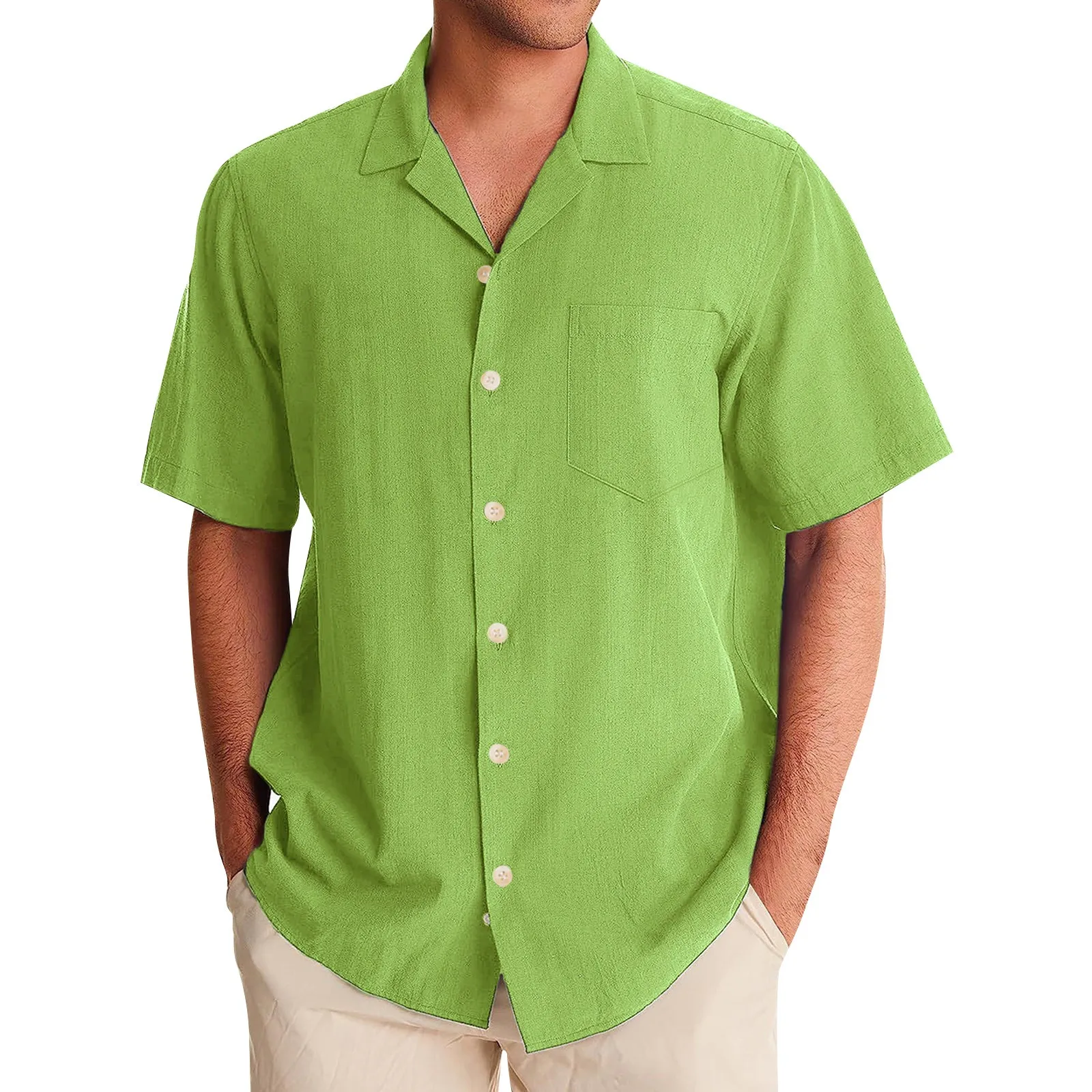 WIAOFELLAS  -  British Men'S Shirt New Summer Solid Color Casual Lapel Simple Breathable Top Comfortable Open-Collar Men'S Loose Beach Shirt