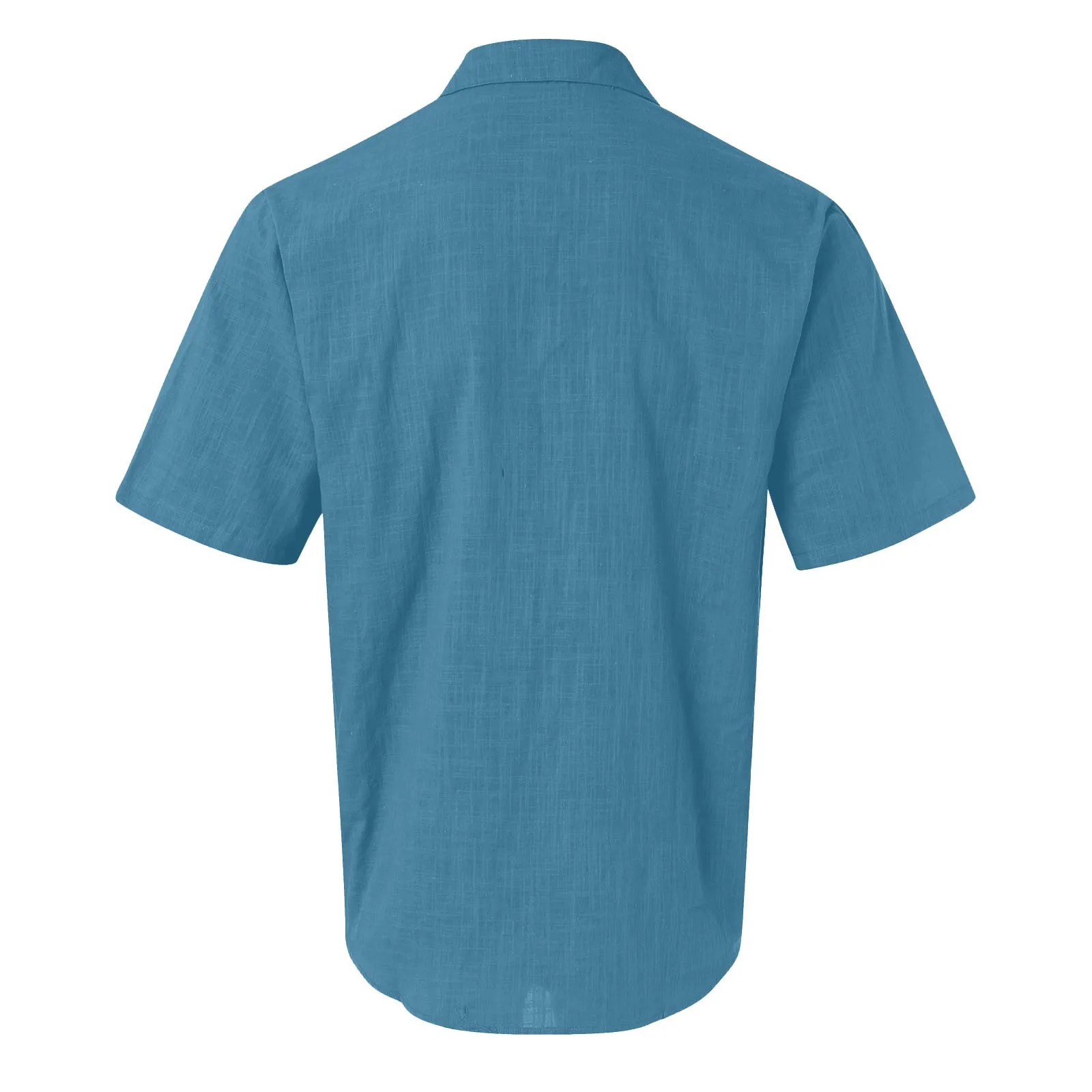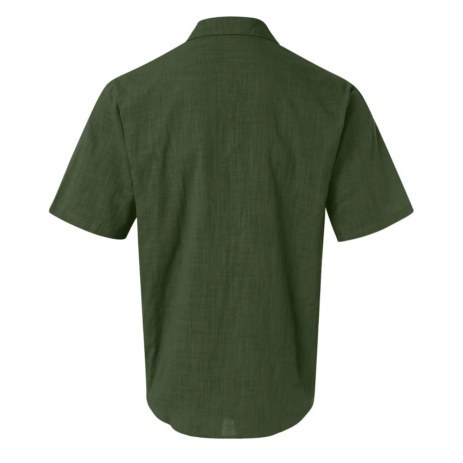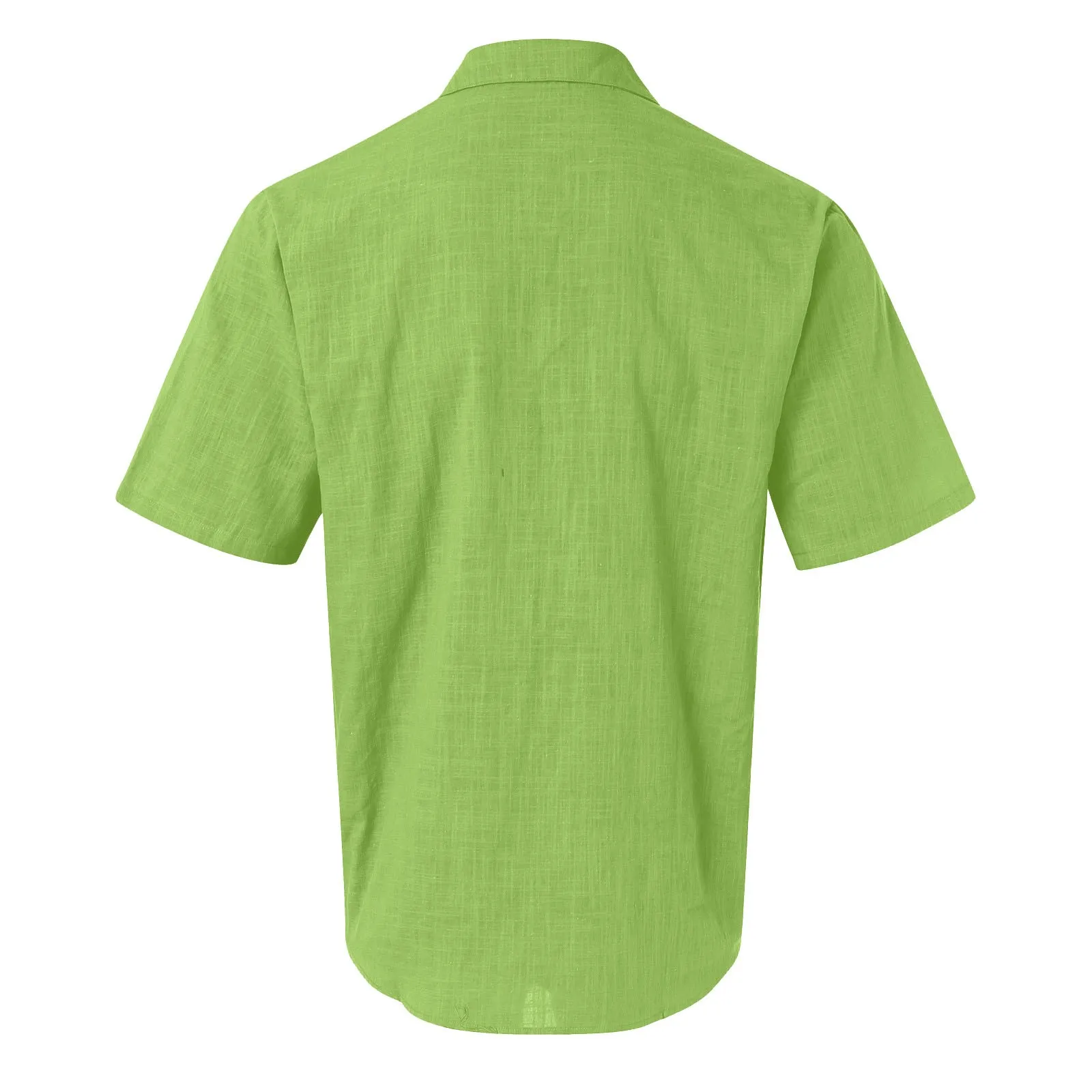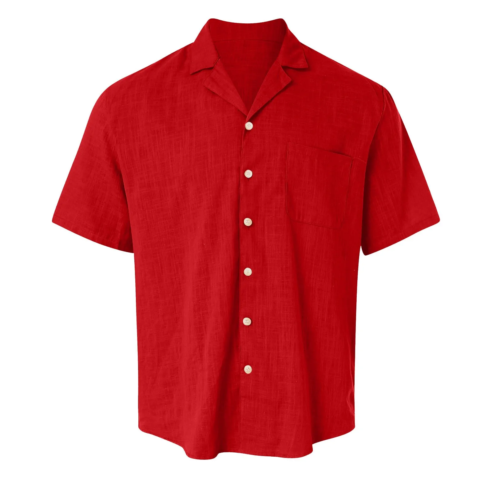 WIAOFELLAS  -  British Men'S Shirt New Summer Solid Color Casual Lapel Simple Breathable Top Comfortable Open-Collar Men'S Loose Beach Shirt