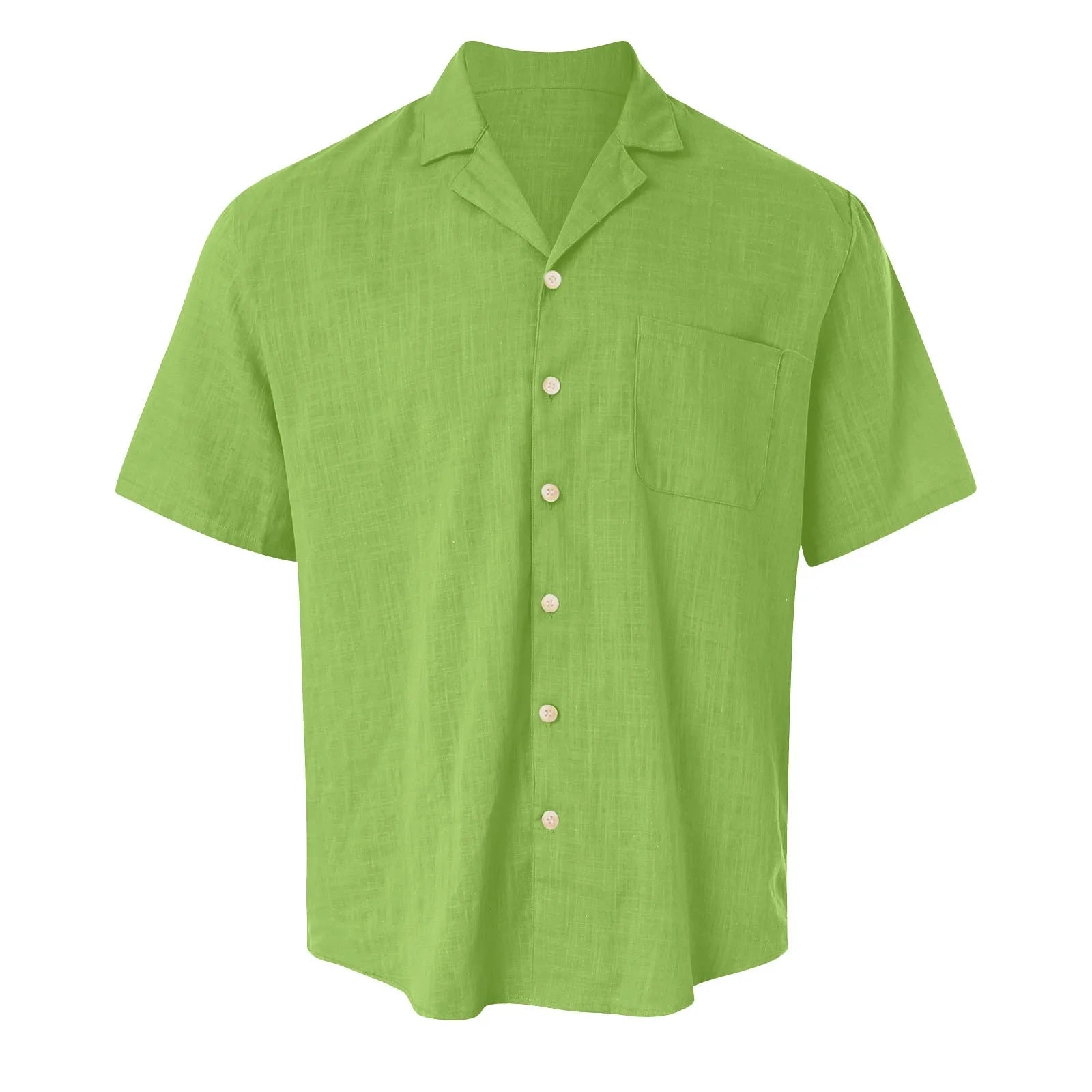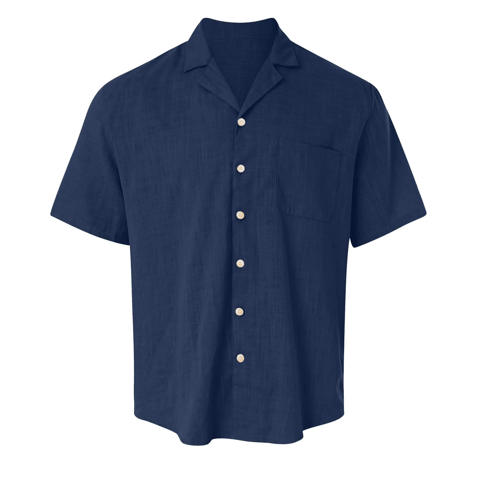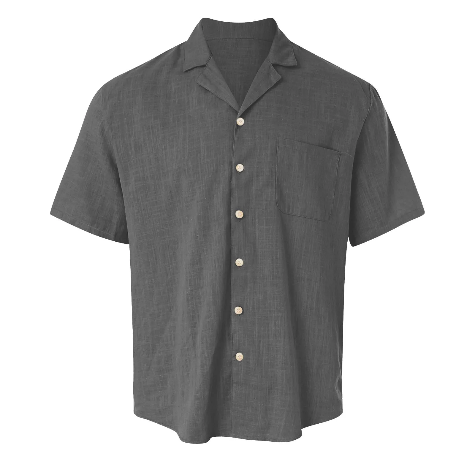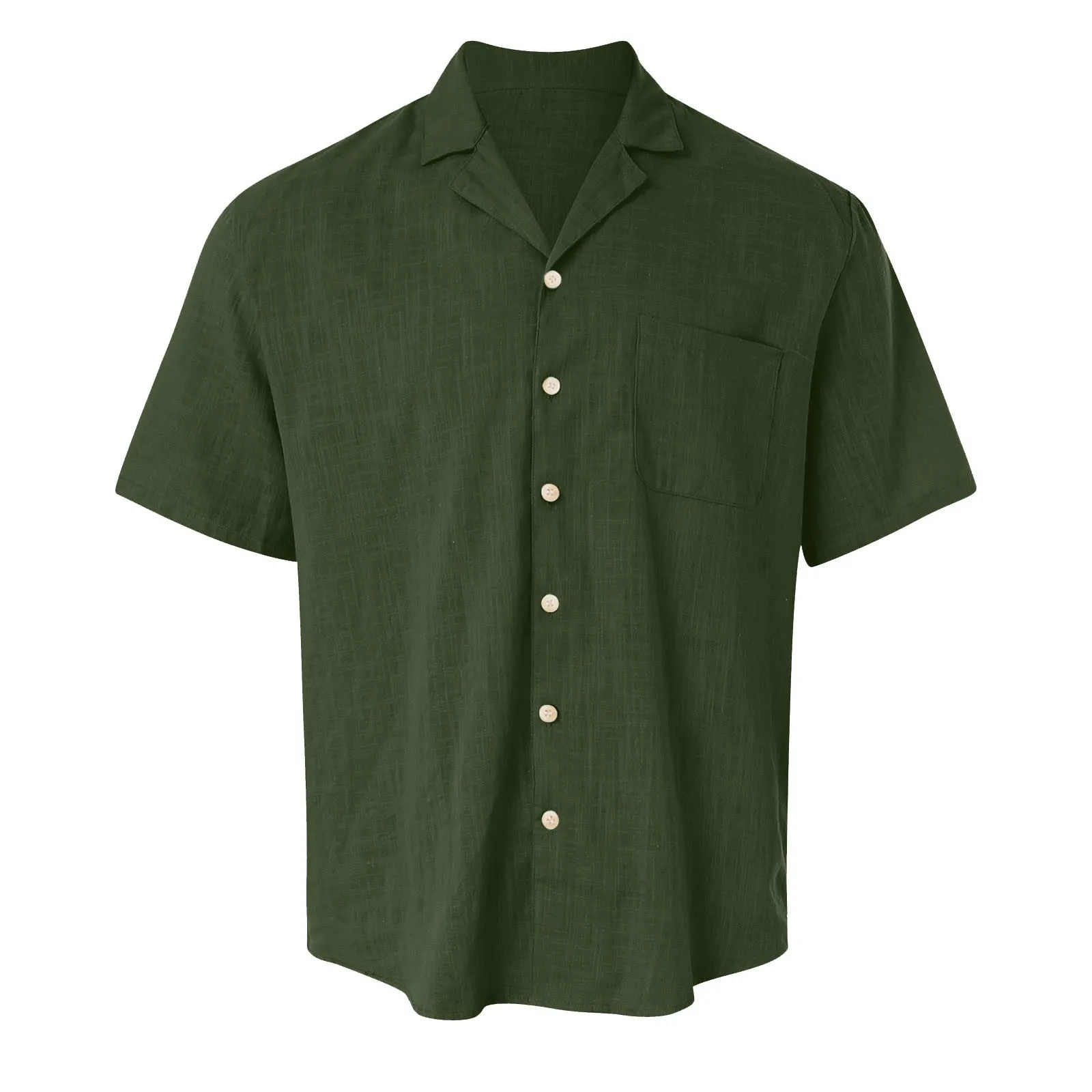 WIAOFELLAS - British Men'S Shirt New Summer Solid Color Casual Lapel Simple Breathable Top Comfortable Open-Collar Men'S Loose Beach Shirt