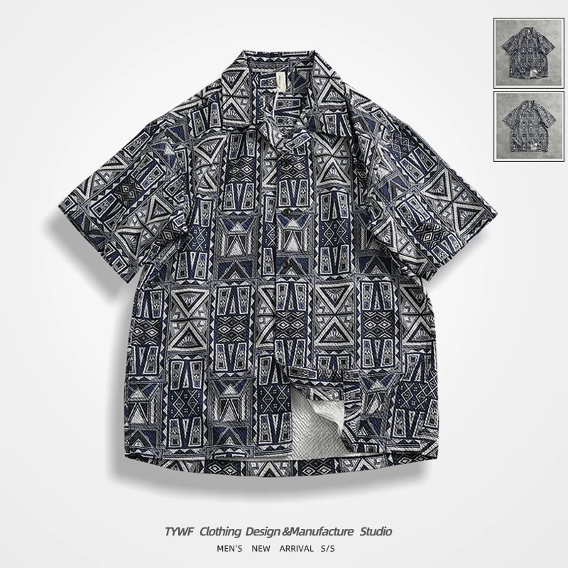 WIAOFELLAS  -  High street fashion shirt Men's Hawaiian short sleeve couple dress men's summer top Beach Cuban collar shirt