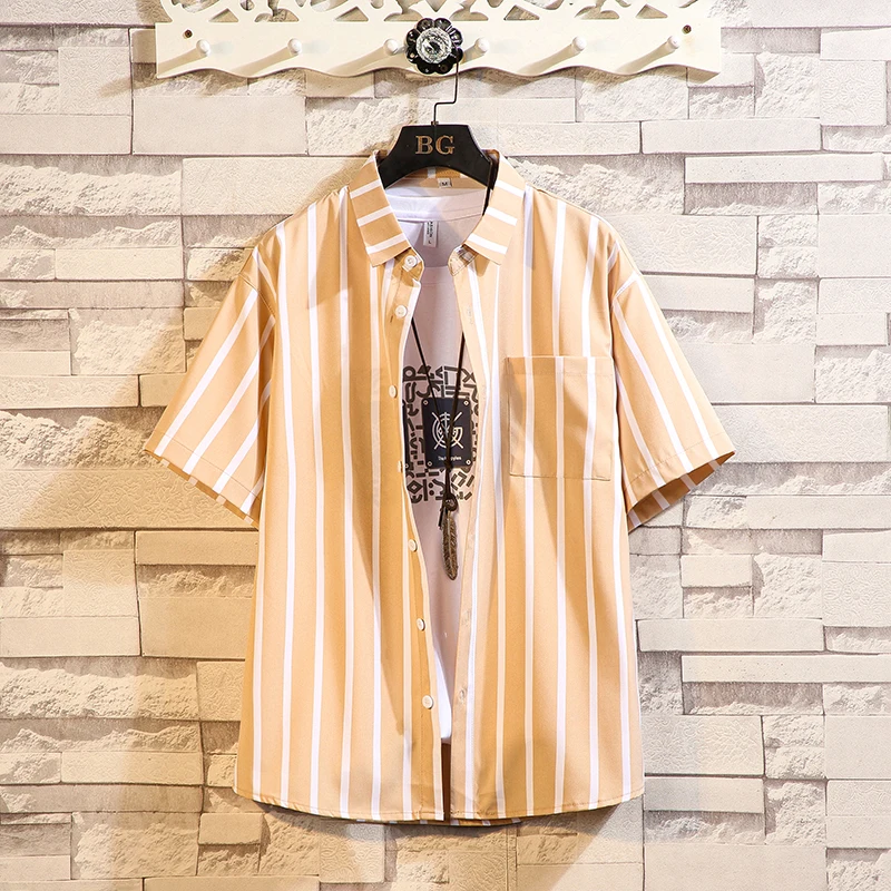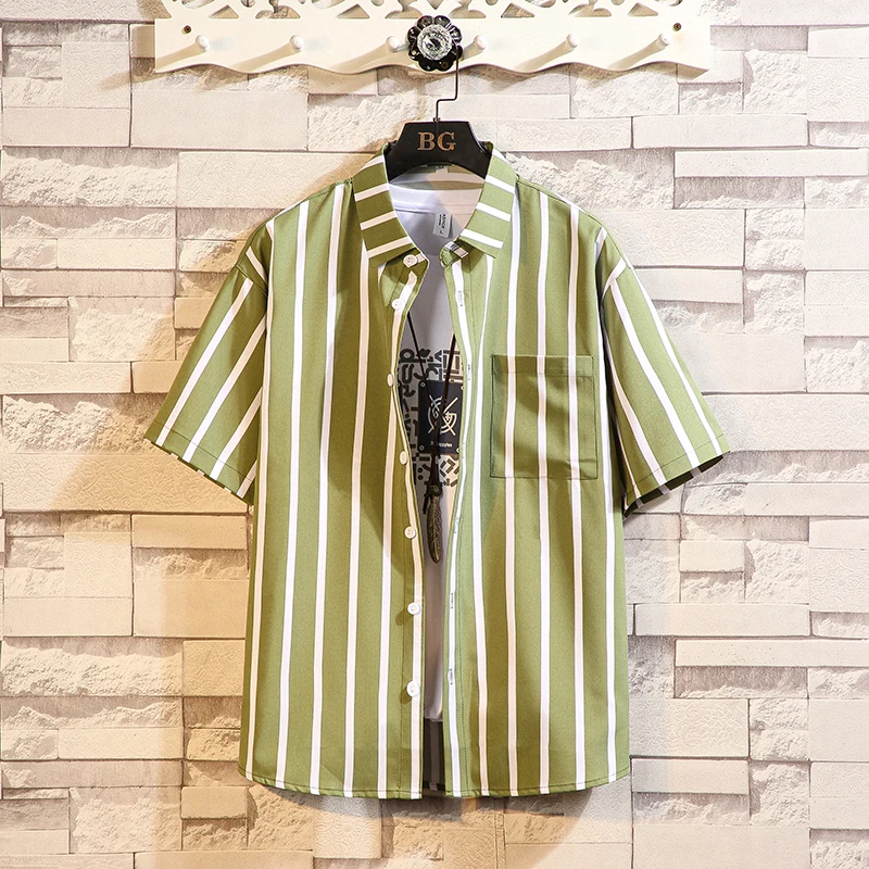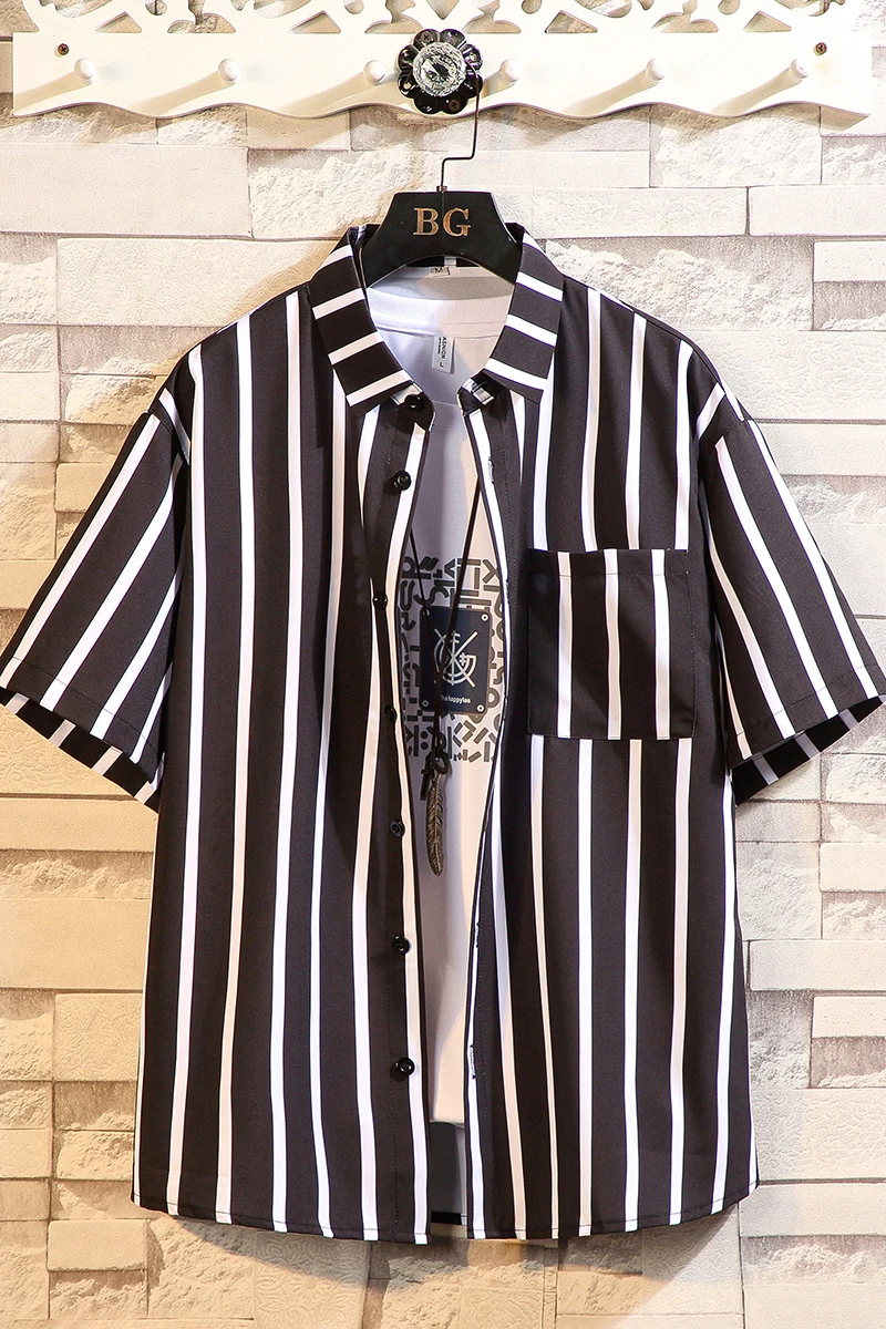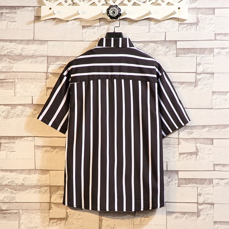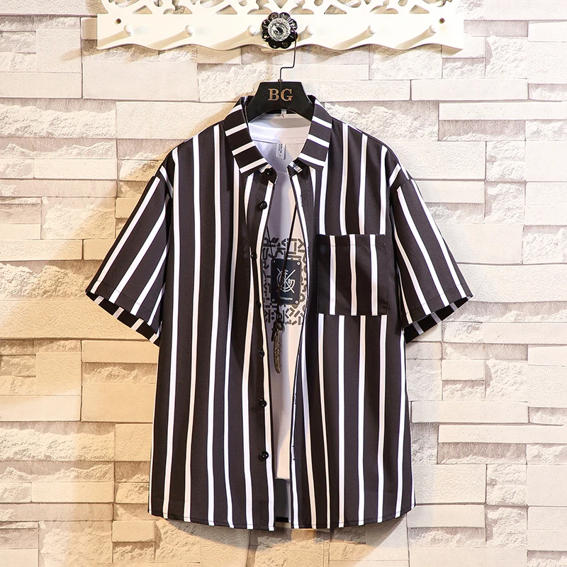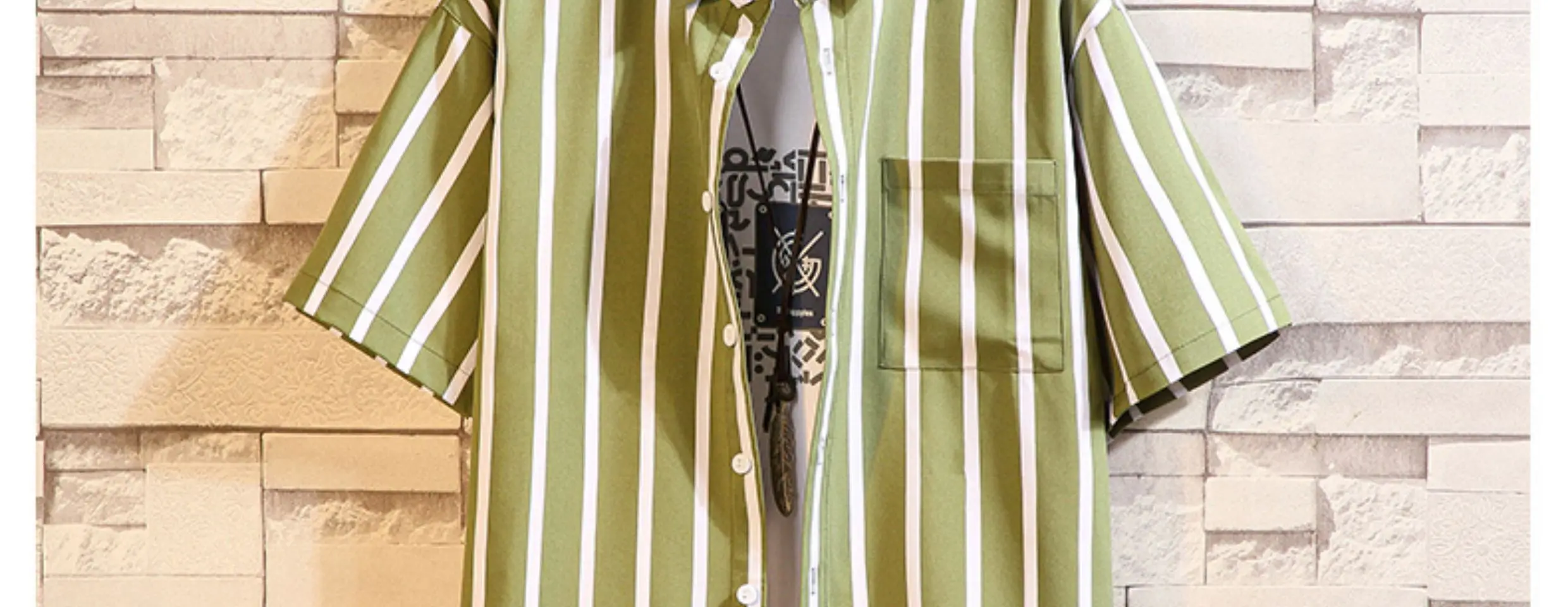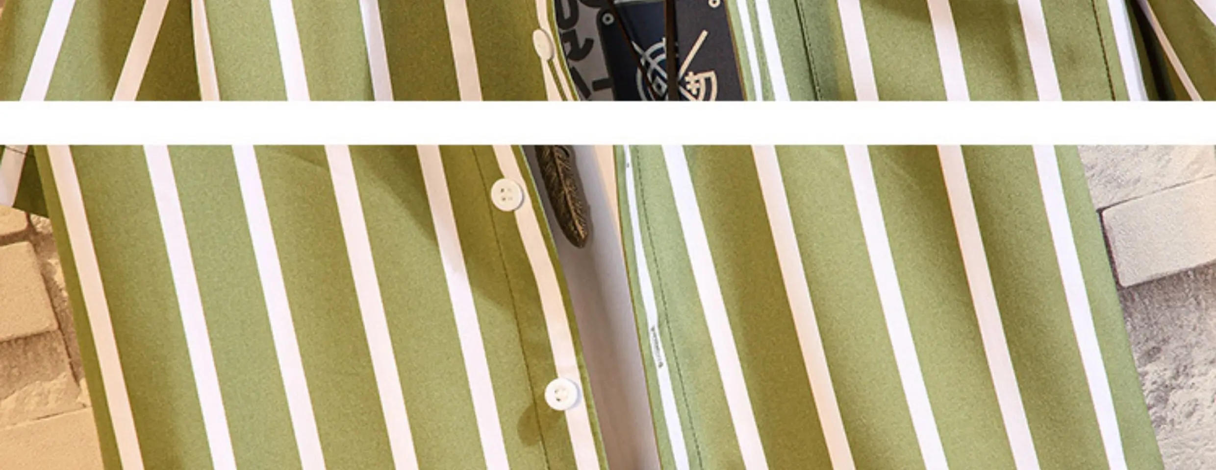 WIAOFELLAS - Summer Hawaiian Shirt Men Retro Shirt Stripe Pattern Pattern Short Sleeve Shirts Man Camisa Casua Beach Shirts M-5XL