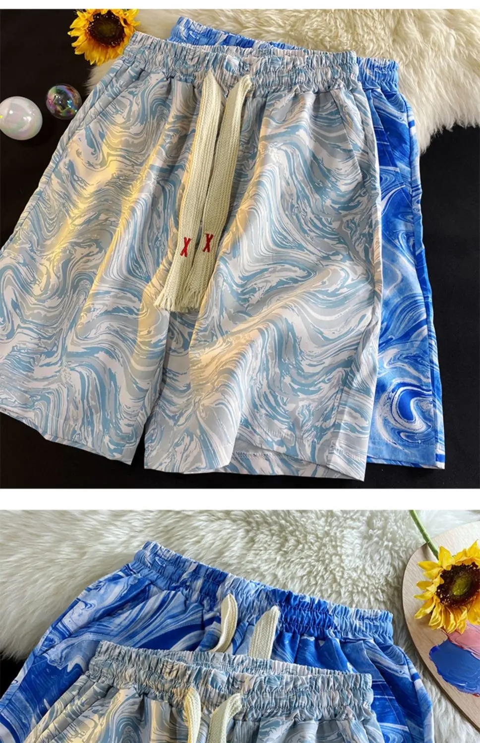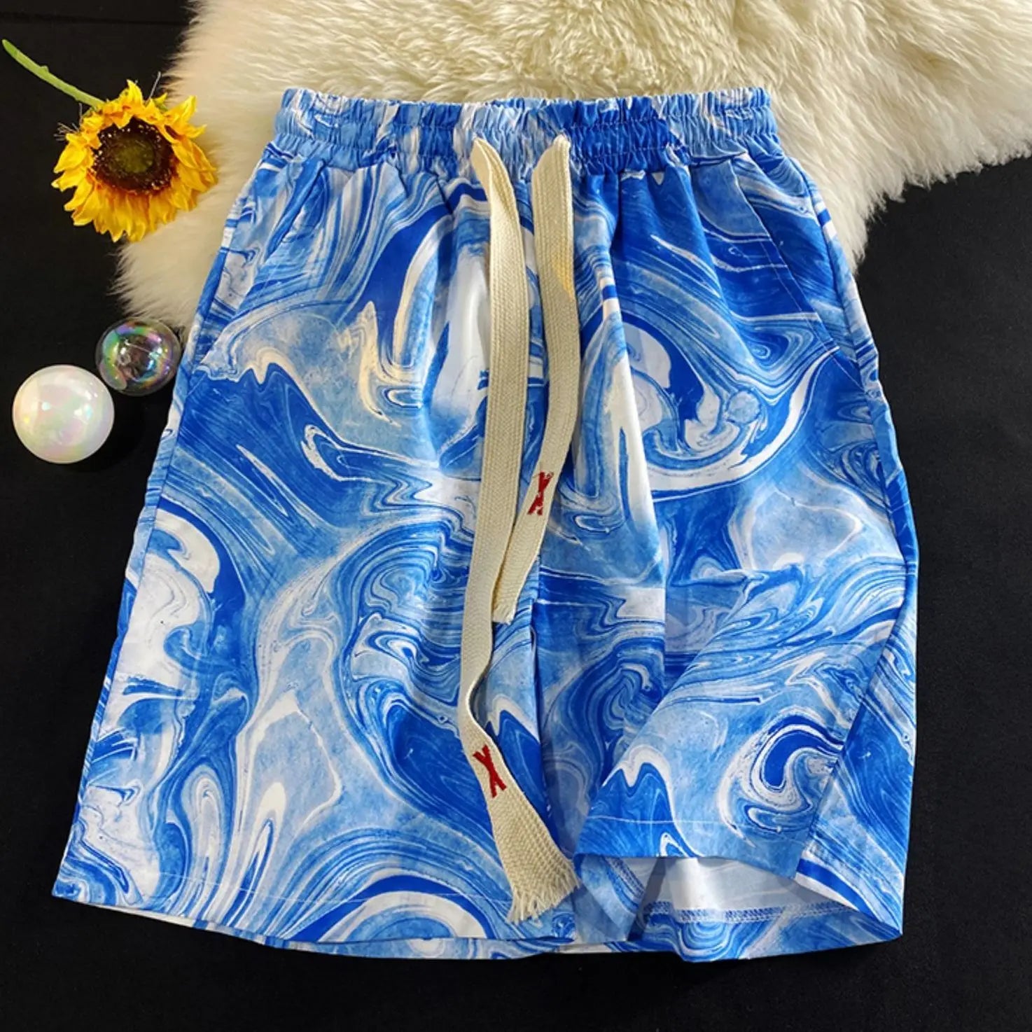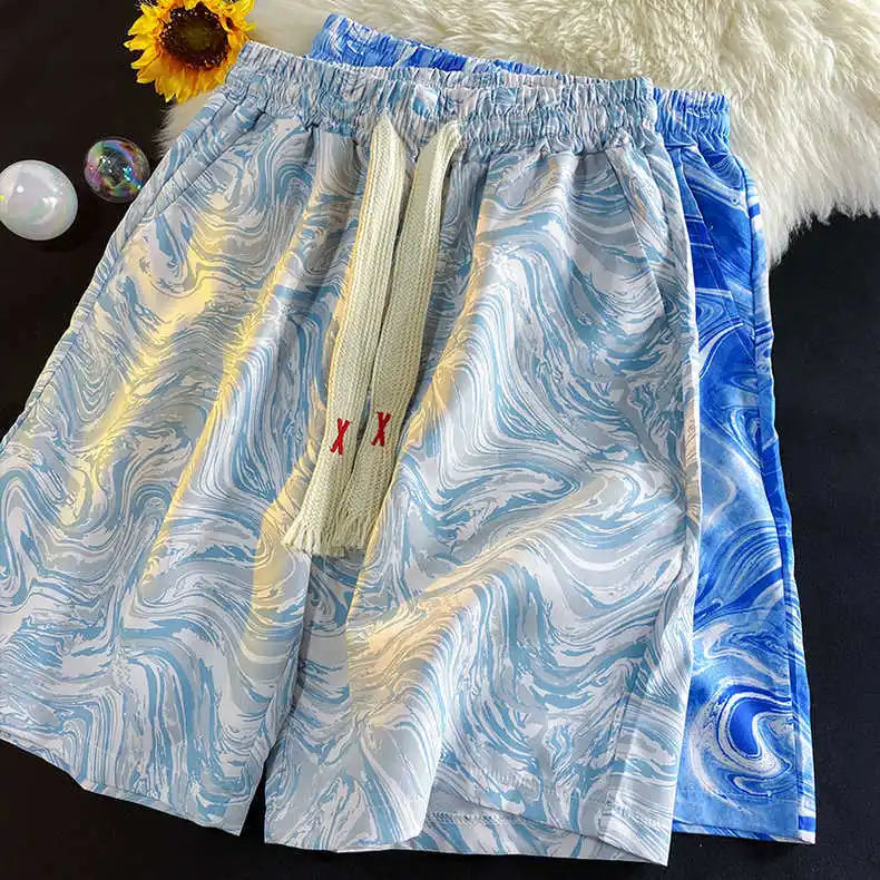 WIAOFELLAS  -  Tie-dye Casual Men Summer Ice Silk Loose Beach Shorts
