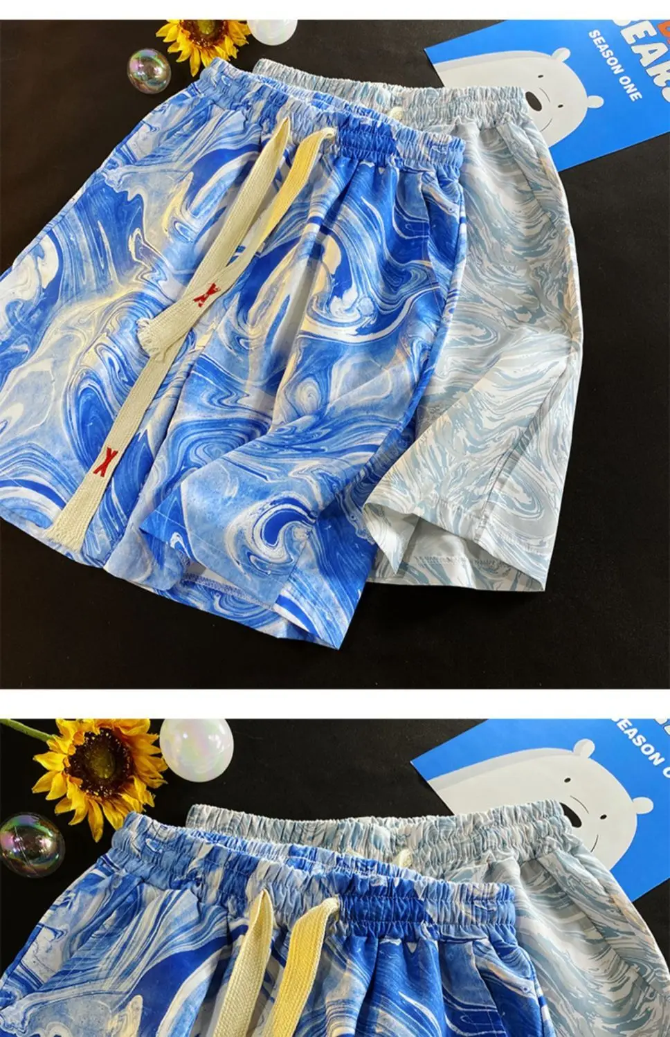 WIAOFELLAS - Tie-dye Casual Men Summer Ice Silk Loose Beach Shorts