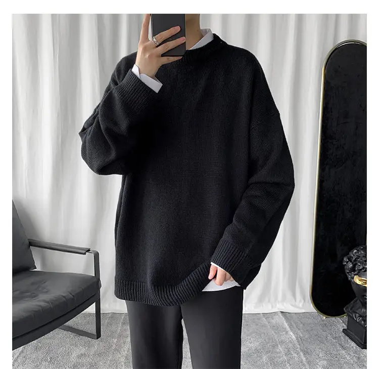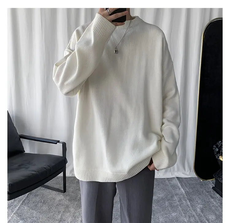 Wiaofellas - Autumn Winter Mens Warm Knitted Sweaters Pullover Men Vintage Casual Loose Sweater Male O-neck Long Sleeve Jumpers F394