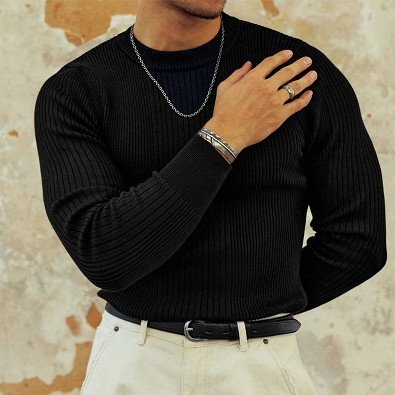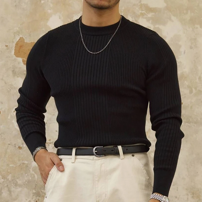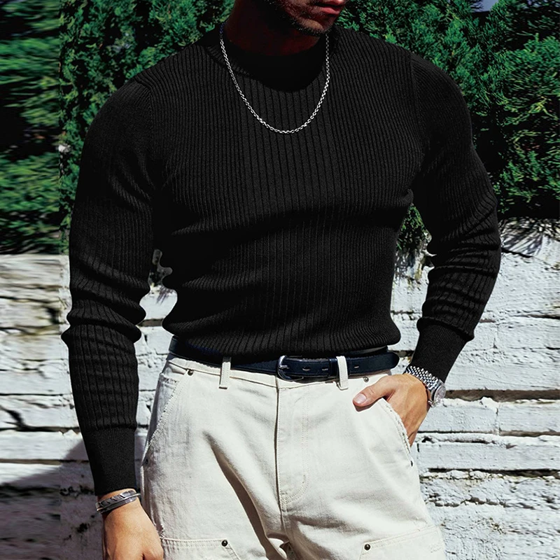 Wiaofellas  -  Spring Fashion Sweater Men Bottoming Tops Knitted Long Sleeve Crew Neck Jumper Tops Mens Casual Solid Color Knit Sweaters