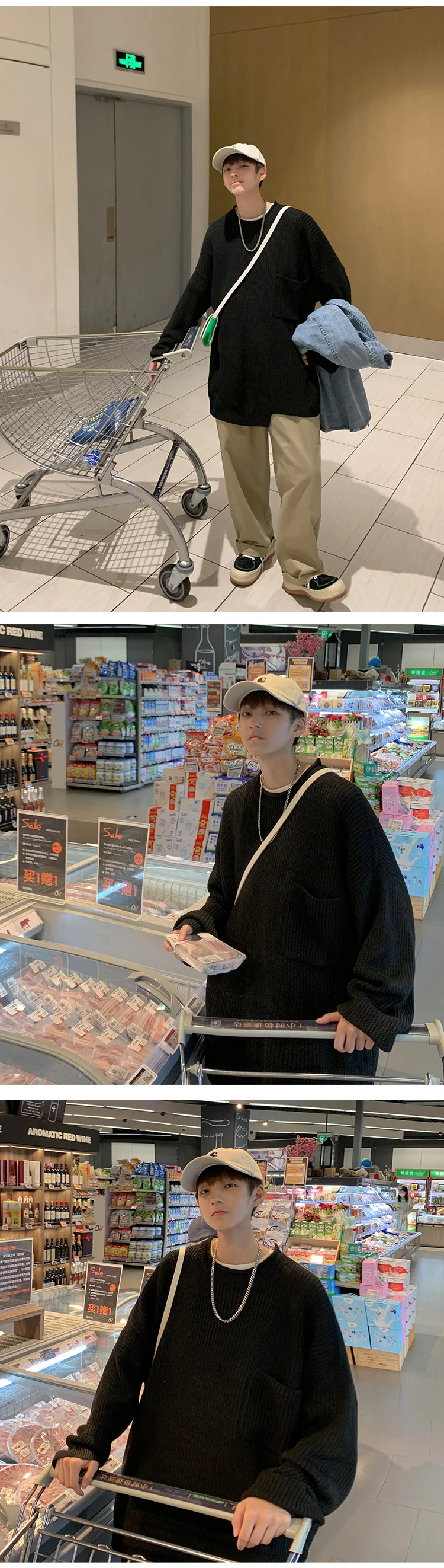 Wiaofellas Winter Men's Loose Long Sleeve Wool Sweaters Clothes Grey/blue/black Coats Homme Cashmere Pullover In Warm Knitting M-3XL
