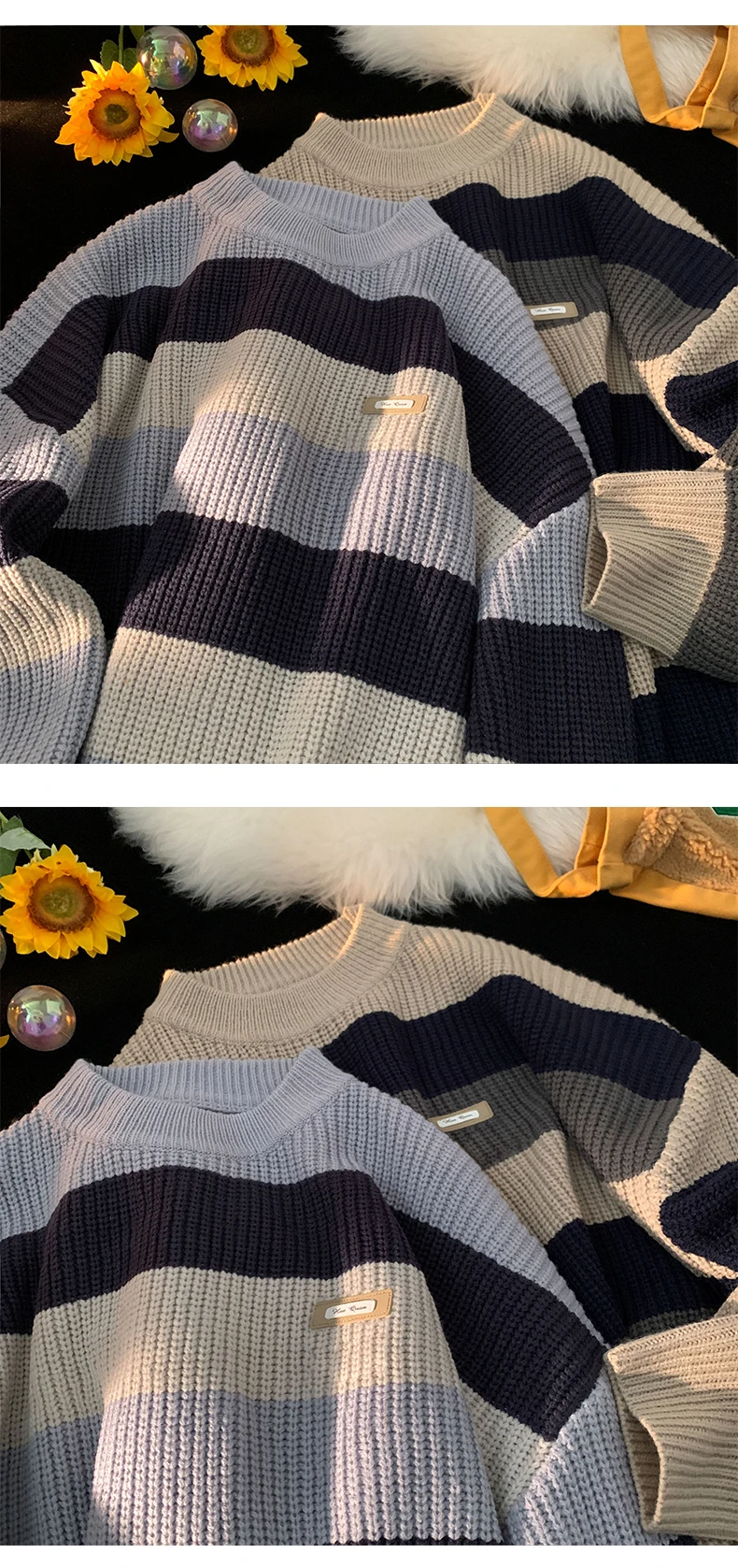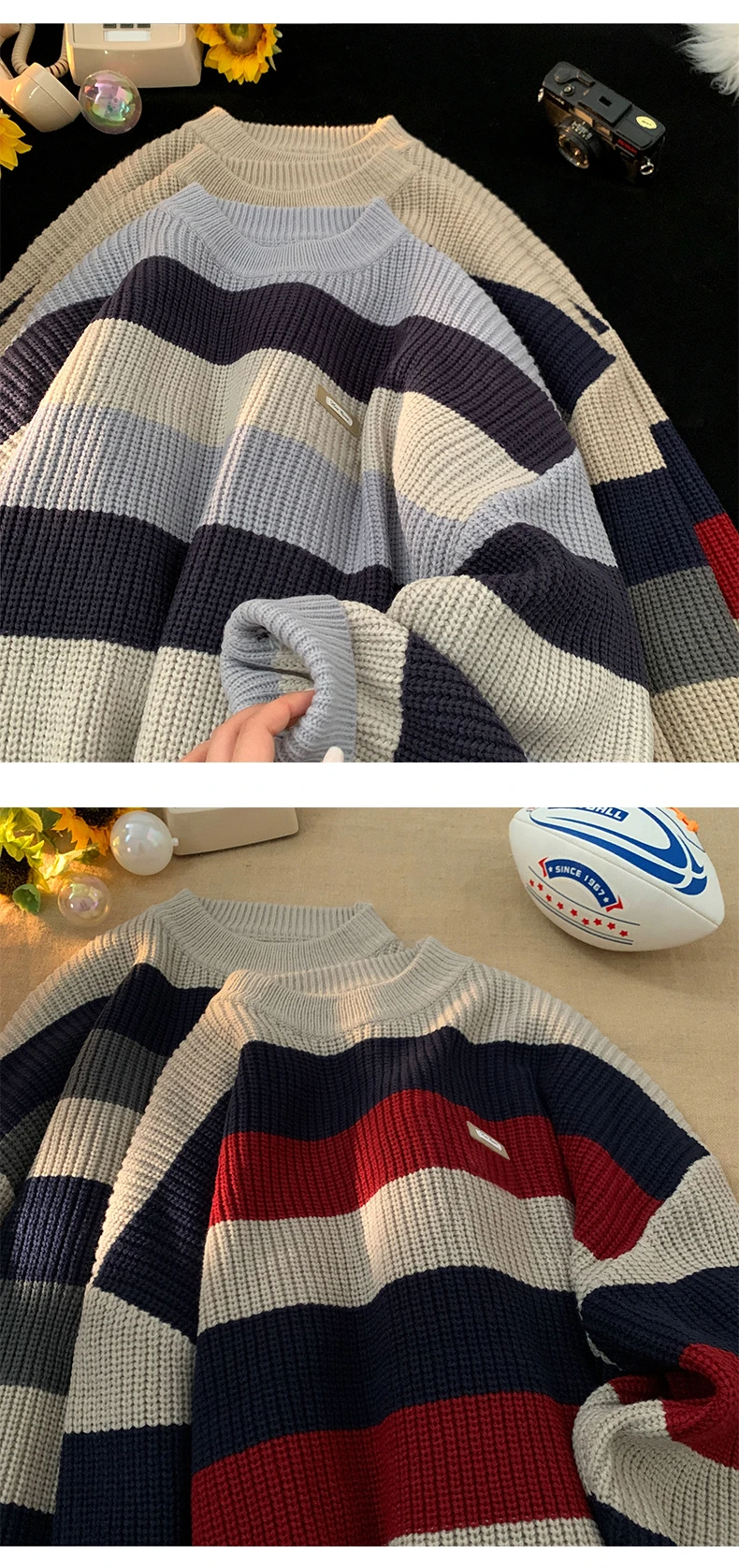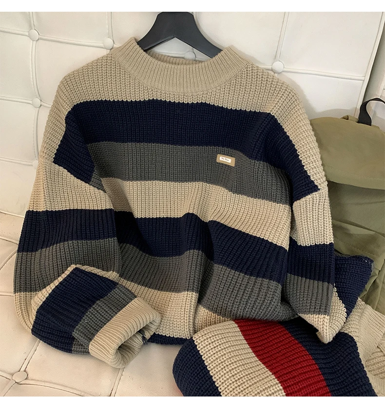 Wiaofellas Striped Men Sweaters Autumn Men's Pullovers Harajuku Streetwear Casual Loose Sweater Round Neck Sweater Man