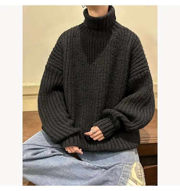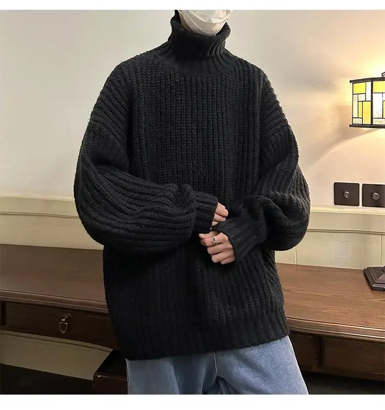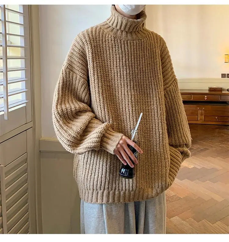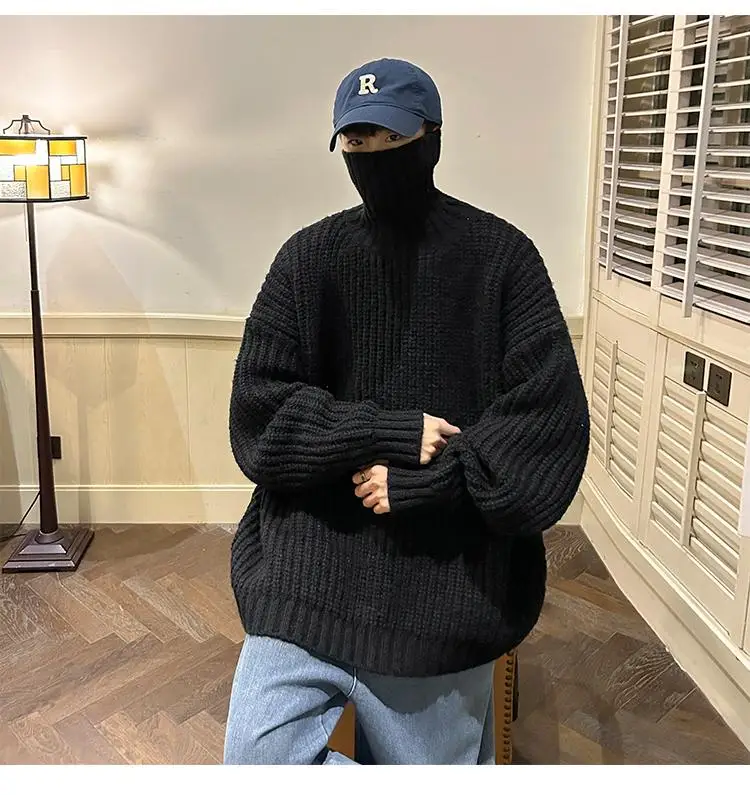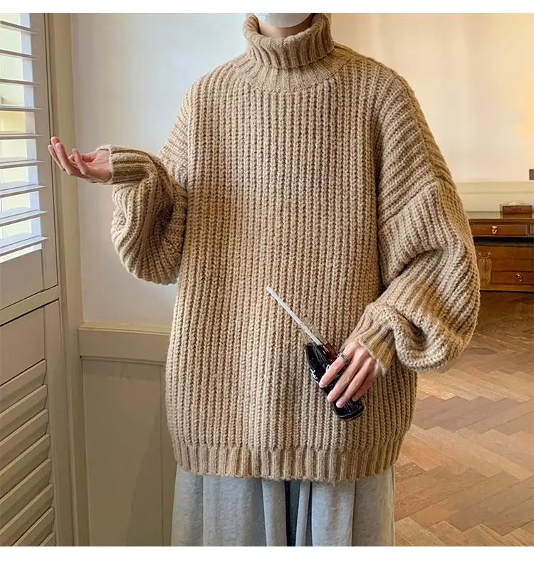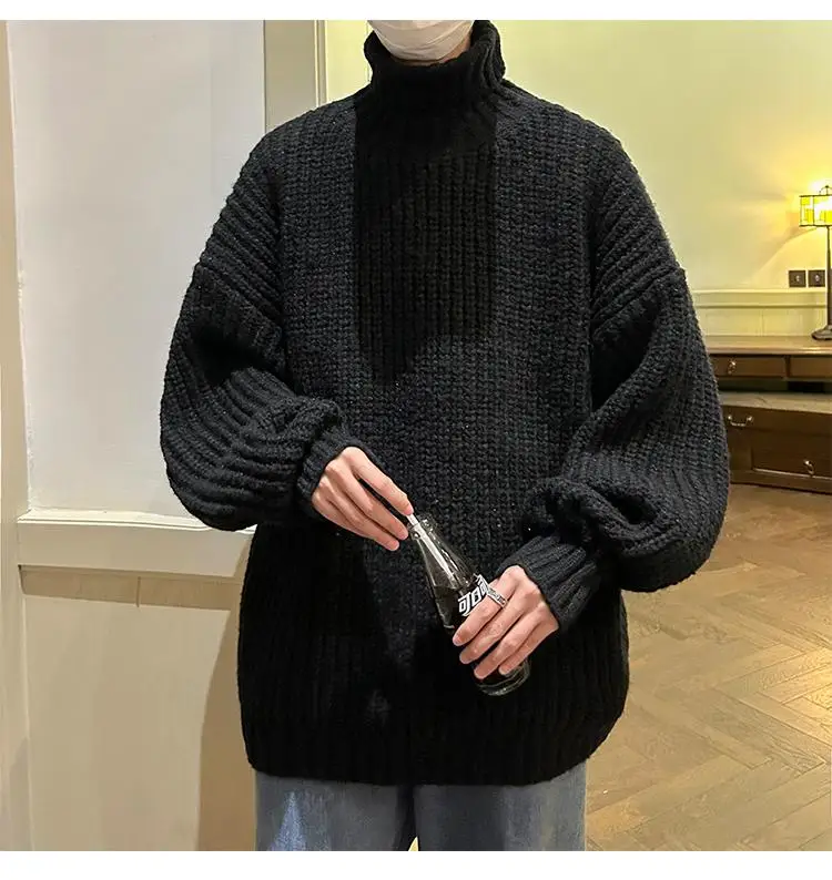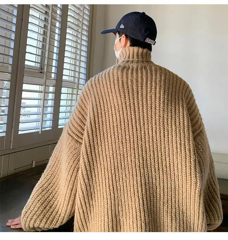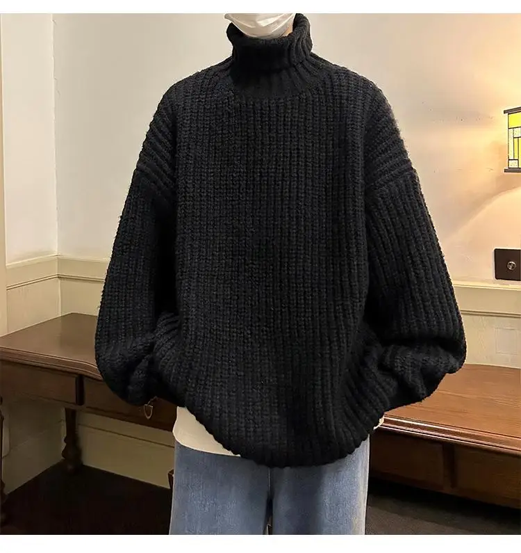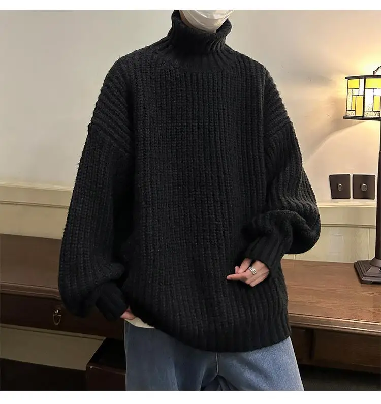 Wiaofellas Hong Kong Style Solid Color High Collar Versatile Couple High Collar Sweater Knit Pullover Fashion Daily Handsome Men Clothing
