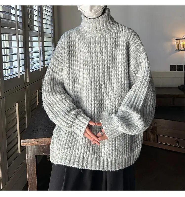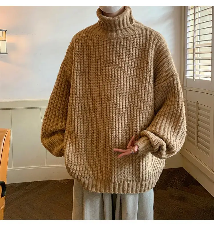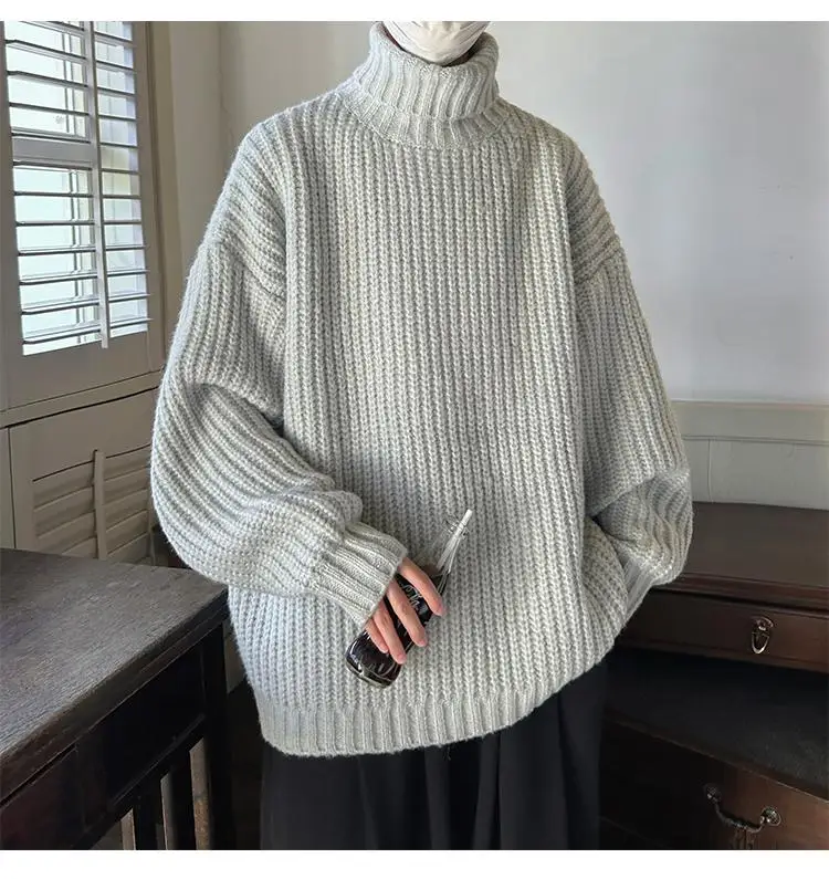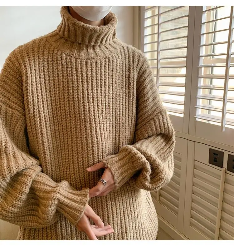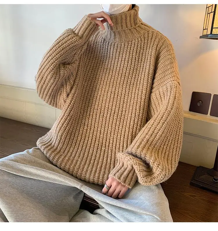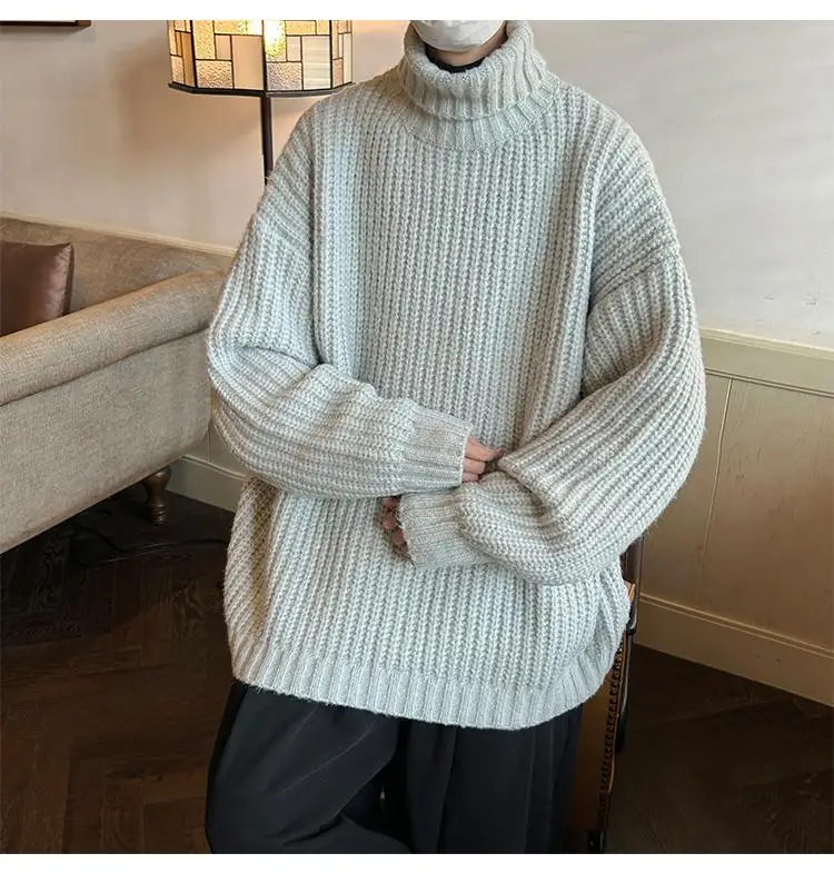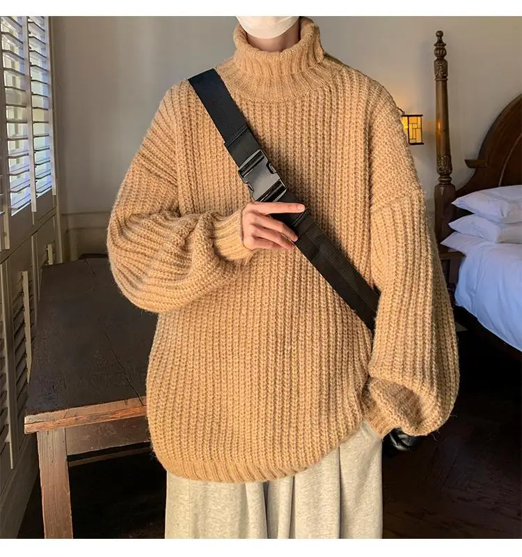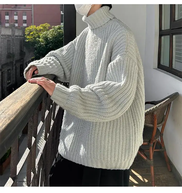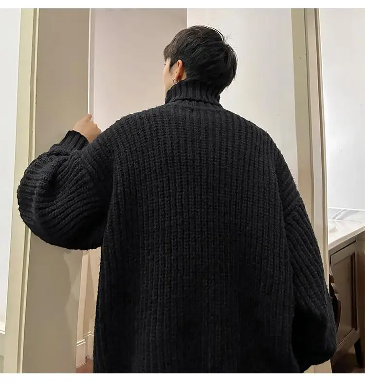 Wiaofellas Hong Kong Style Solid Color High Collar Versatile Couple High Collar Sweater Knit Pullover Fashion Daily Handsome Men Clothing