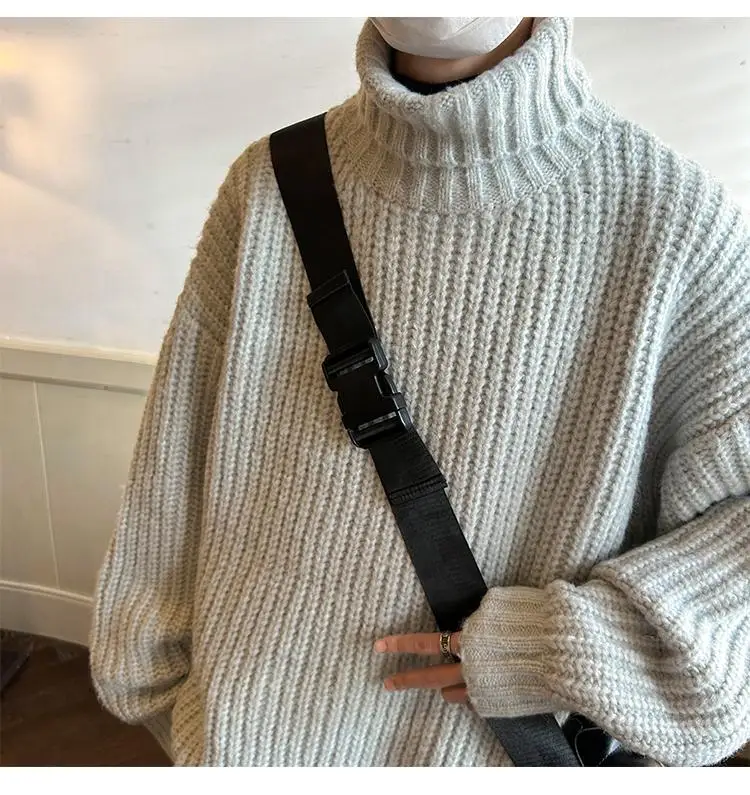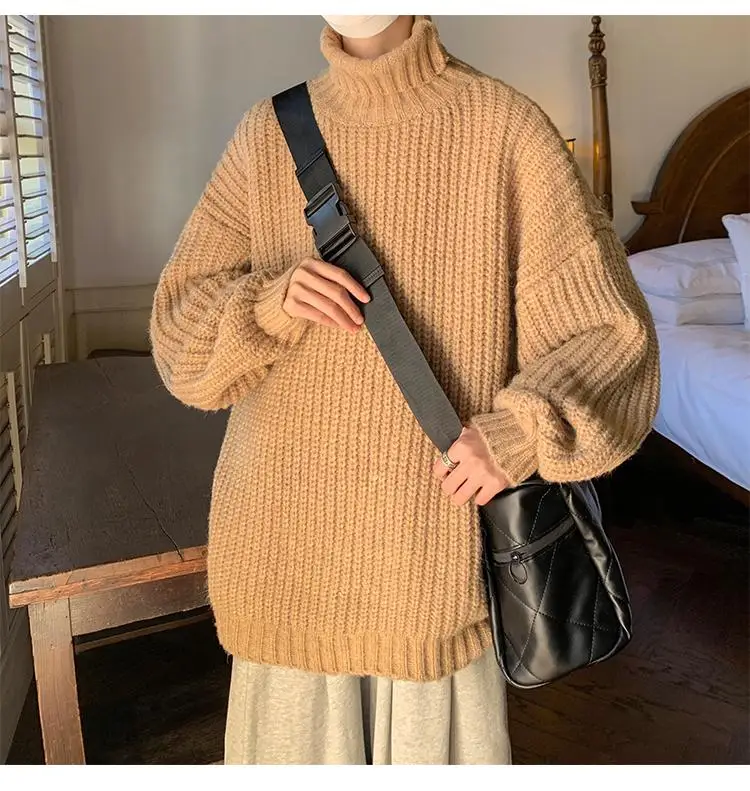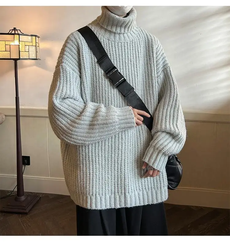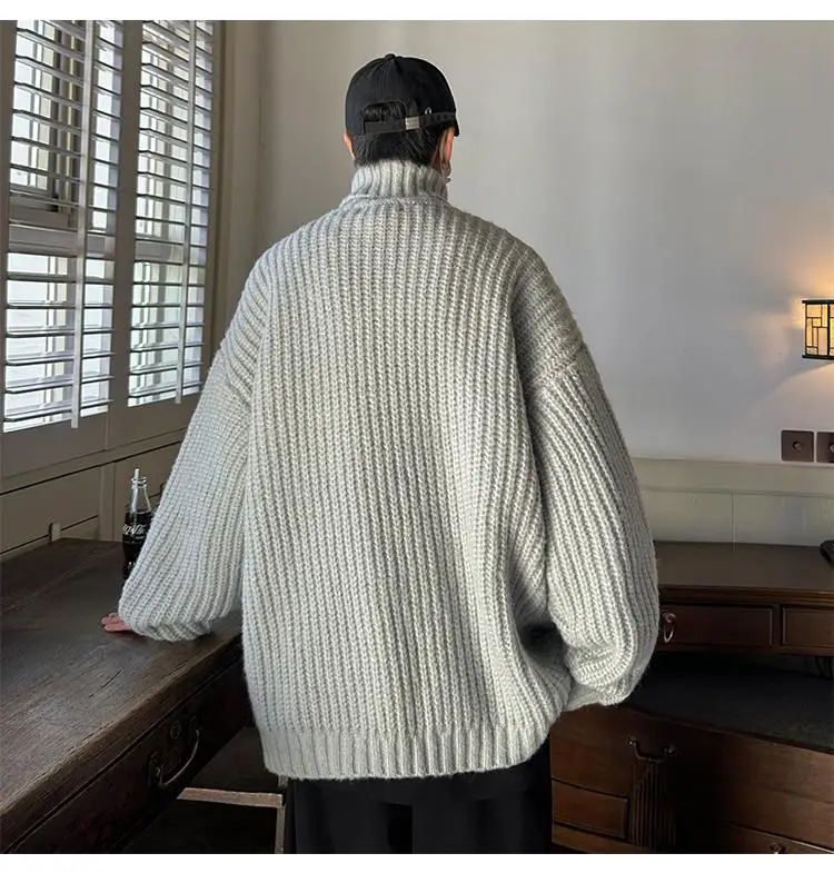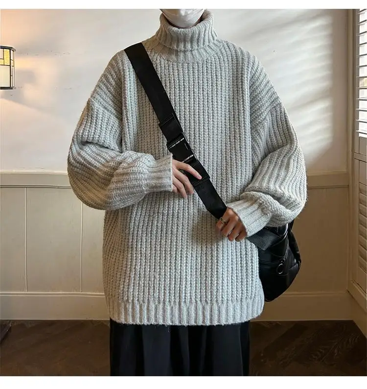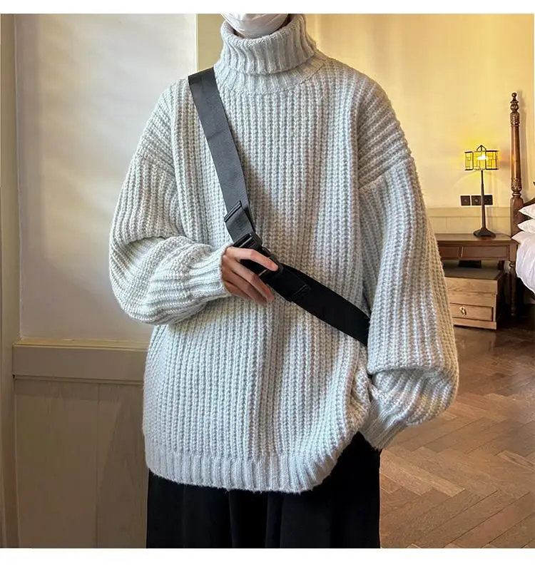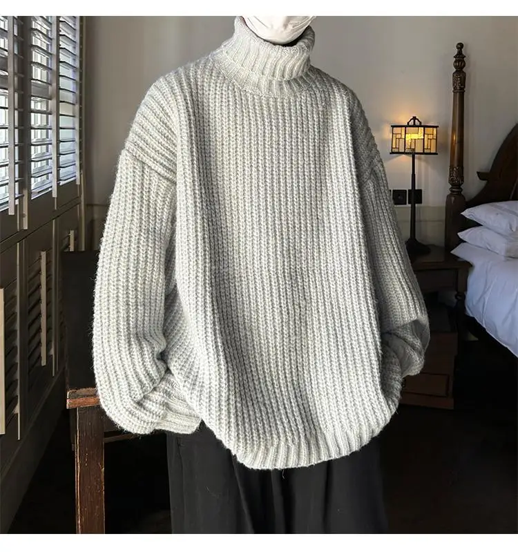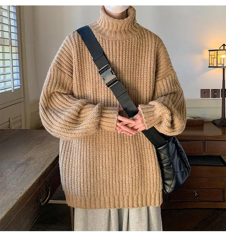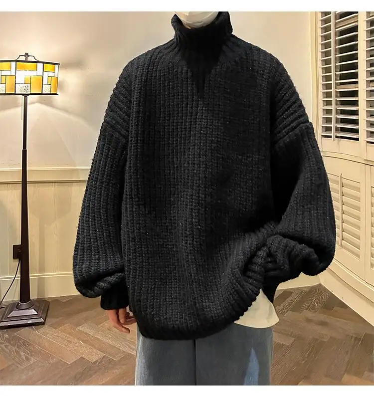 Wiaofellas Hong Kong Style Solid Color High Collar Versatile Couple High Collar Sweater Knit Pullover Fashion Daily Handsome Men Clothing