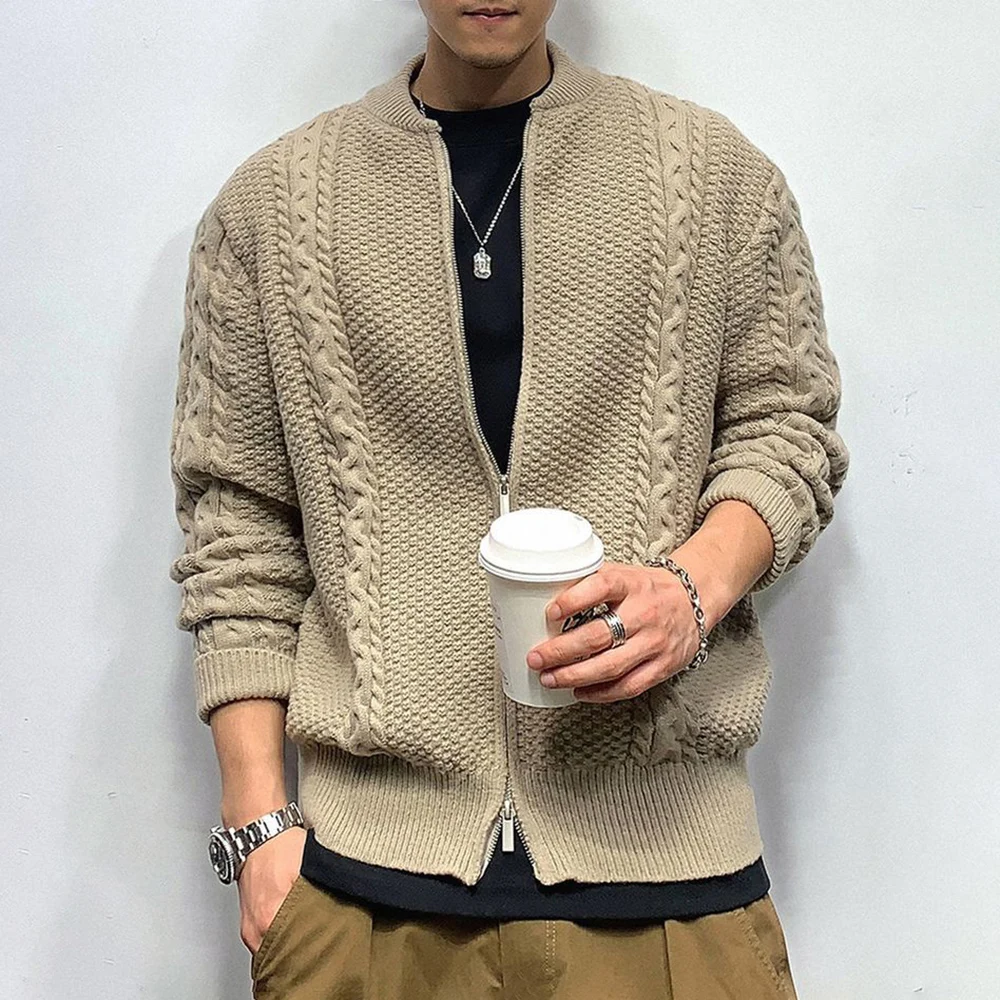 Wiaofellas Autumn And Winter Mens Design Niche Zipper Knitted Cardigan Men'S Retro Twist Twist Baseball Collar Sweater Solid Color Jacket