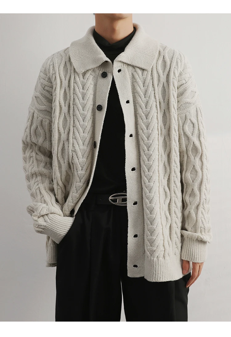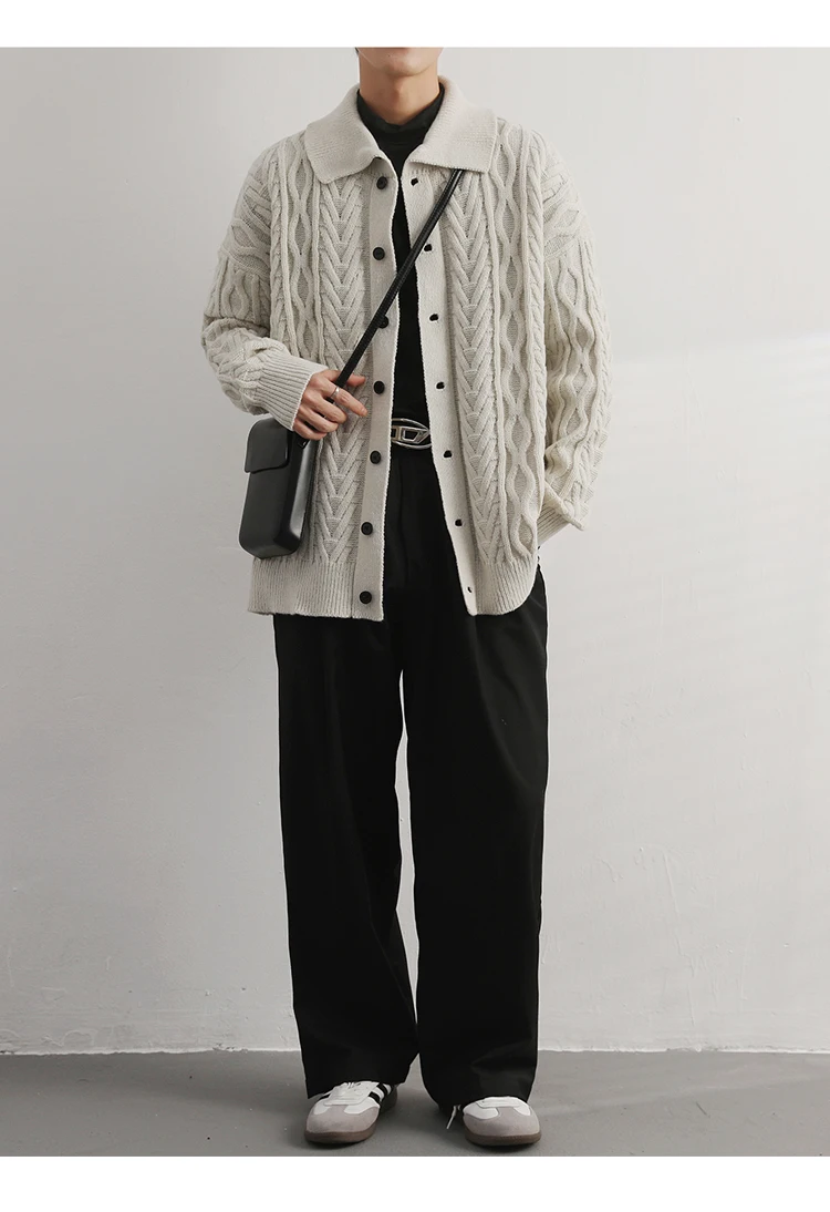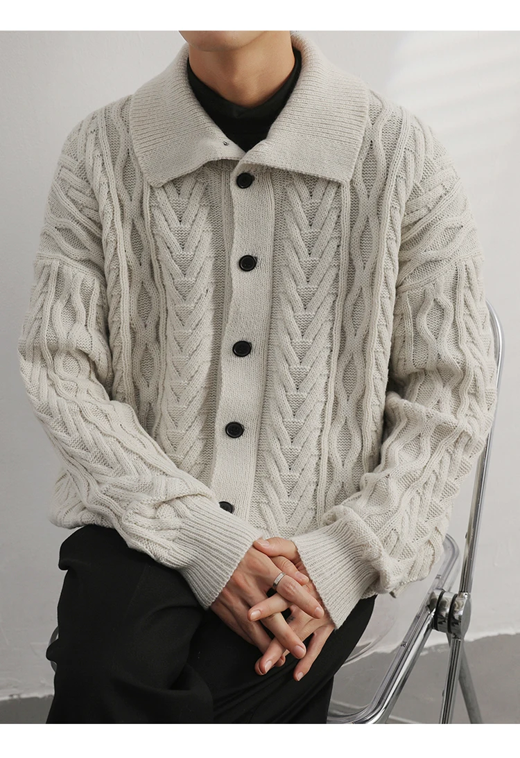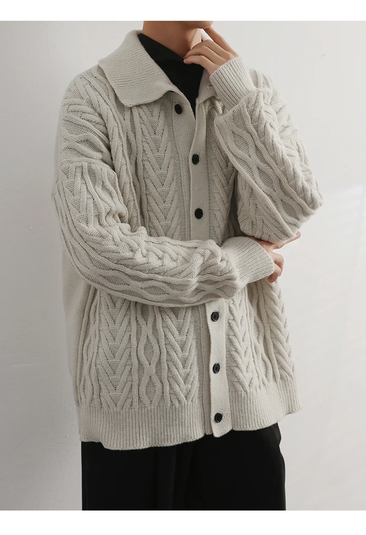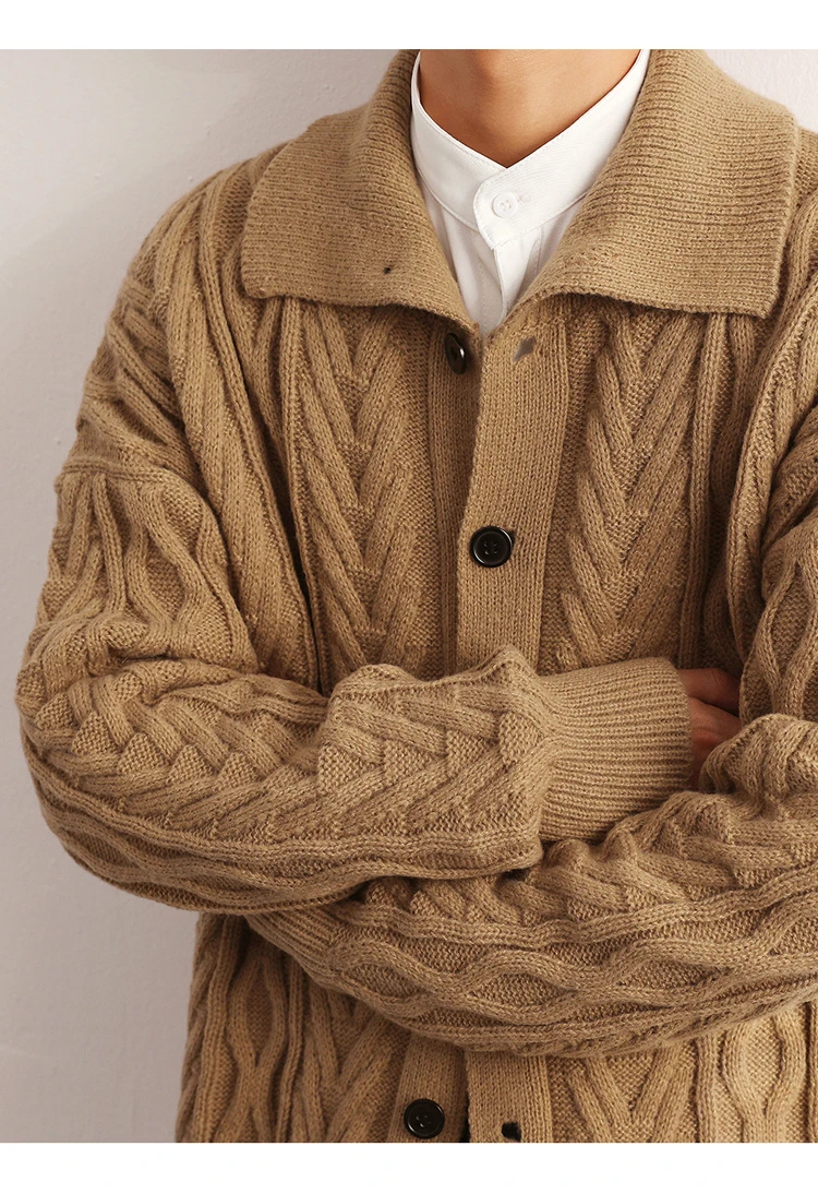 Wiaofellas Winter Fashion Thickened Collar Cardigan Sweater Men's Japanese Retro Lazy Loose Versatile Casual Fried Dough Twists Knit Coat