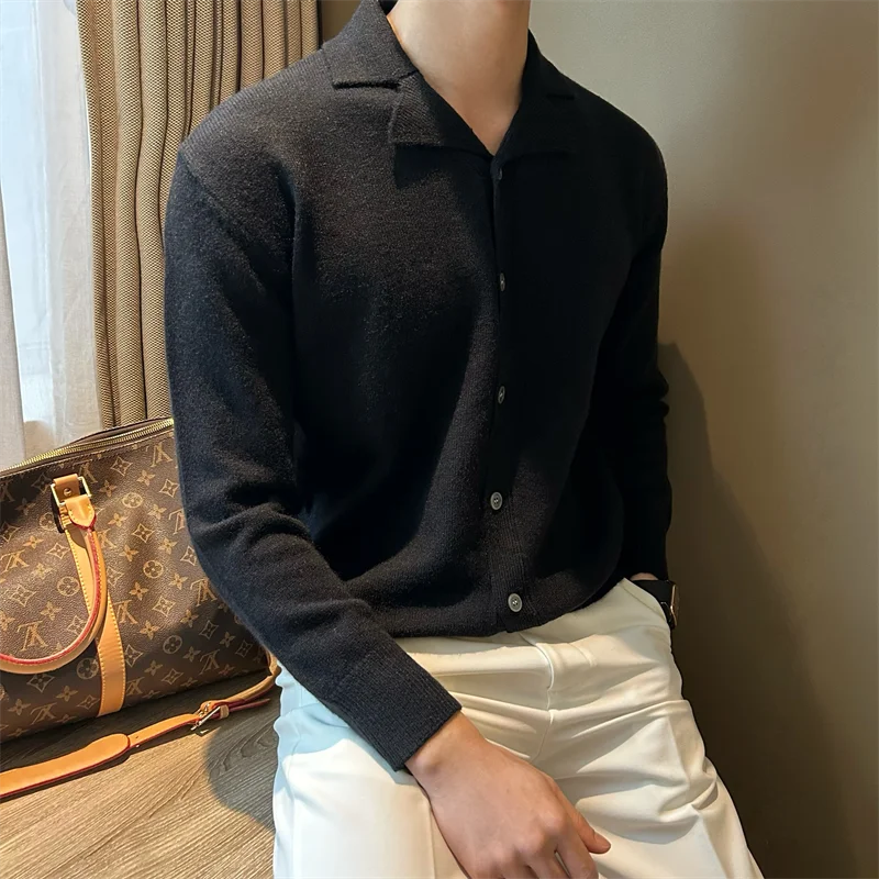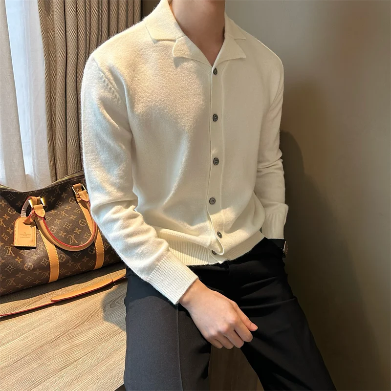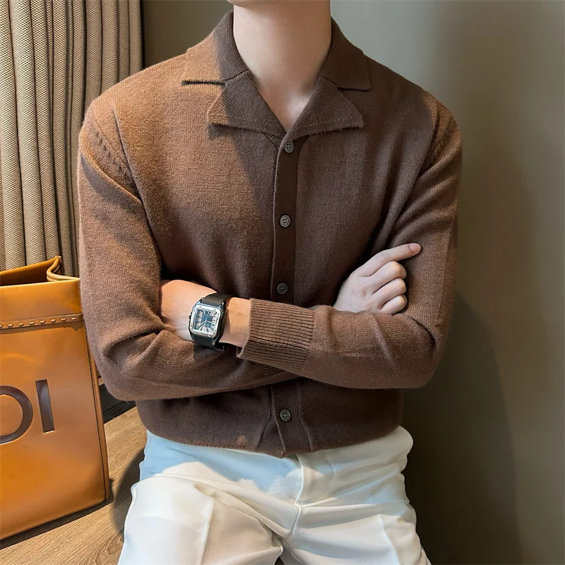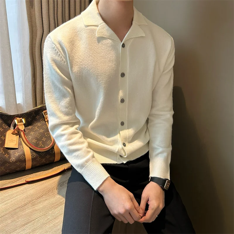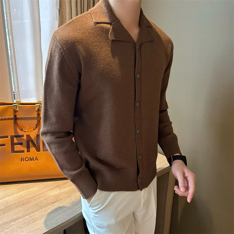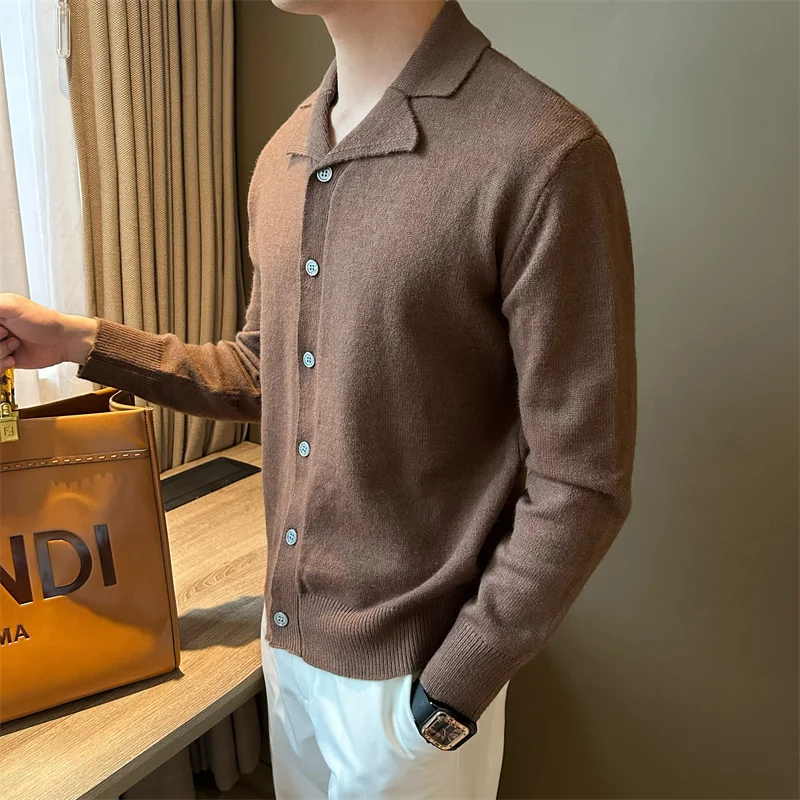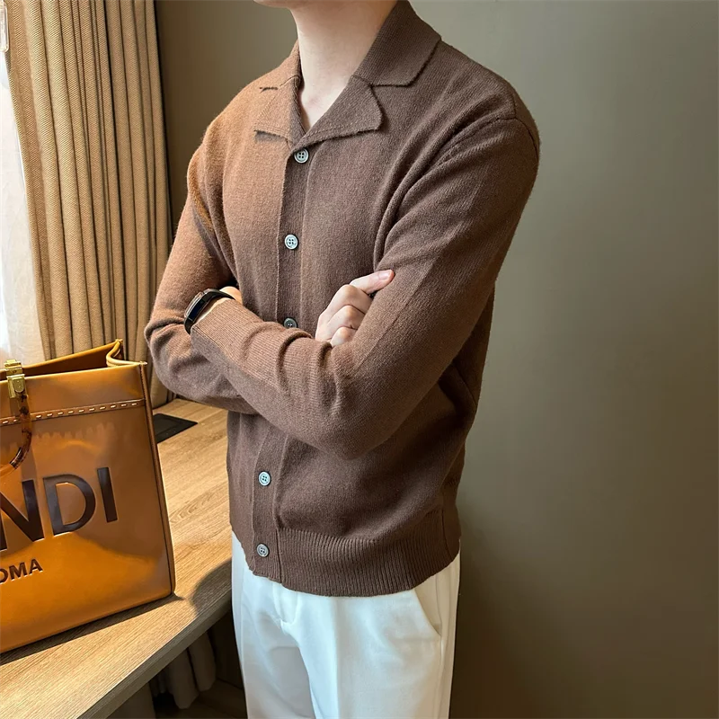 Wiaofellas Solid Color Sweaters Winter Warm Men Coat Fall Lapel Sweater Cardigan Men Knitting Single Breasted Top Cardigan Pleated Sweater