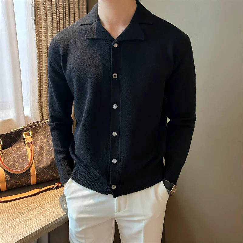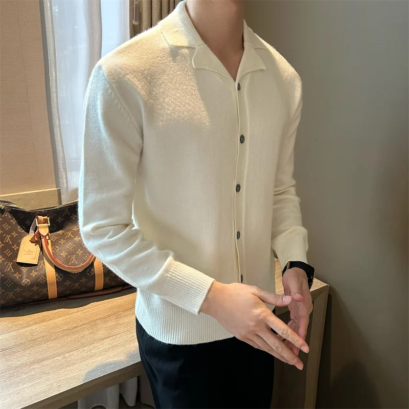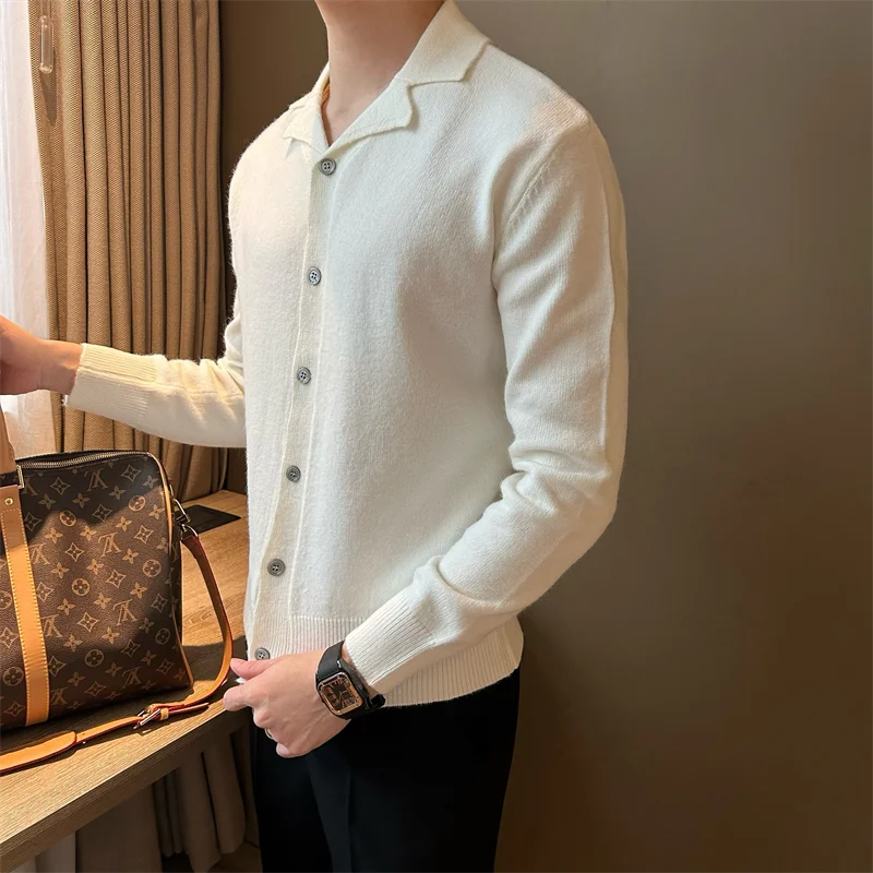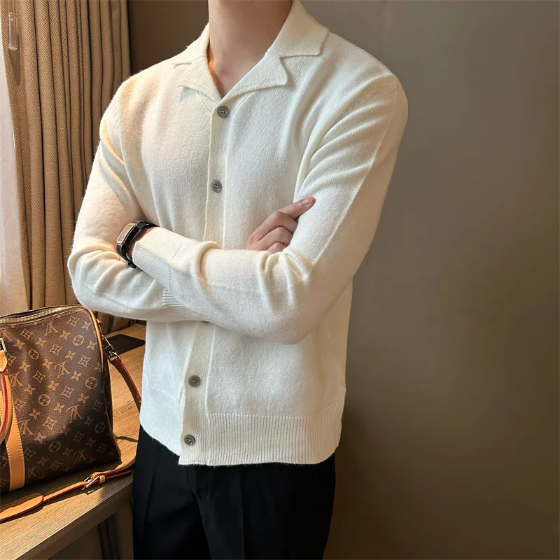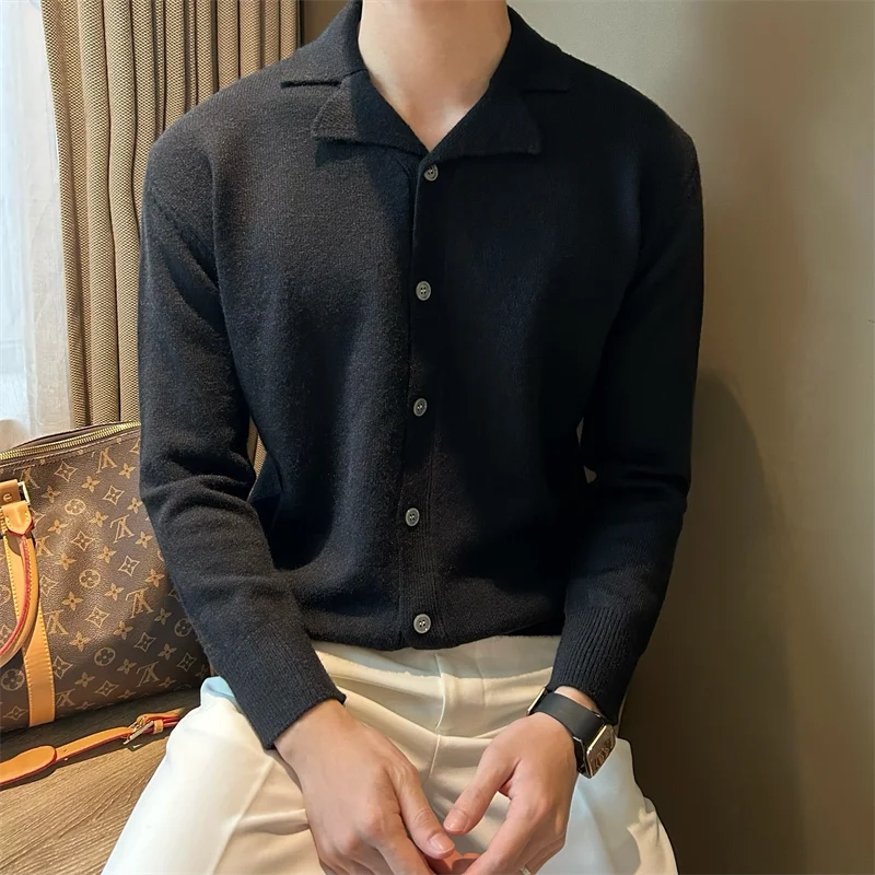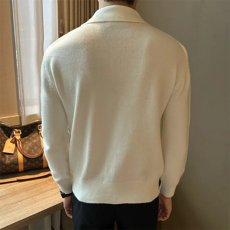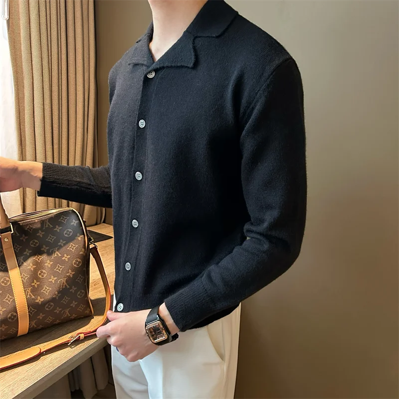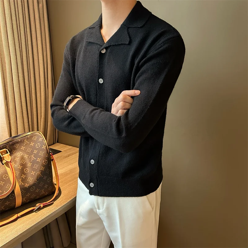 Wiaofellas Solid Color Sweaters Winter Warm Men Coat Fall Lapel Sweater Cardigan Men Knitting Single Breasted Top Cardigan Pleated Sweater