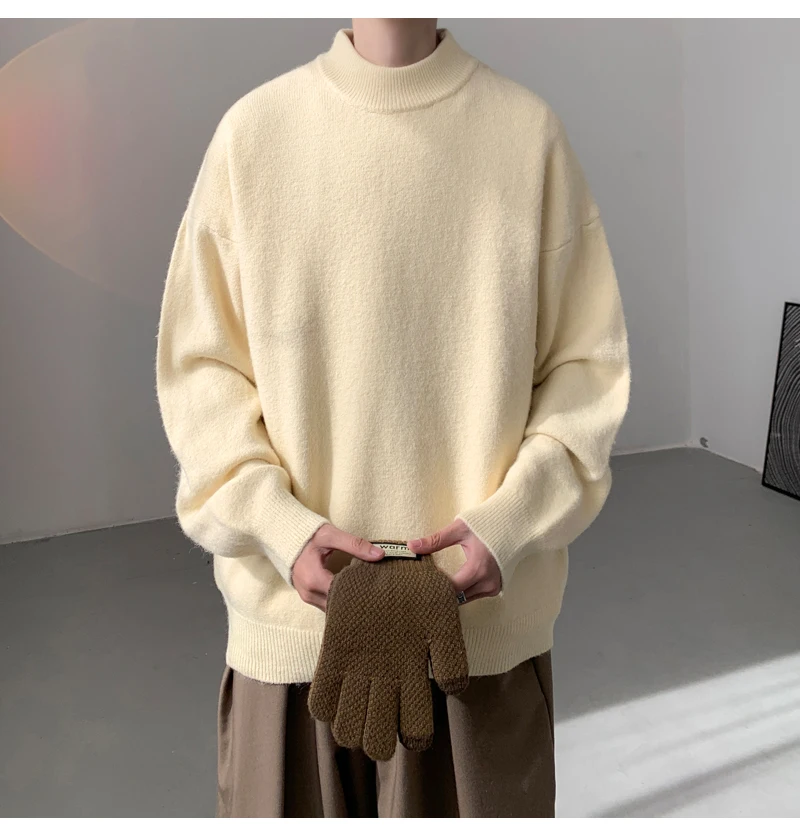 Wiaofellas Winter Sweater Men Warm Fashion Solid Color Knitted Pullover Men Korean Loose Standing Neck Sweater Mens Jumper Clothes S-3XL
