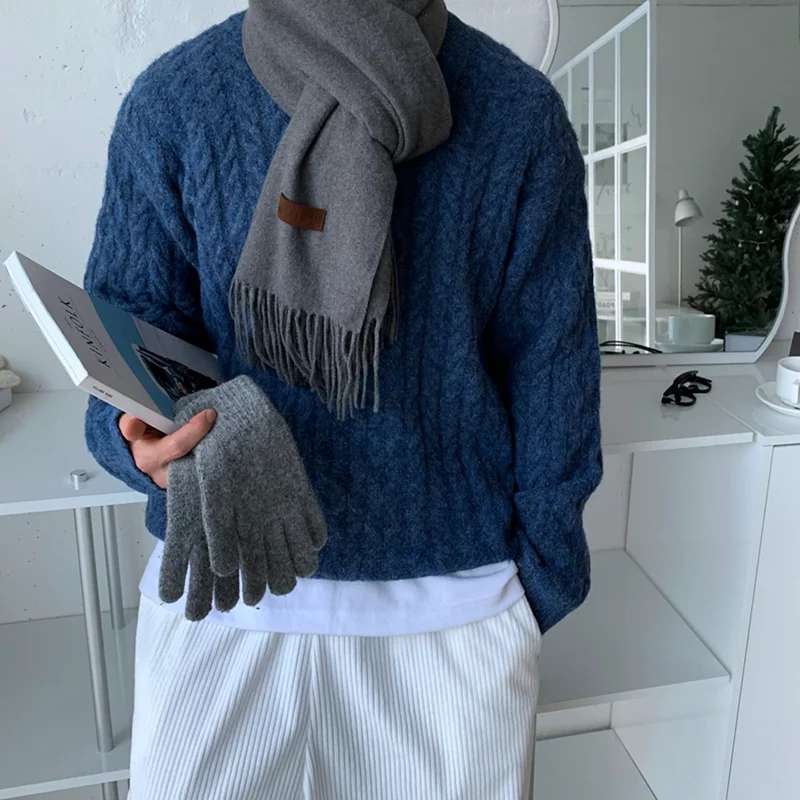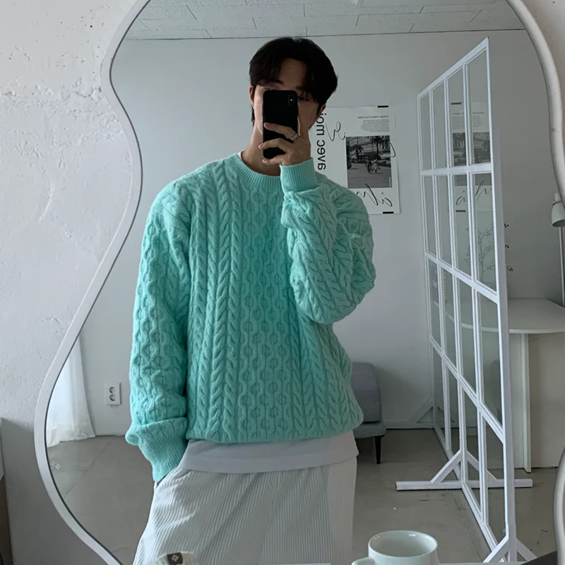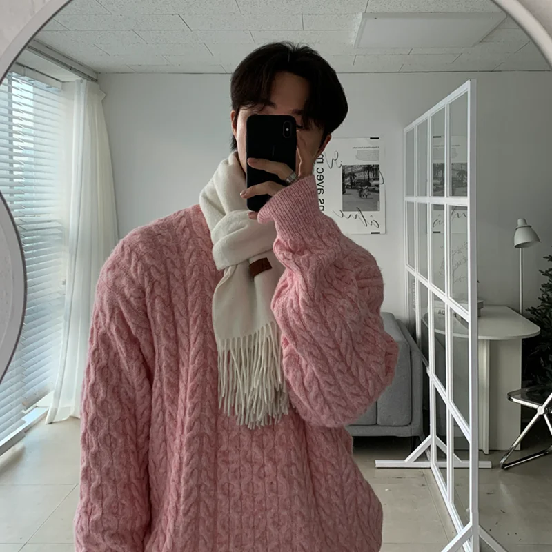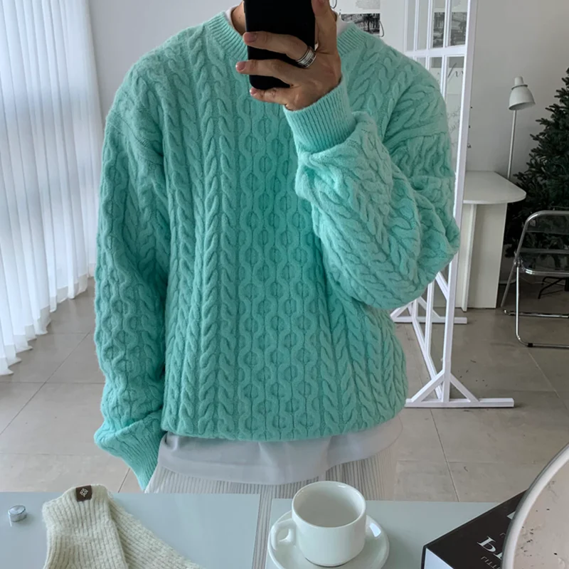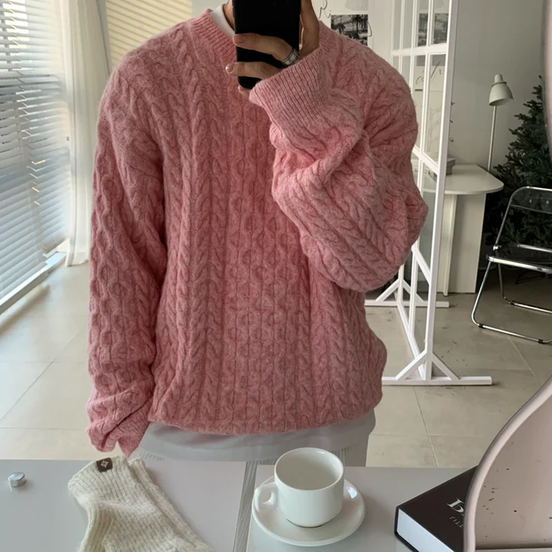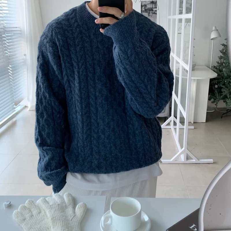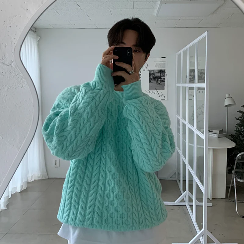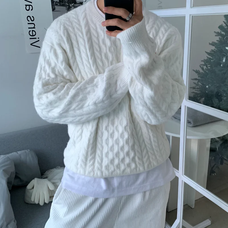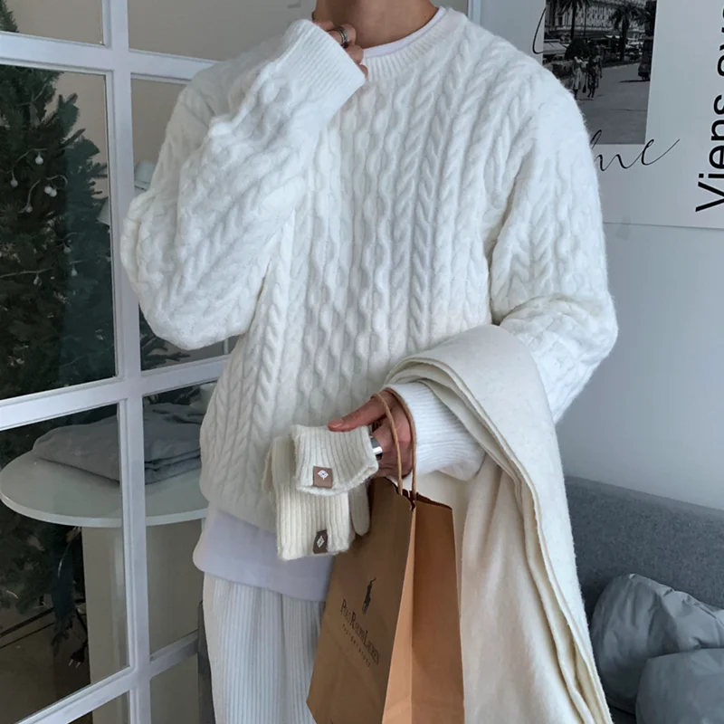 Wiaofellas Winter Sweater Men Warm Solid Color Casual Thick Knit Pullover Men Korean Loose Long Sleeved Sweater Mens Jumper Clothes M-2XL