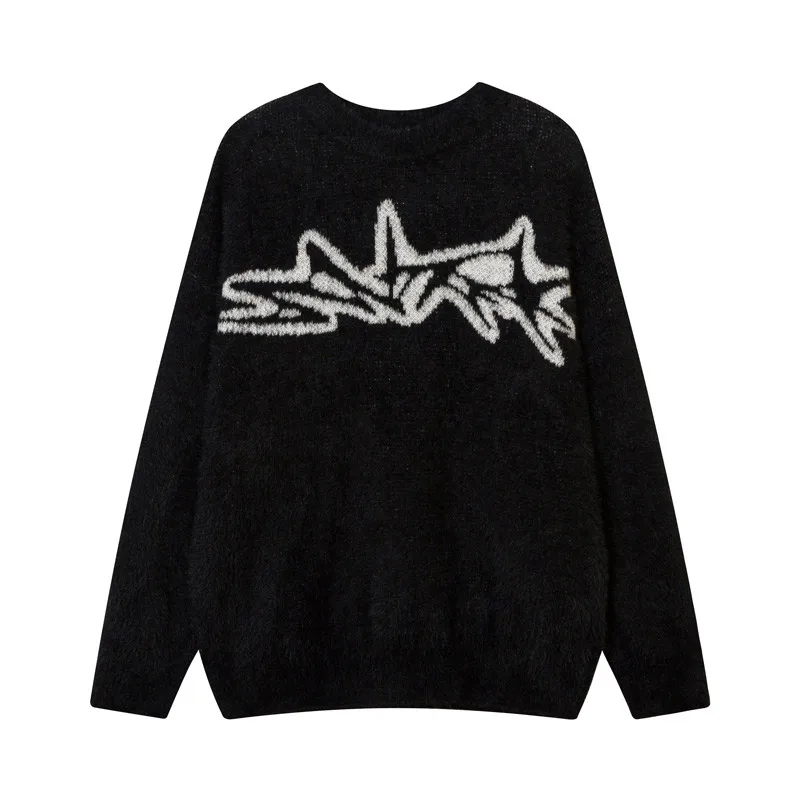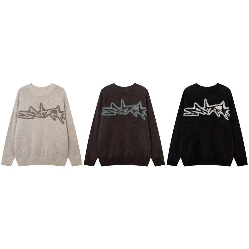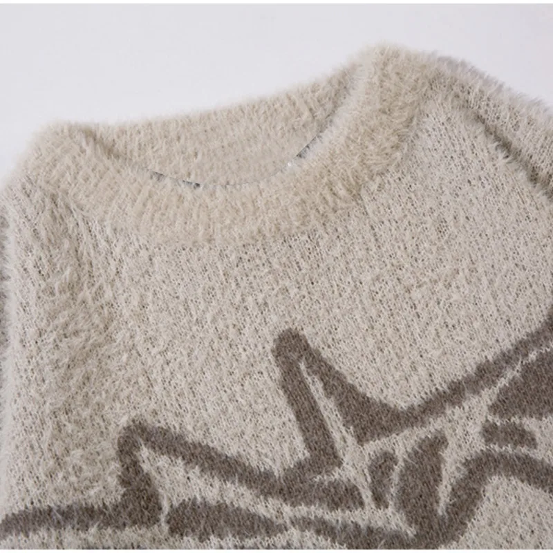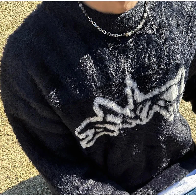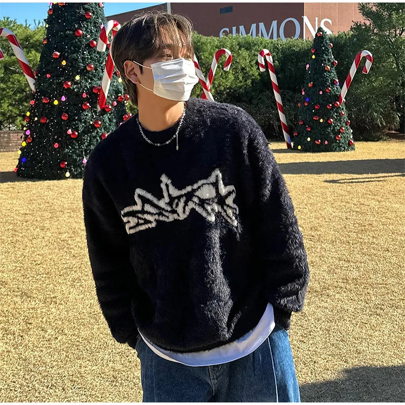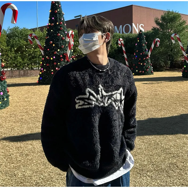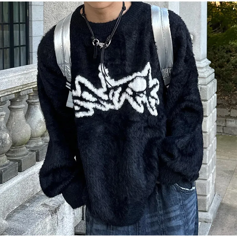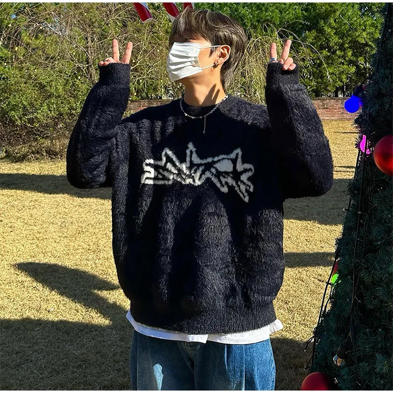 Wiaofellas - Fashion Retro Letter Jacquard Cashmere Sweater Men's Long Sleeve Knitwear Male Autumn Street Hip Hop Knitted Pullover Jumper