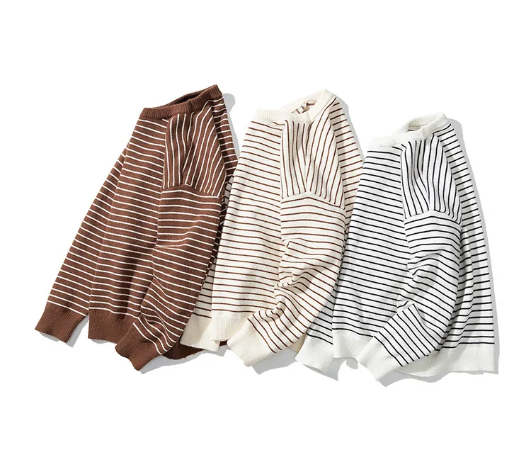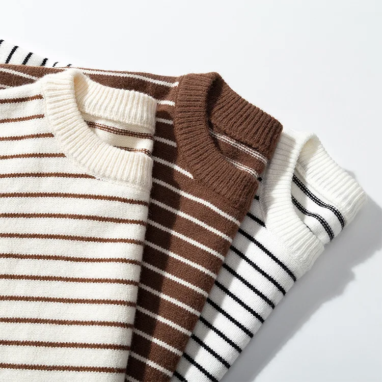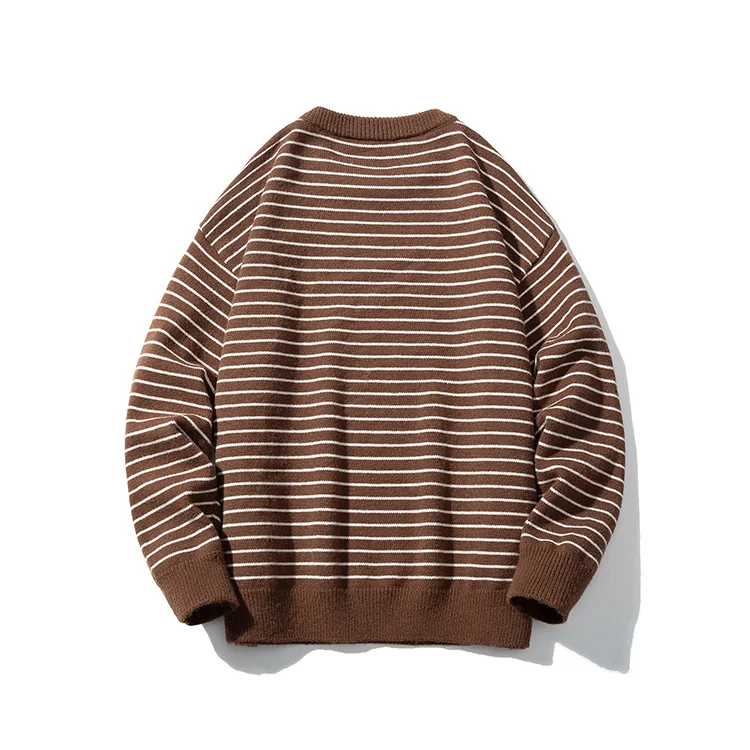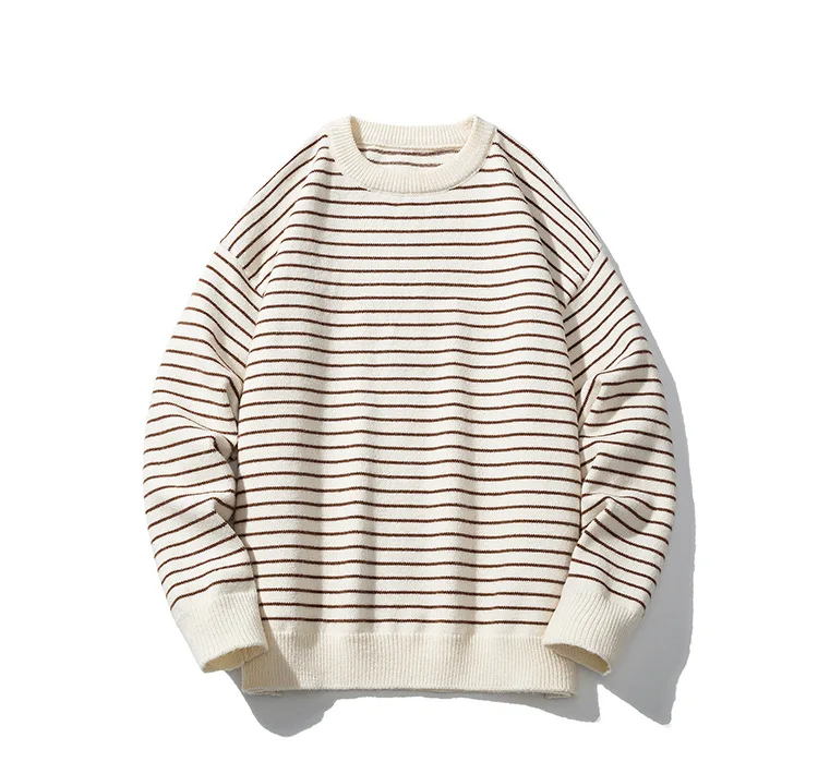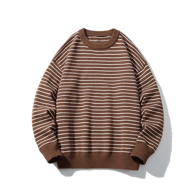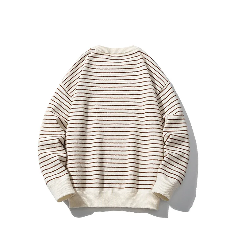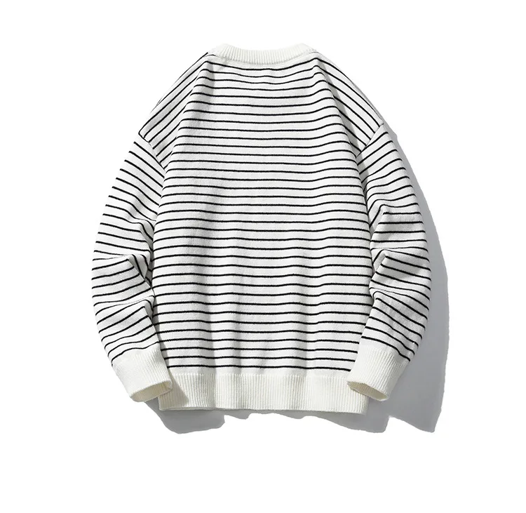 Wiaofellas - Men Striped Sweaters Men Autumn Oversized Fashion O-Neck Knitted Spliced Sweater Male Casual Korean Pullovers M-5XL