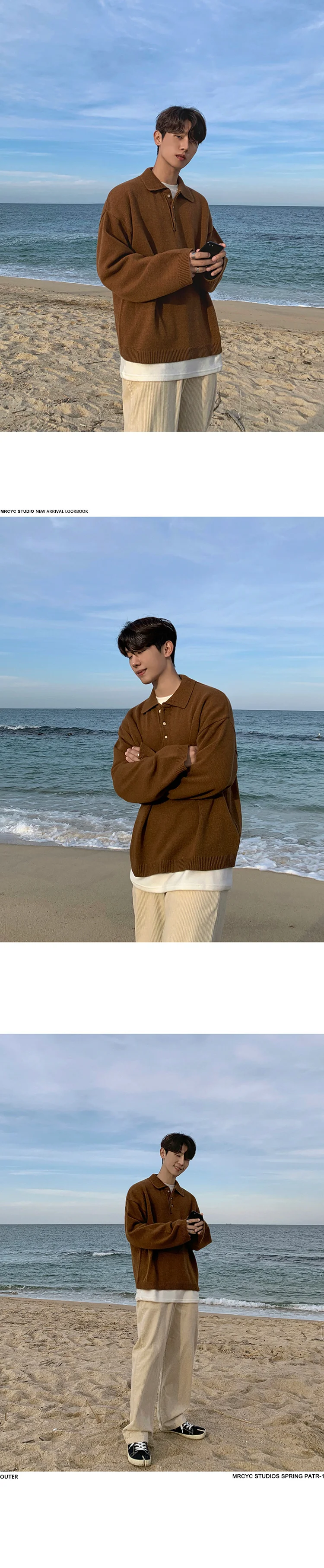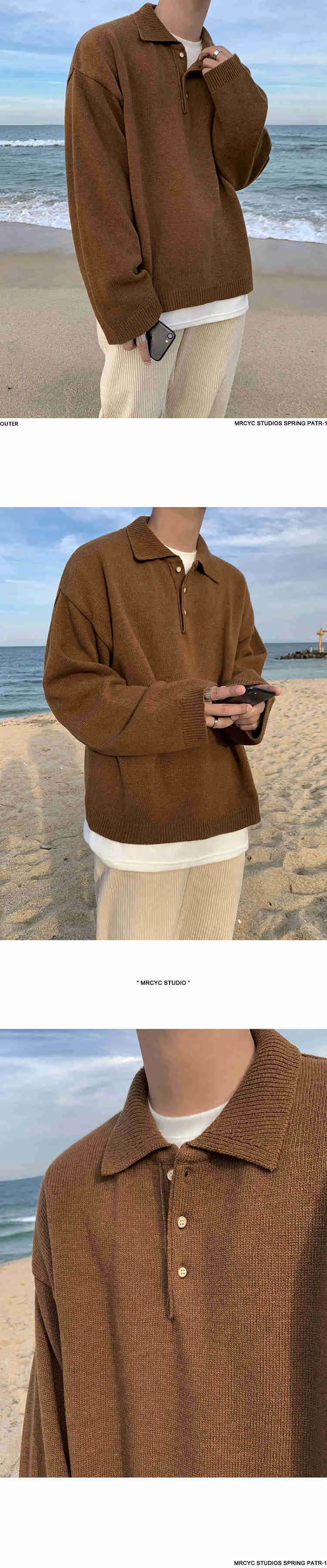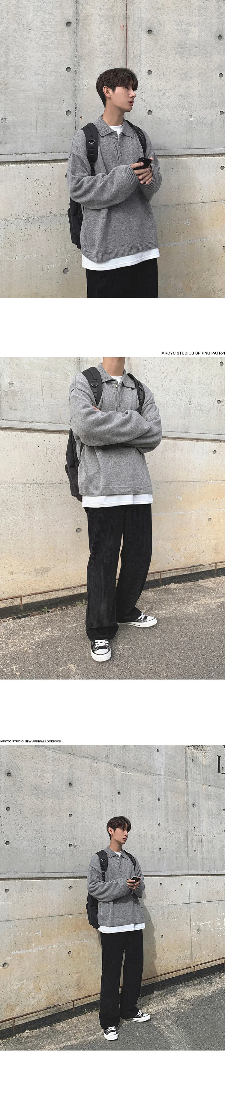 Wiaofellas - Style Korean Autumn Winter Fashion Simple Solid Color Knitting Pullovers Men's New Loose Lapel Thickened Sweater Tide