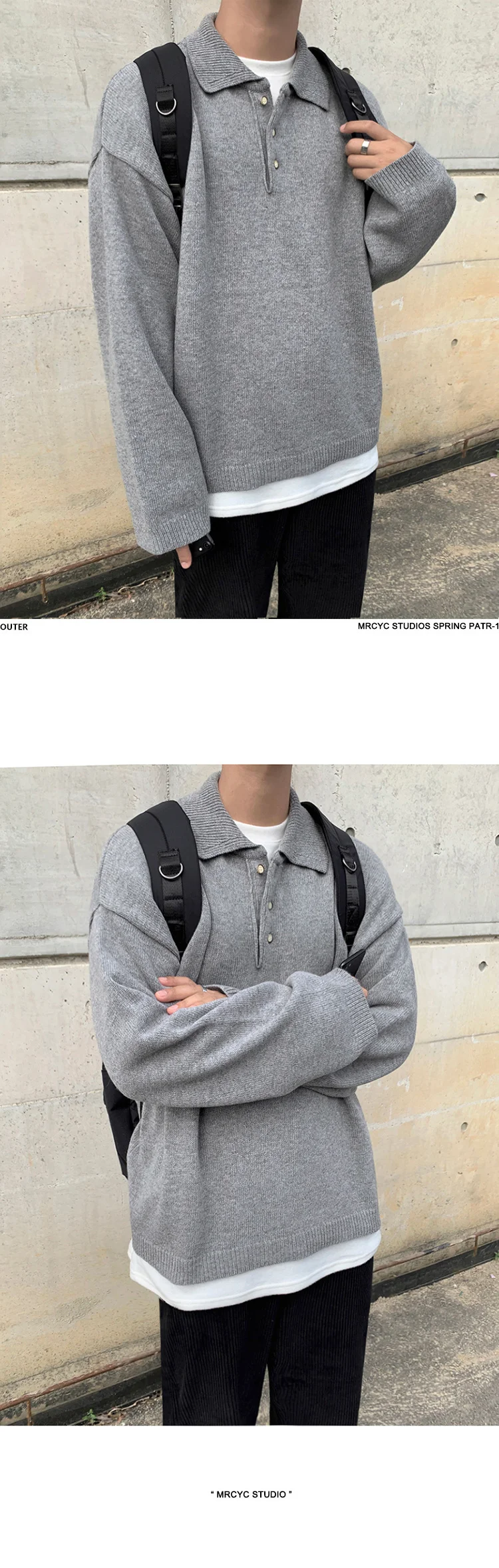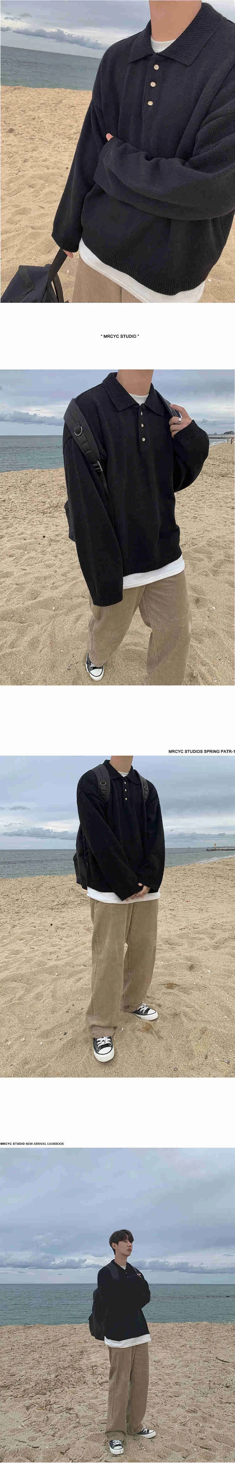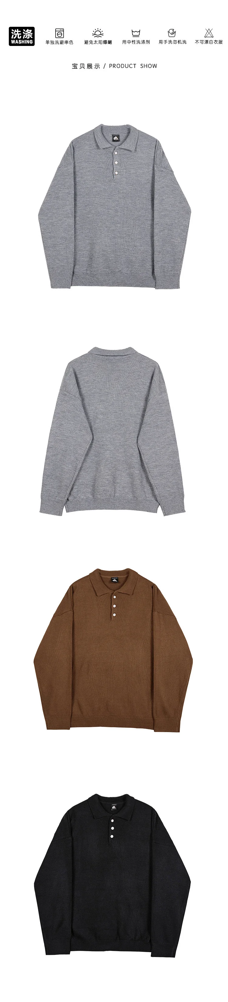 Wiaofellas  -  Style Korean Autumn Winter Fashion Simple Solid Color Knitting Pullovers Men's New Loose Lapel Thickened Sweater TideSIZE (Unit: CM)