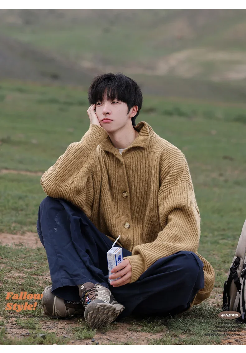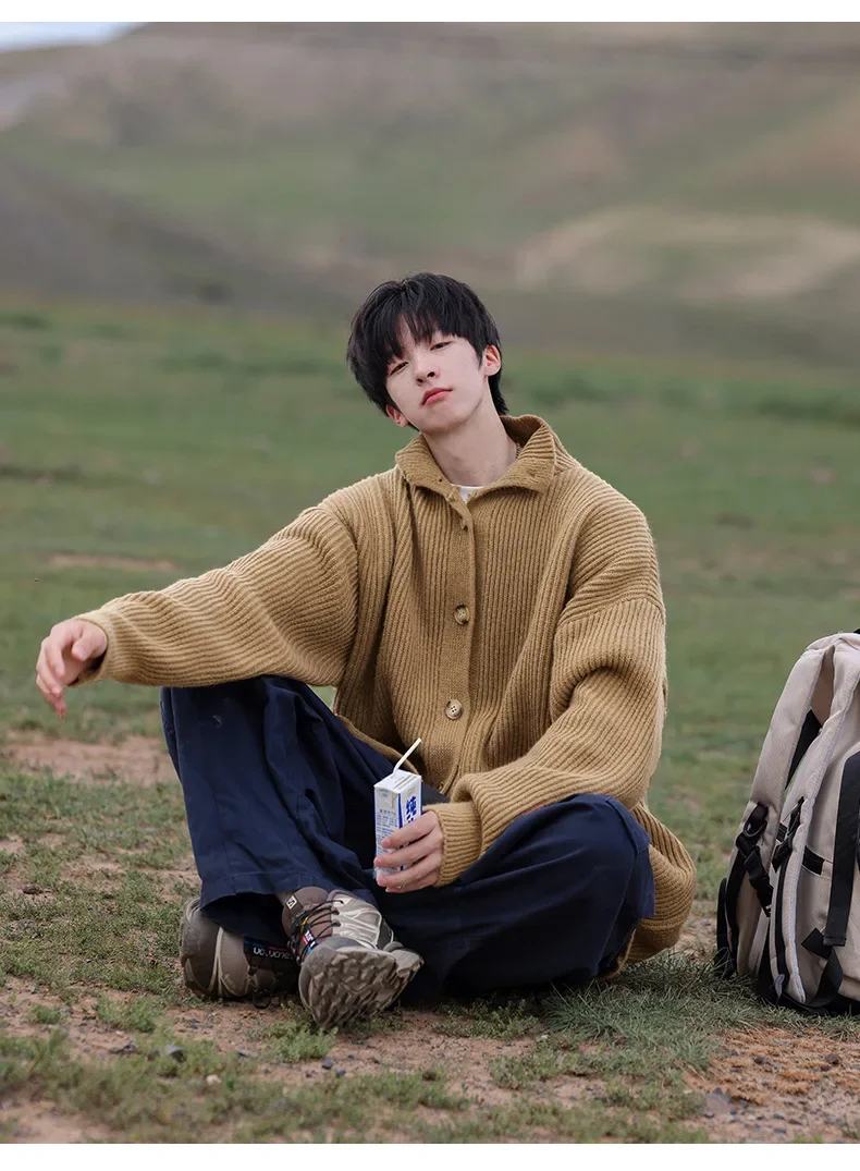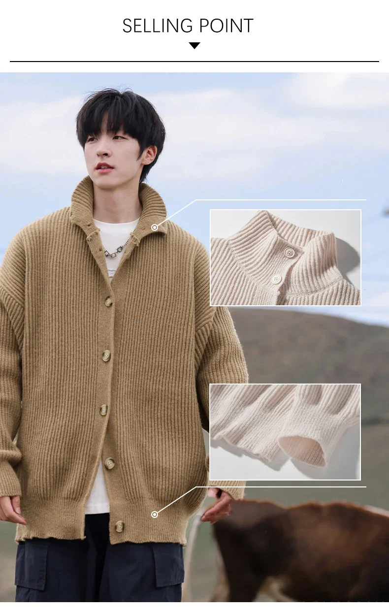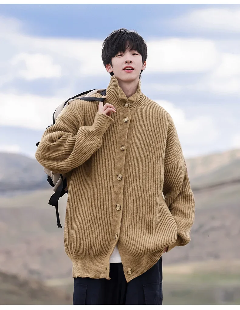 Wiaofellas - Brand High Collar Cardigan Man Sweaters Autumn Winter New Baggy Casual Knitwear for Mens Warm Tourism Coat Male