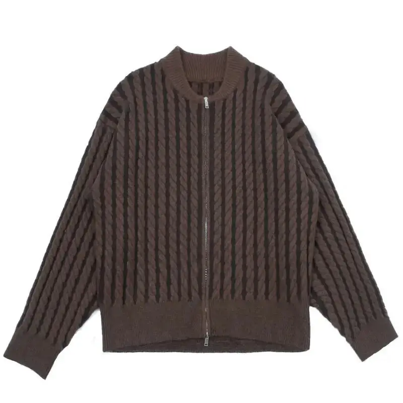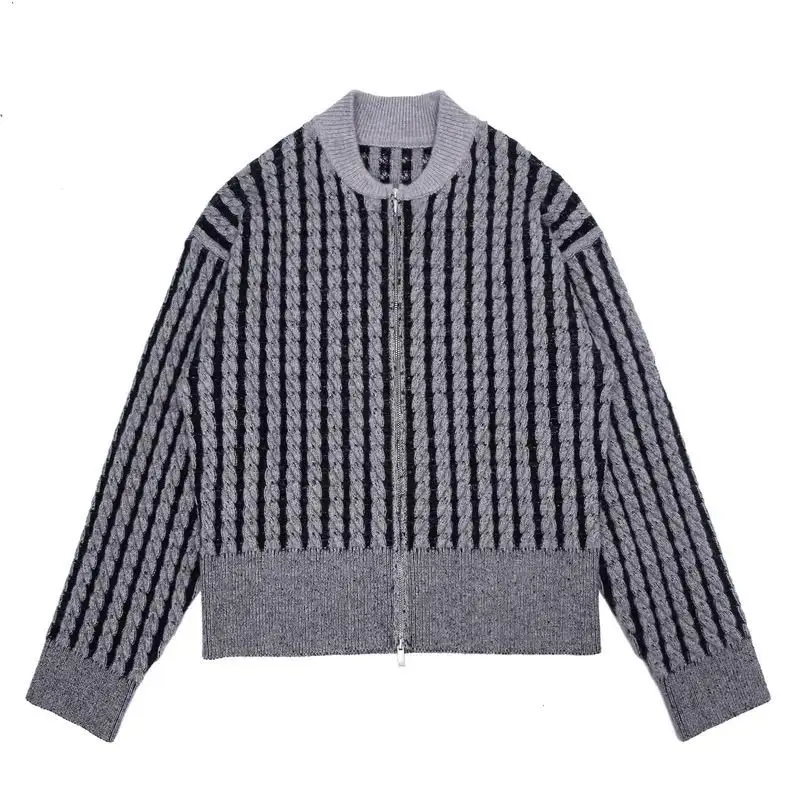 WIAOFELLAS - American Retro Contrasting Striped Twisted Zipper Cardigan Knit Sweater Jacket Men and Women Casual Versatile Tops