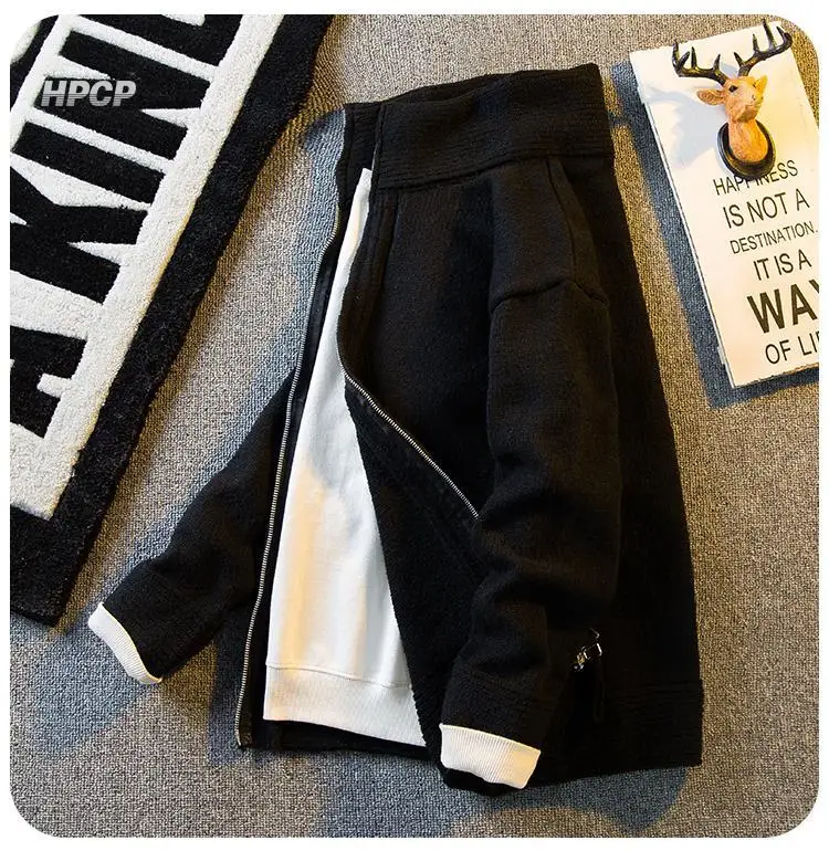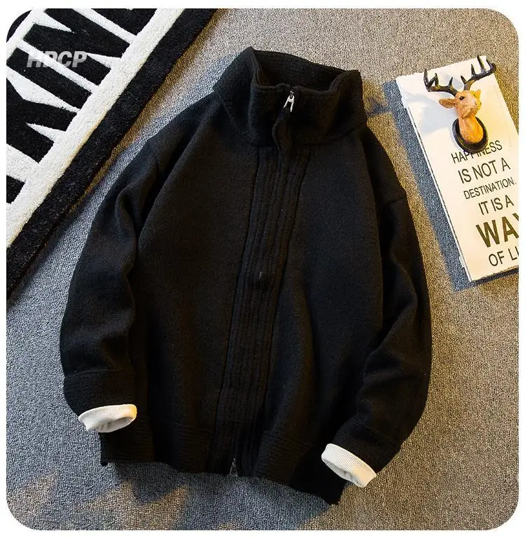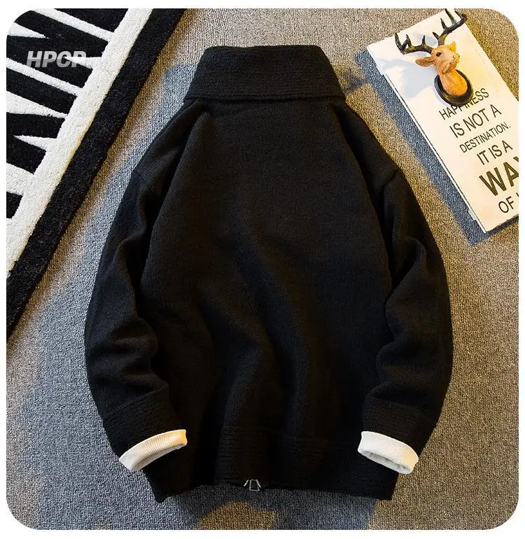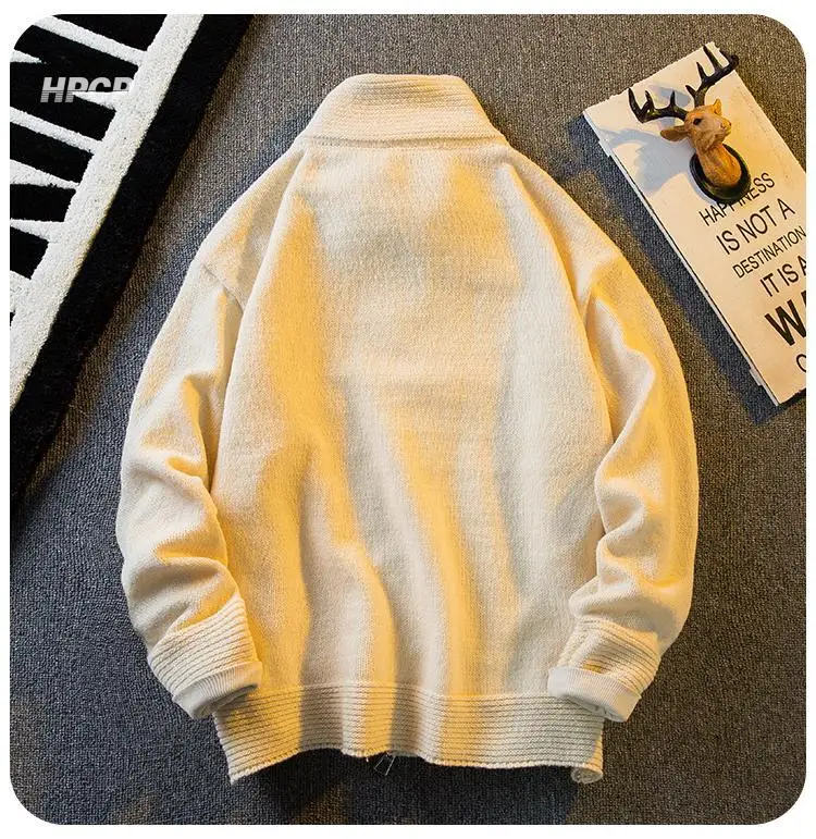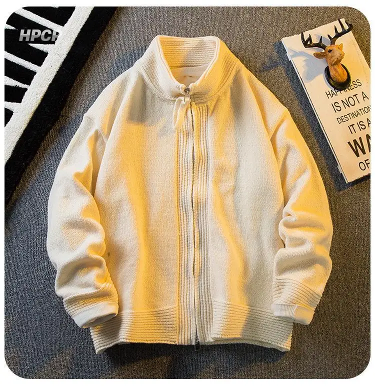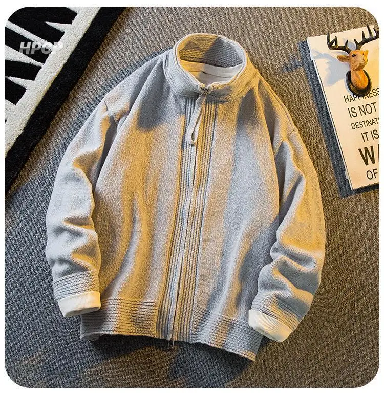 WIAOFELLAS - American Stand-up Collar Vintage Knitted Cardigan Men Casual Loose High Street Personalized Zipper Jacket Sweaters Male Clothes