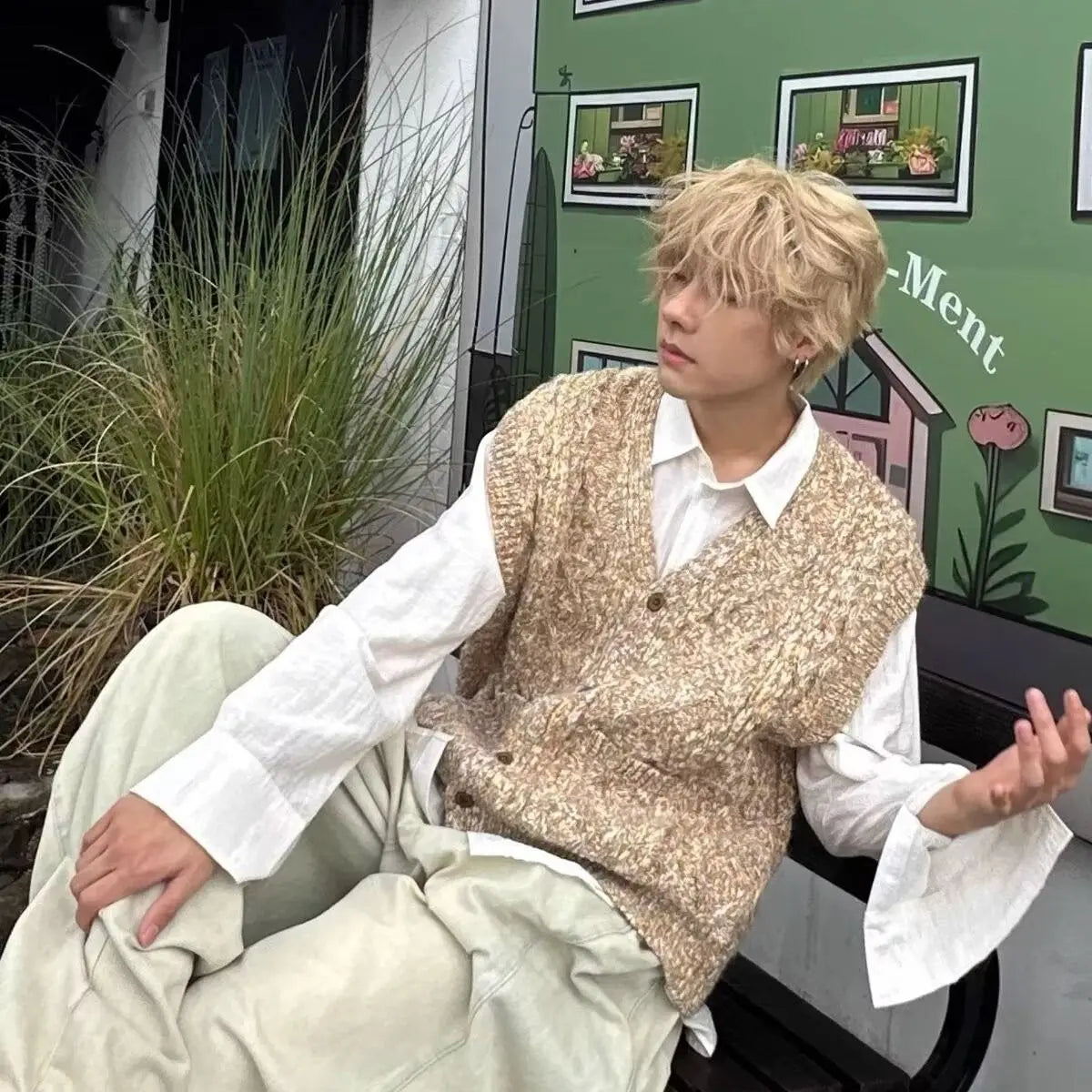 WIAOFELLAS - Autumn and winter American retro niche vest lazy men and women sleeveless loose knitted versatile sweater cardigan vest