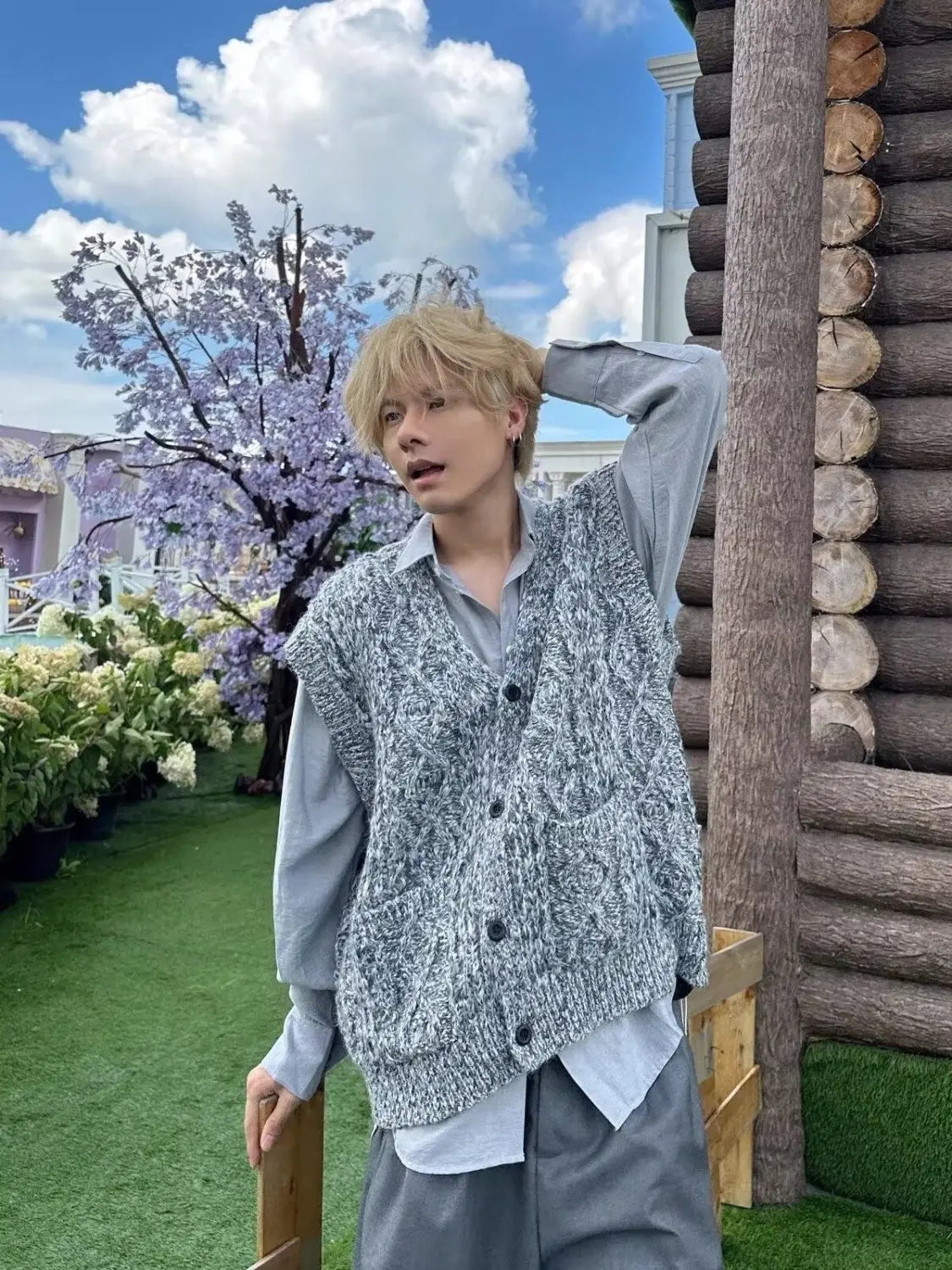 WIAOFELLAS  -  Autumn and winter American retro niche vest lazy men and women sleeveless loose knitted versatile sweater cardigan vest