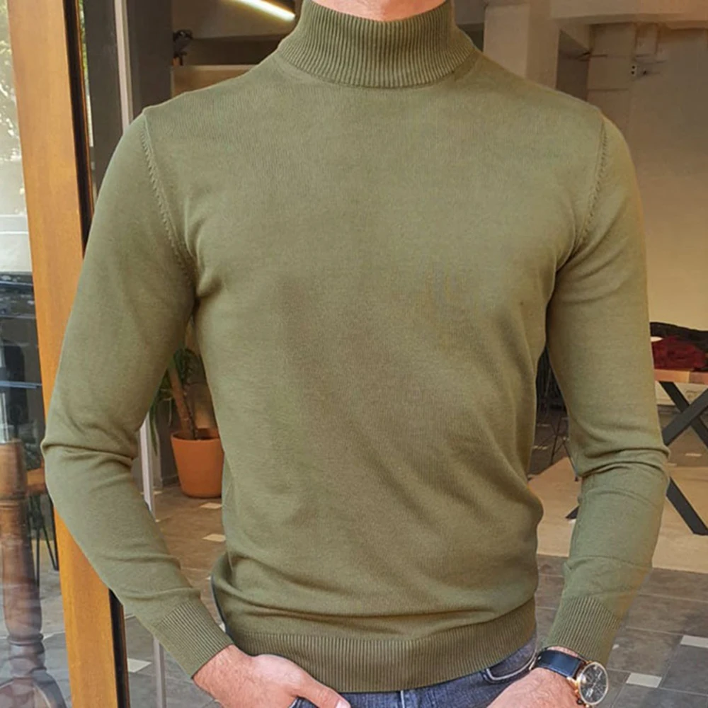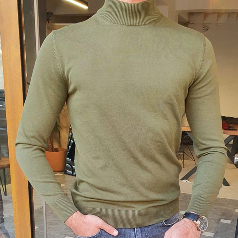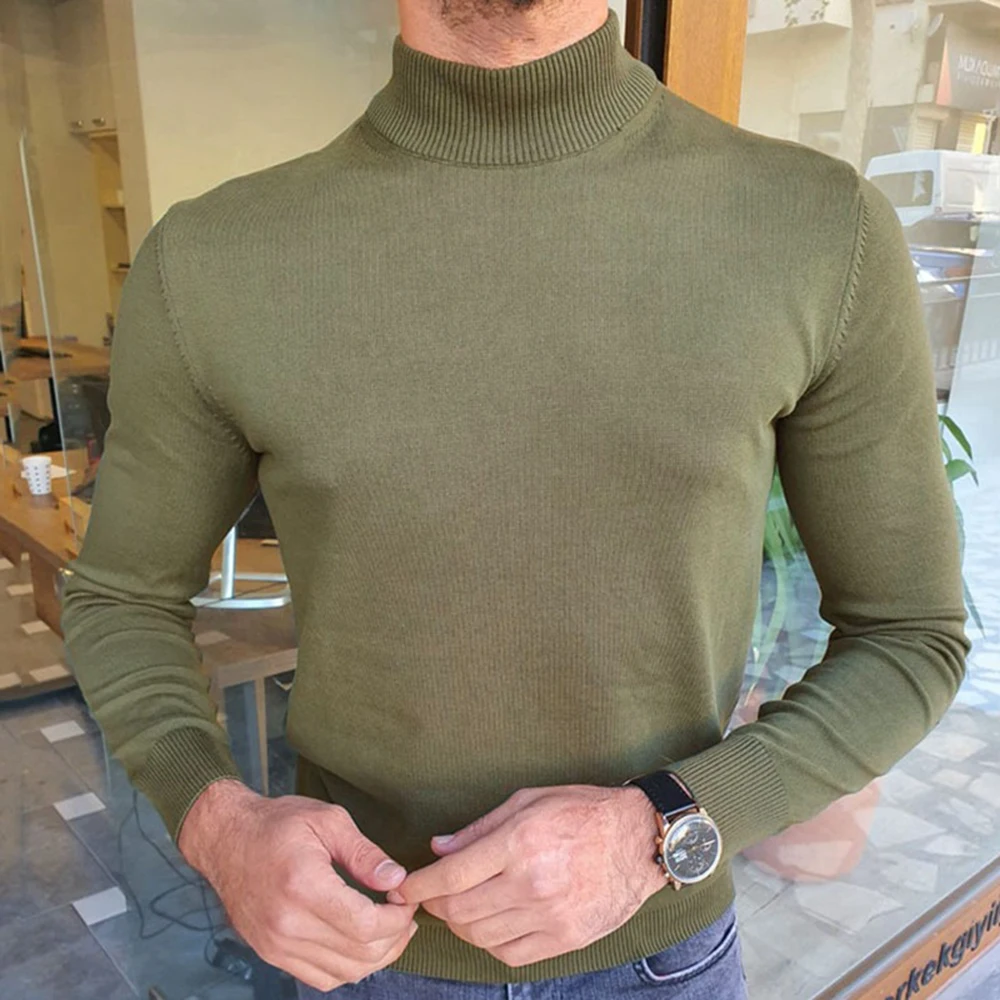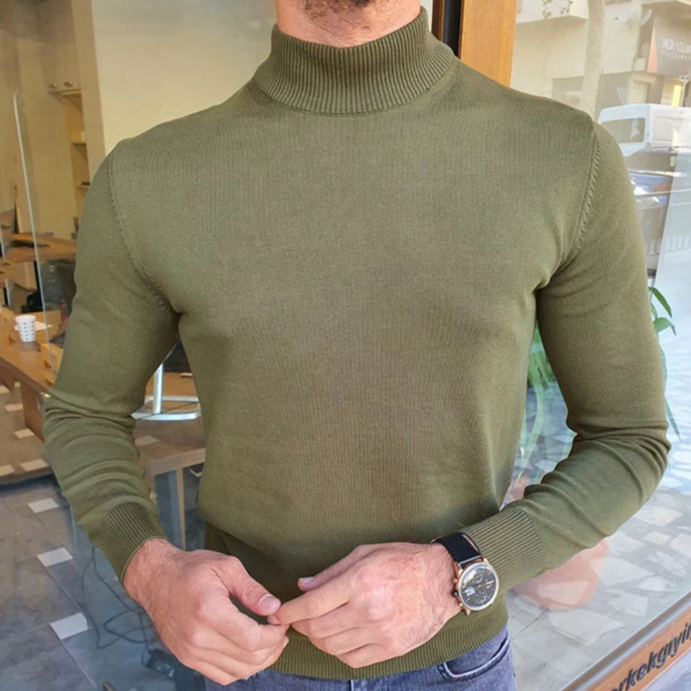 Wiaofellas  -  Autumn And Winter Fashion New Retro Solid Color Turtleneck Bottoming Sweater T-Shirt Long-Sleeved Slim Thin Sweater For Men
