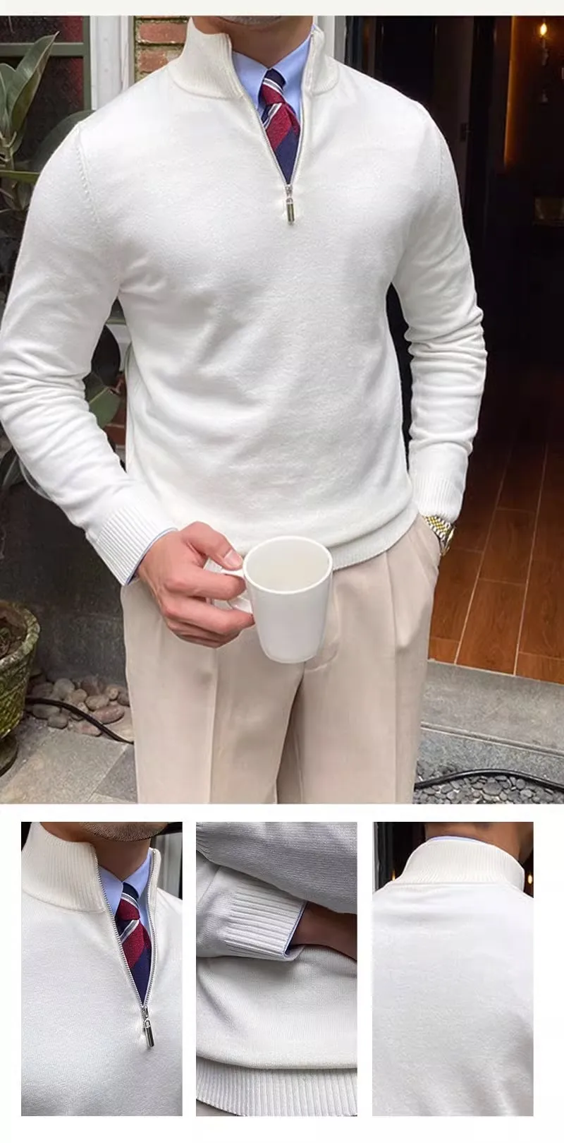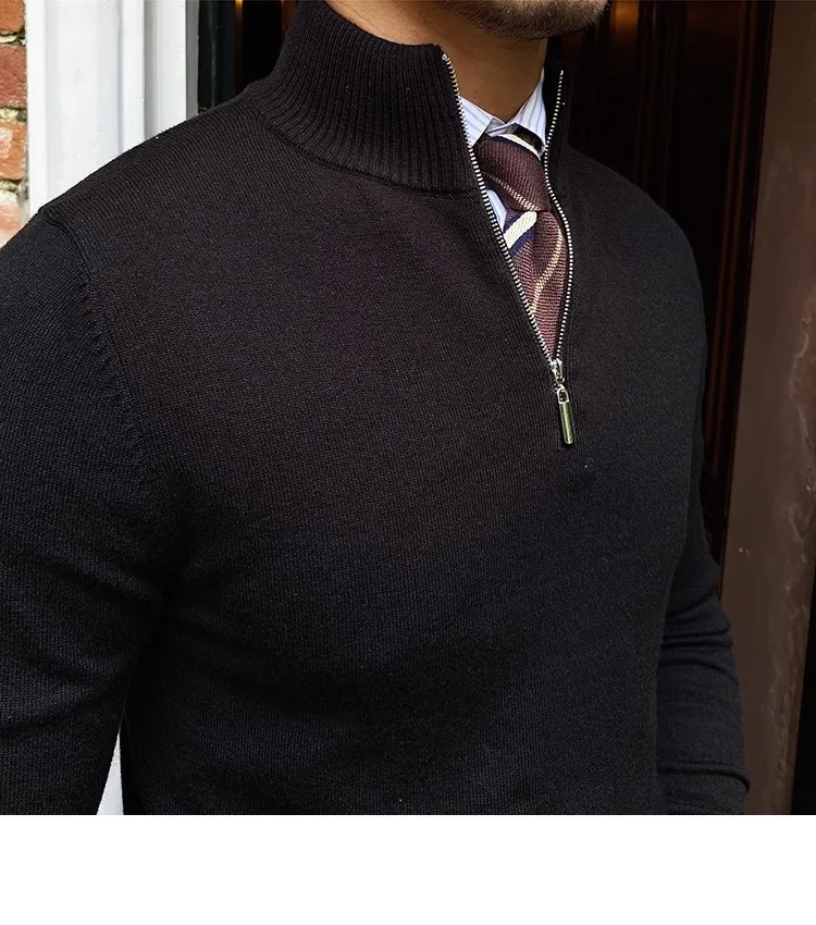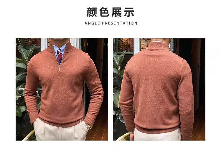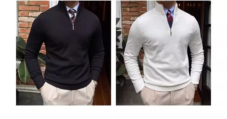 WIAOFELLAS - Autumn and Winter Hot Men's Stand-up Collar Zipper Long-sleeved Sweater New Slim Pullover Base Sweater Outer Top