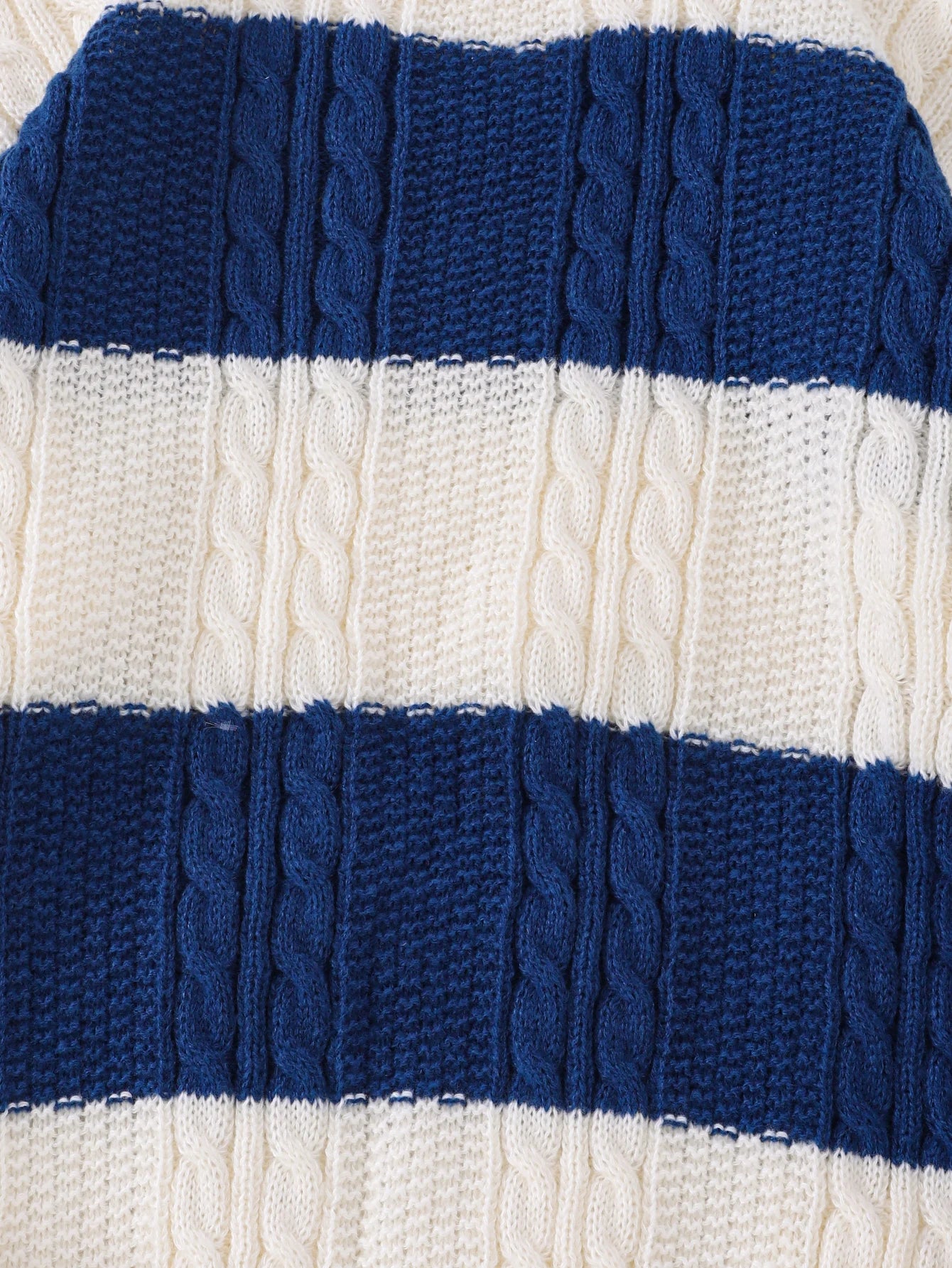 WIAOFELLAS - Autumn and Winter Striped Crew Neck Hemp Straw Style Casual Couple Sweater Versatile Trendy Men's Long-Sleeve Sweater Top