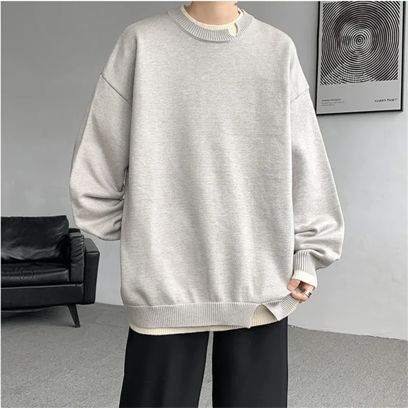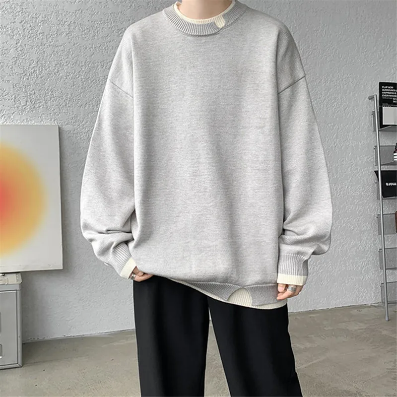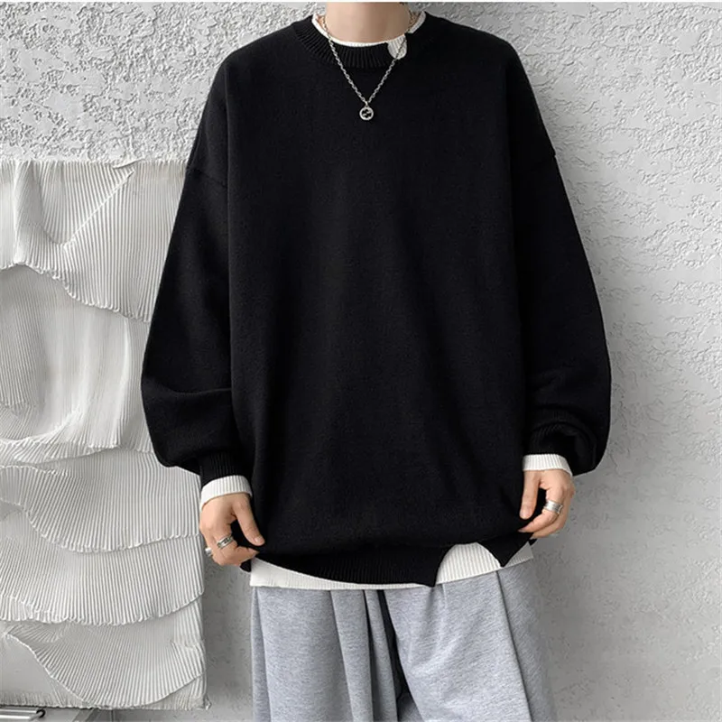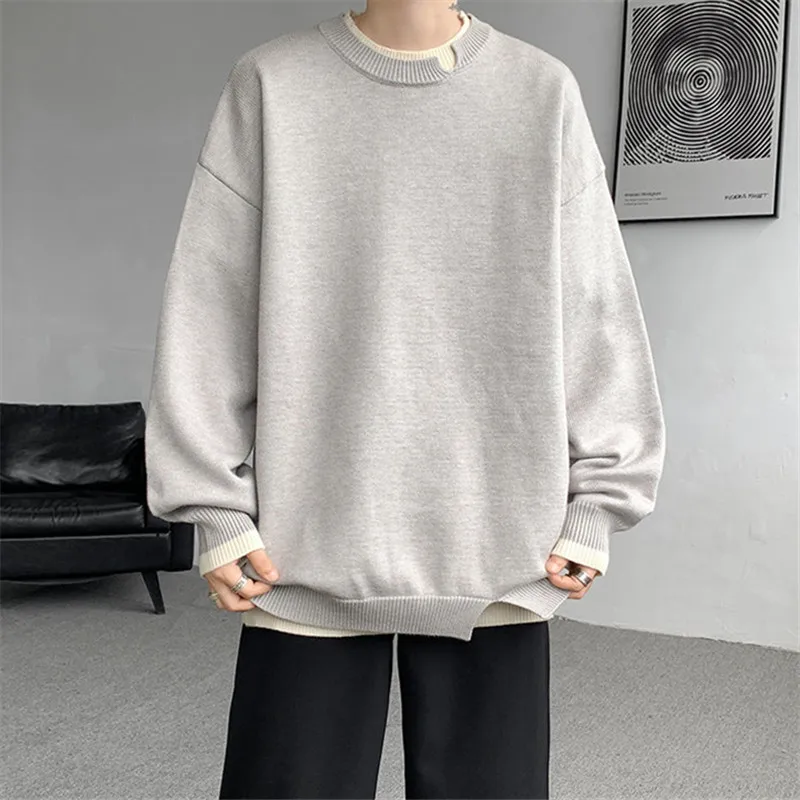 WIAOFELLAS - Autumn Winter Fake two sweaters Men Vintage Loose Casual Pullovers Male Solid Knitting Sweaters Streetwear Knit Pullovers 8XL