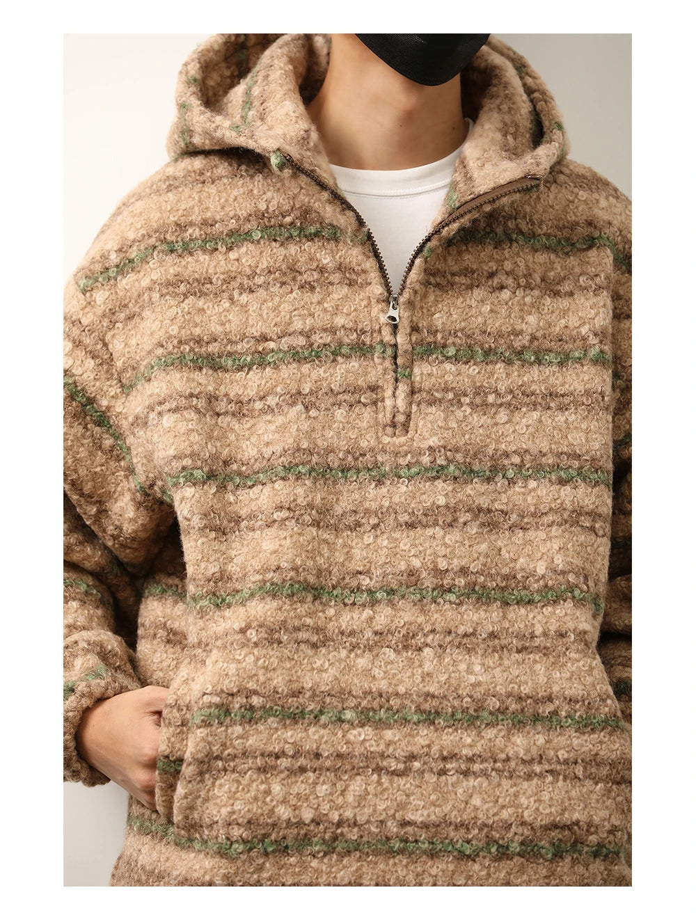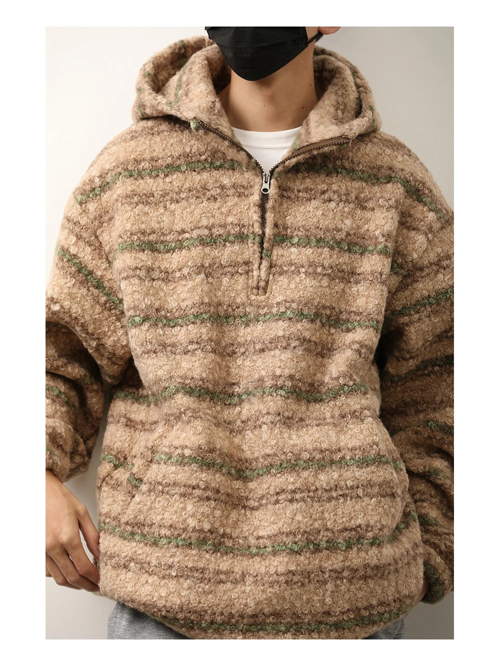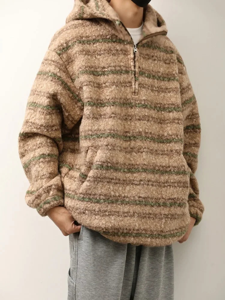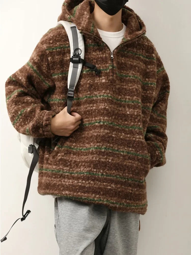 WIAOFELLAS - Autumn Winter Hooded Sweaters for Men Japanese Trendy Loose Casual Thickened Striped Pullover Harajukuhigh Street Long Sleeved