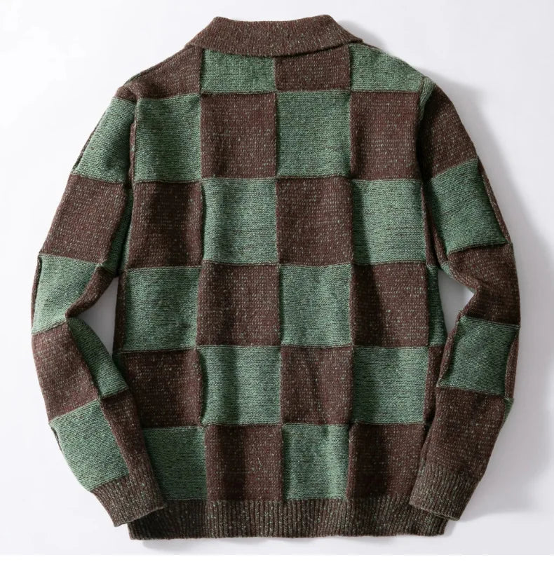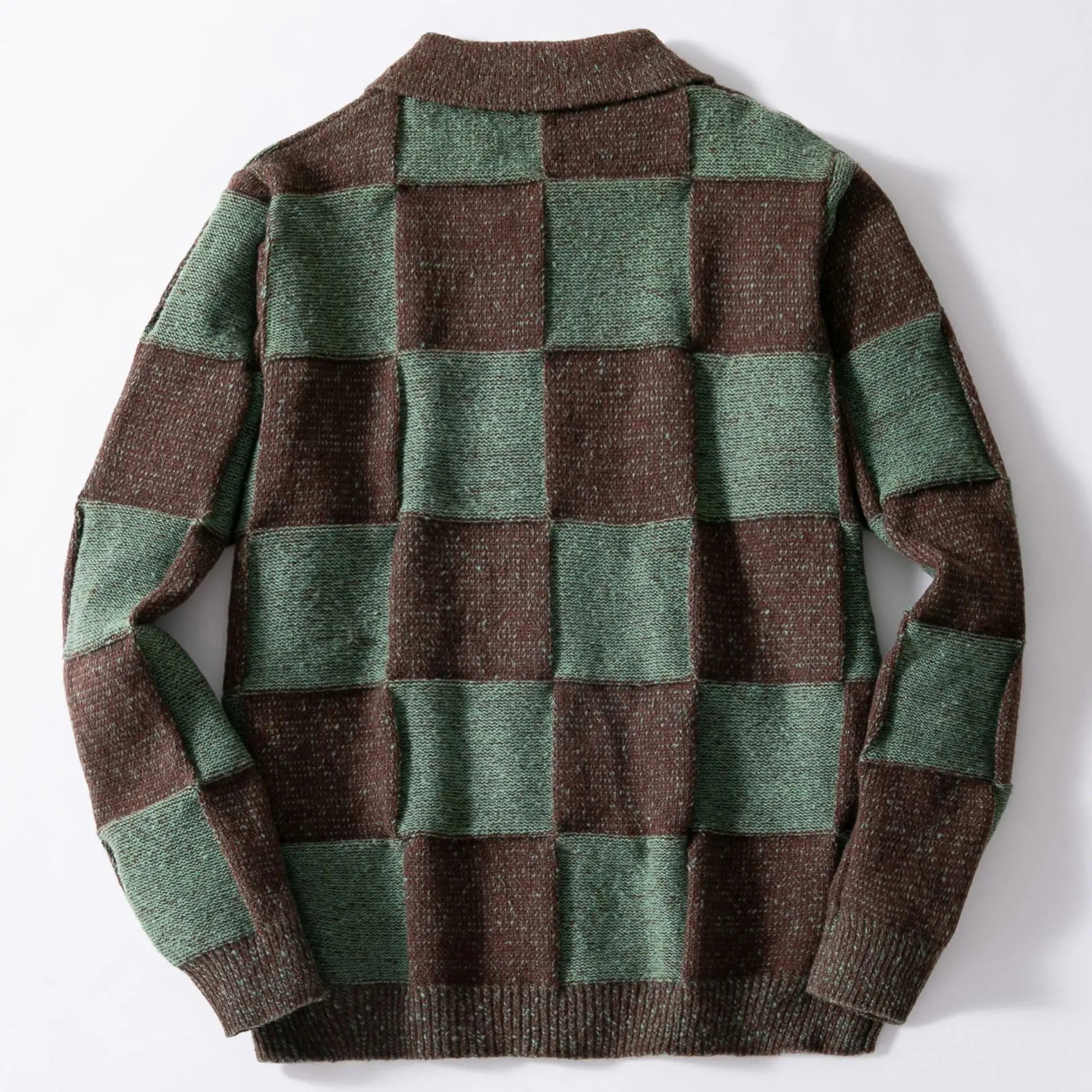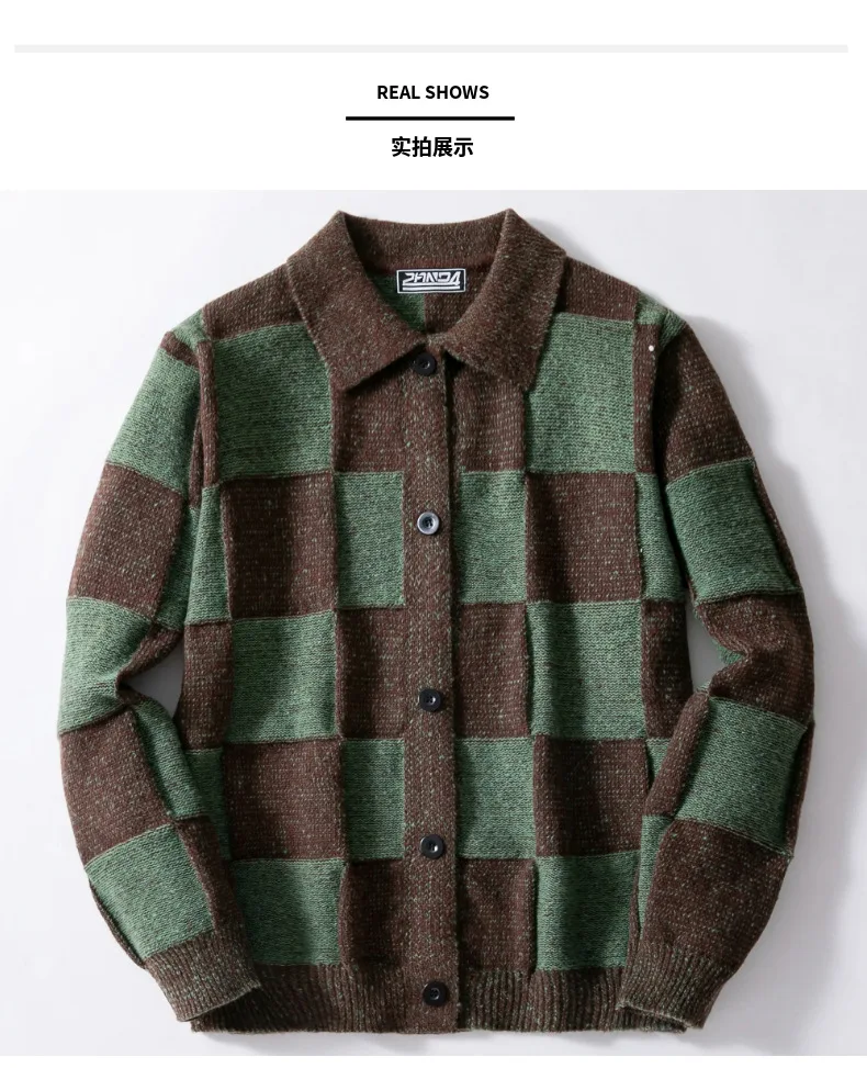 WIAOFELLAS  -  Autumn Winter New Fashion Men's Casual Trendy Turn-down Collar Long Sleeve Single-breasted Loose Plaid Knitted Sweater Coats