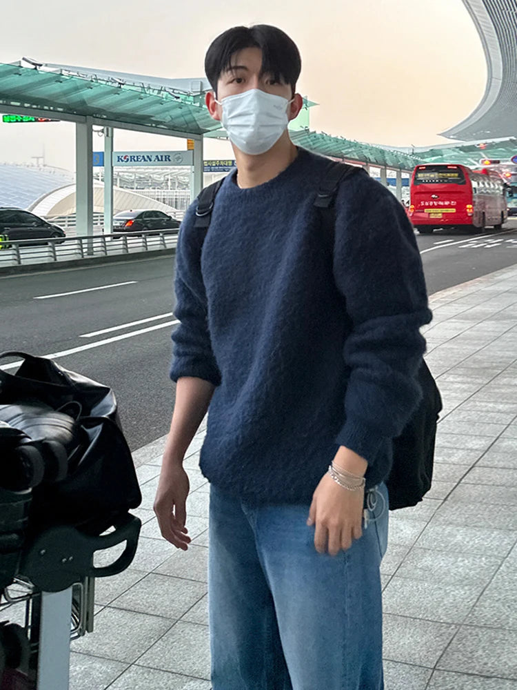 WIAOFELLAS - Autumn Winter Stretch Jacquard Knitwear O-Neck Sweater Men's Loose Long Sleeve Knitted Pullovers Casual Streetwear C42