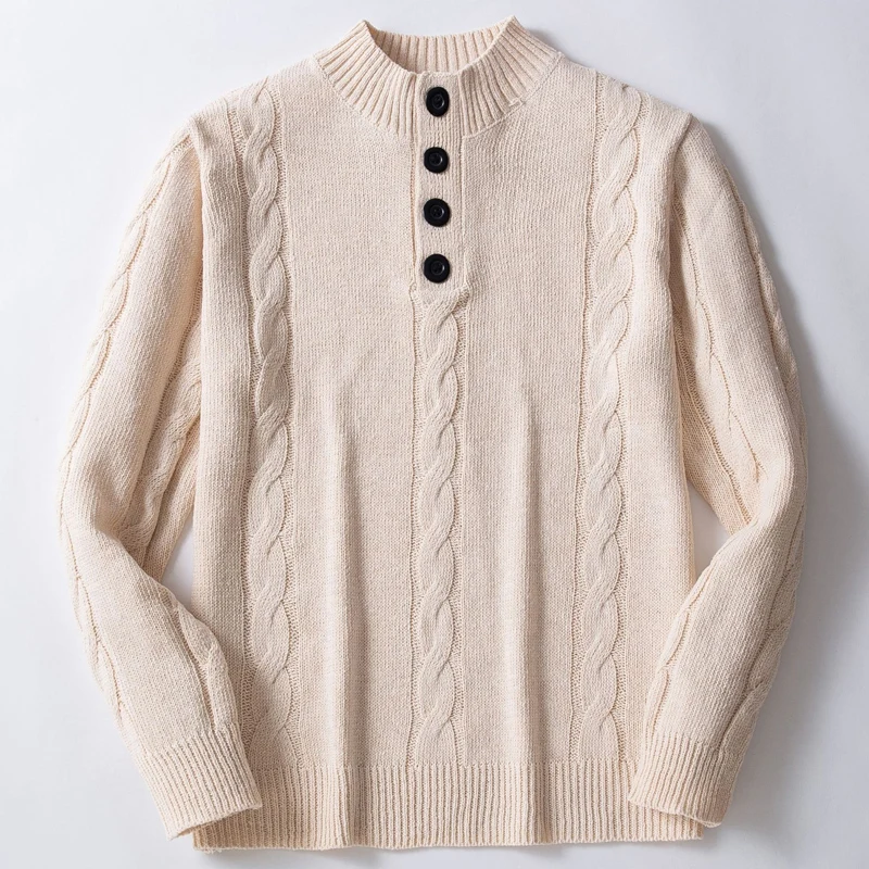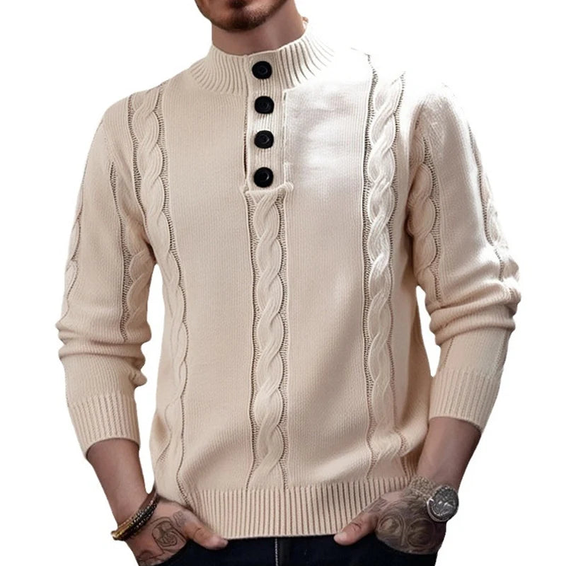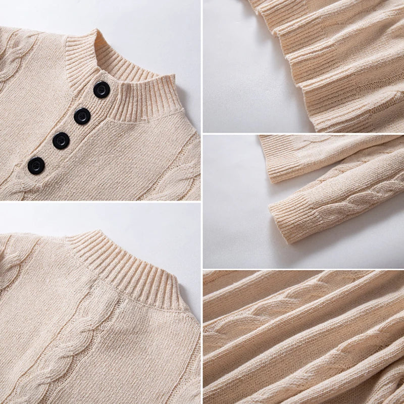 Wiaofellas  -  Casual Buttoned Stand Collar Sweaters Mens Autumn Fashion Solid Color Slim Knitted Jumpers Men Leisure Long Sleeve Sweater Tops