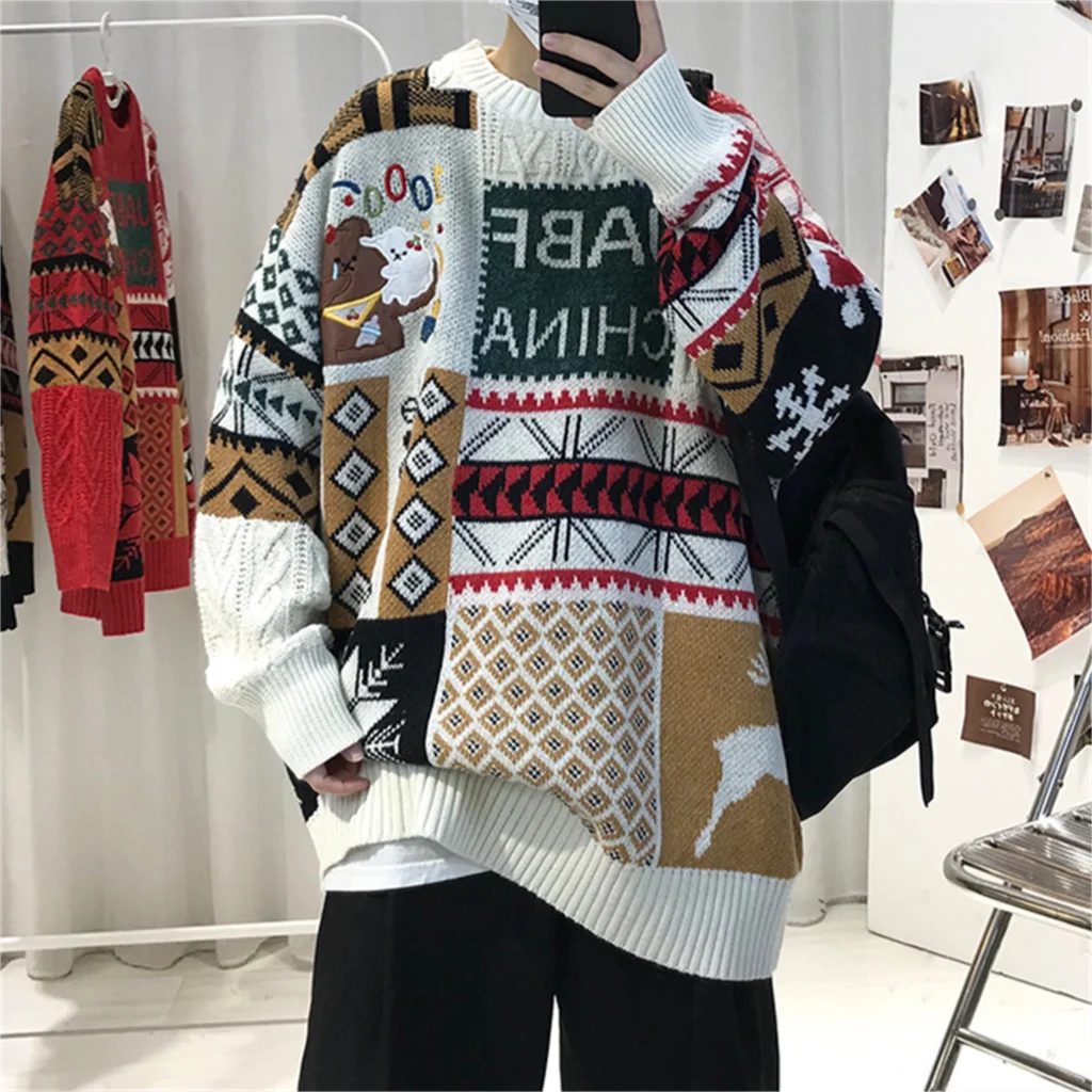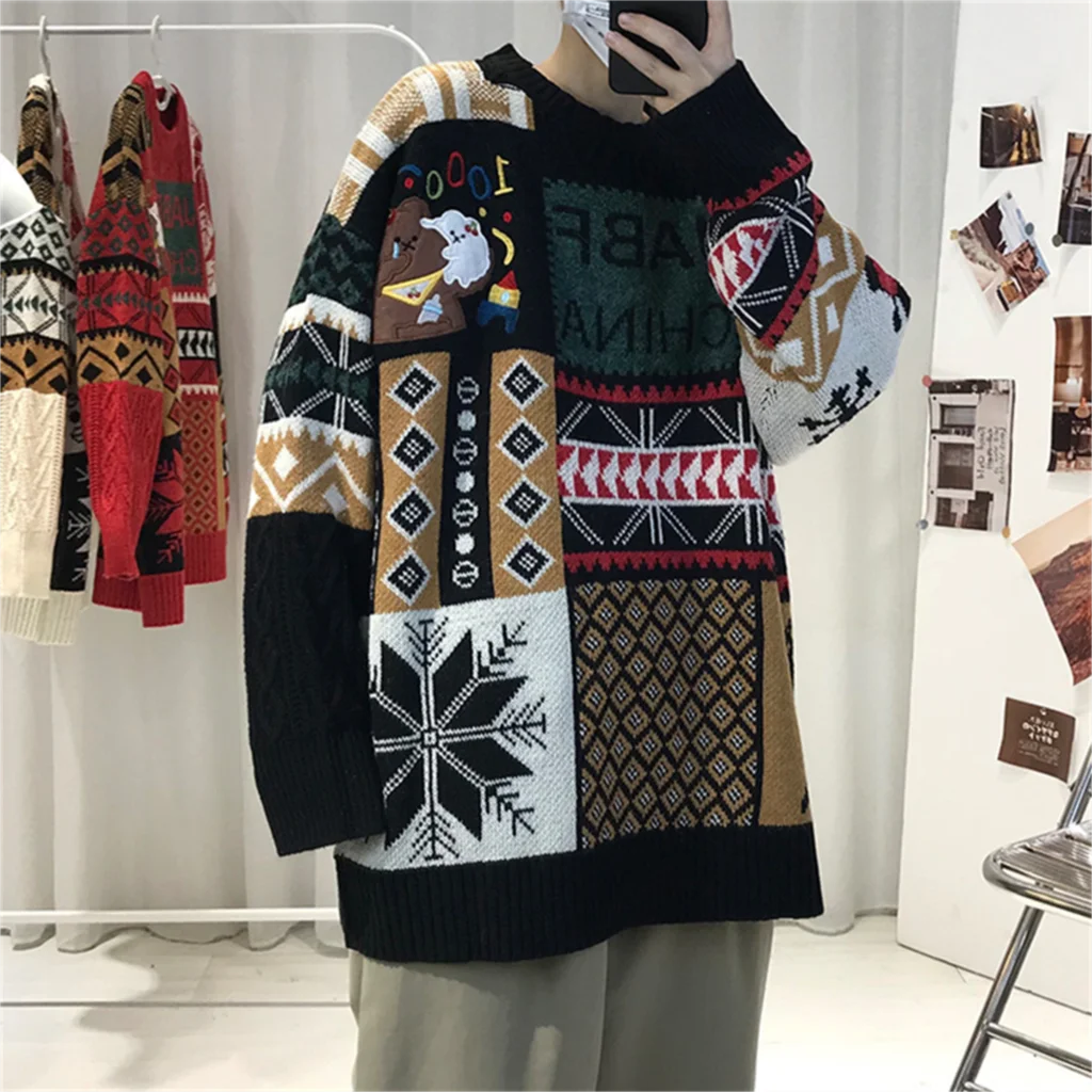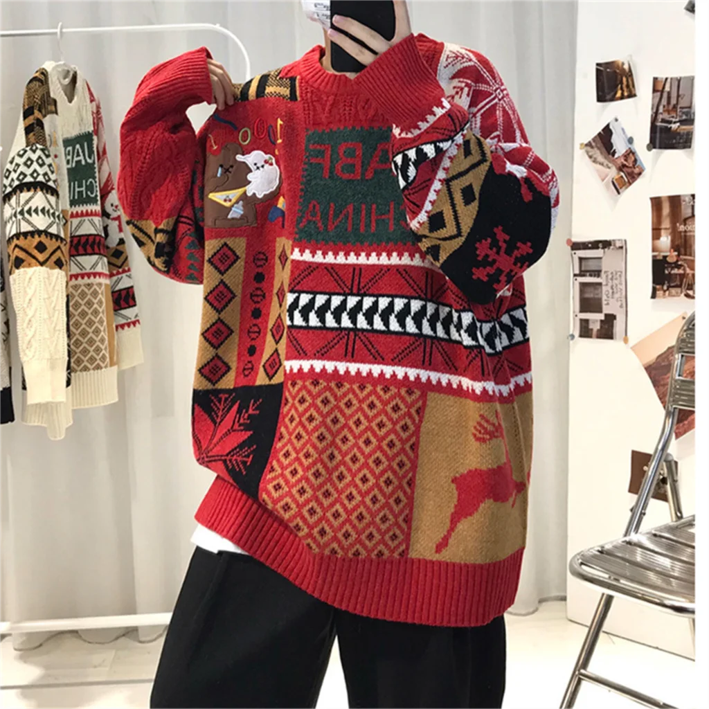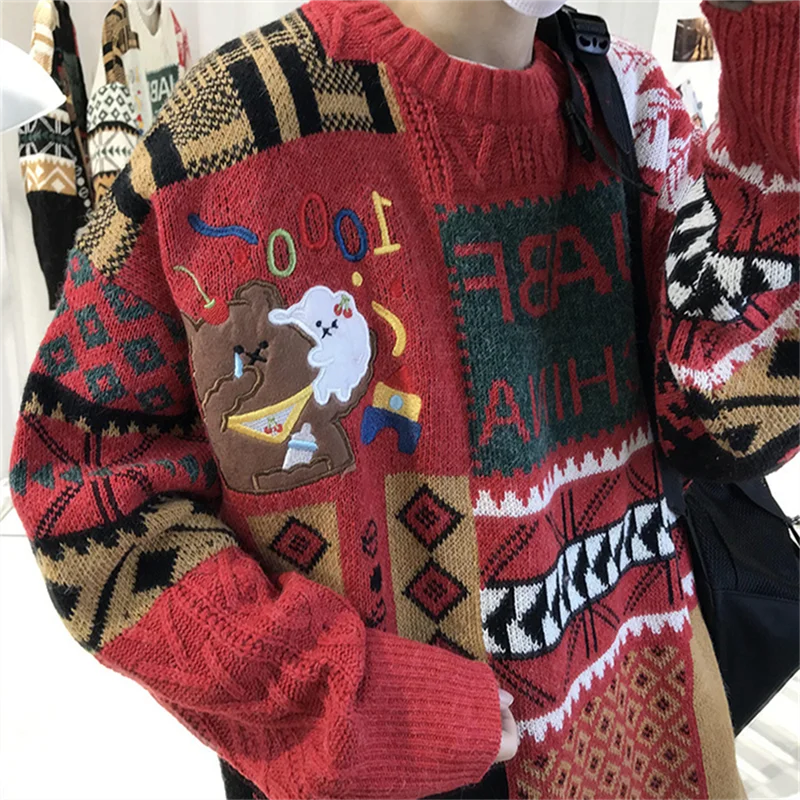 WIAOFELLAS - Christmas Sweater Men Fashion Cartoon Animal Embroidery Pullovers Gengar New Year Streetwear Clothing New Knitted Sweater Unisex