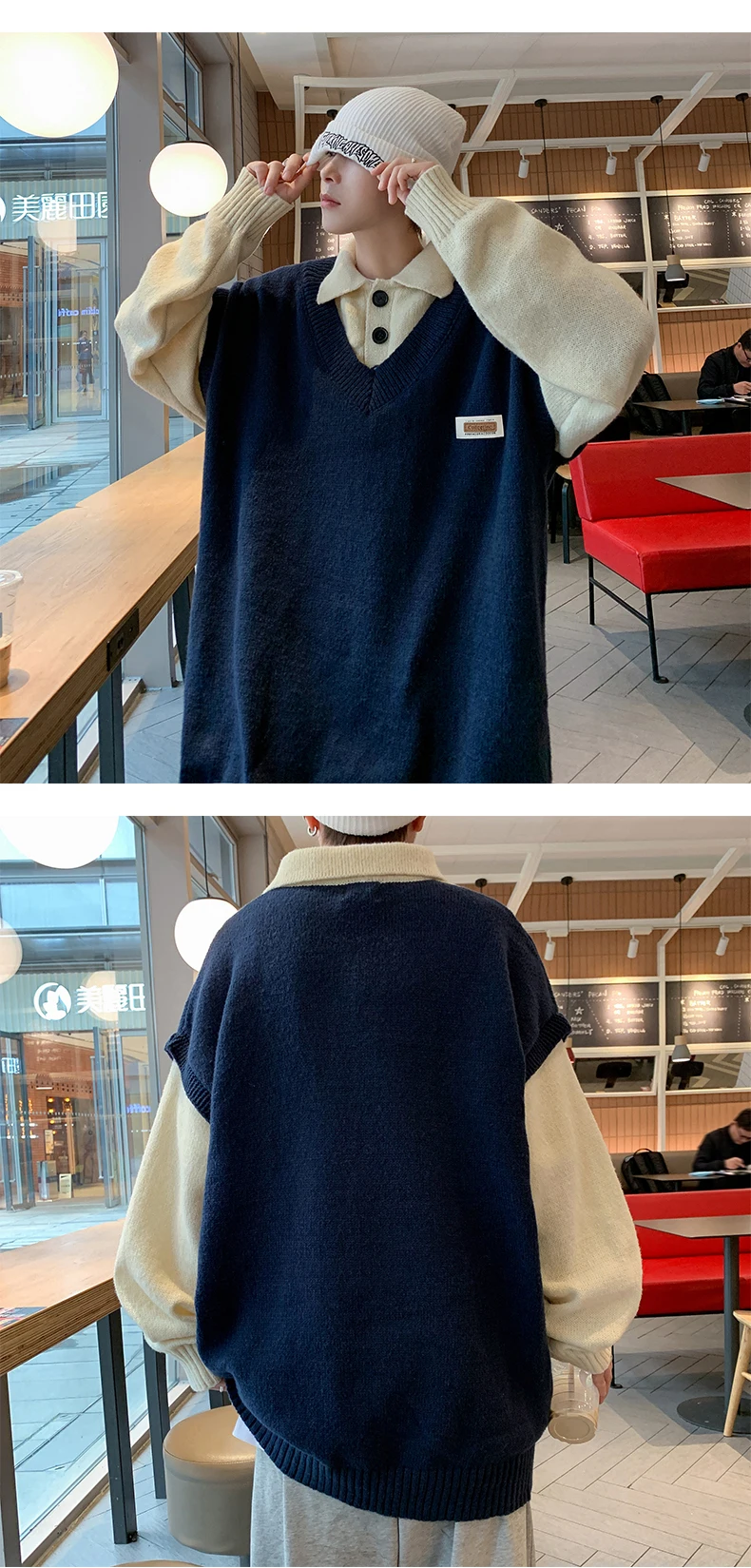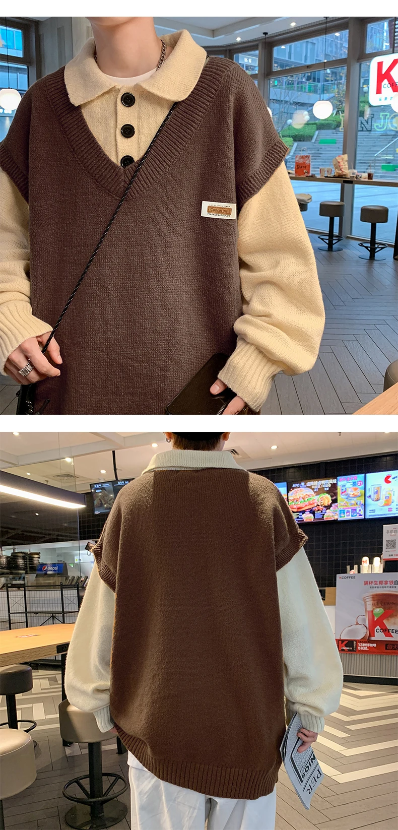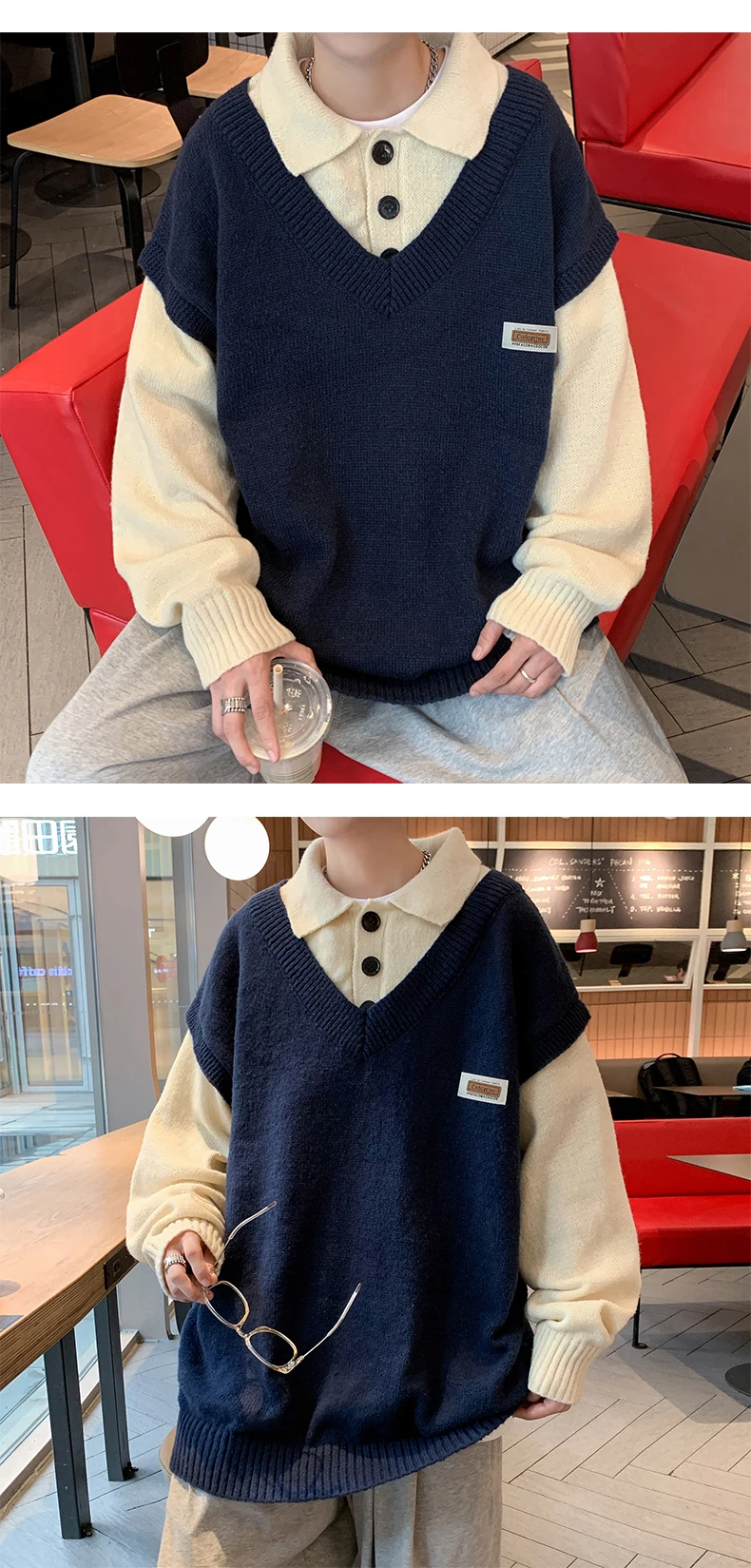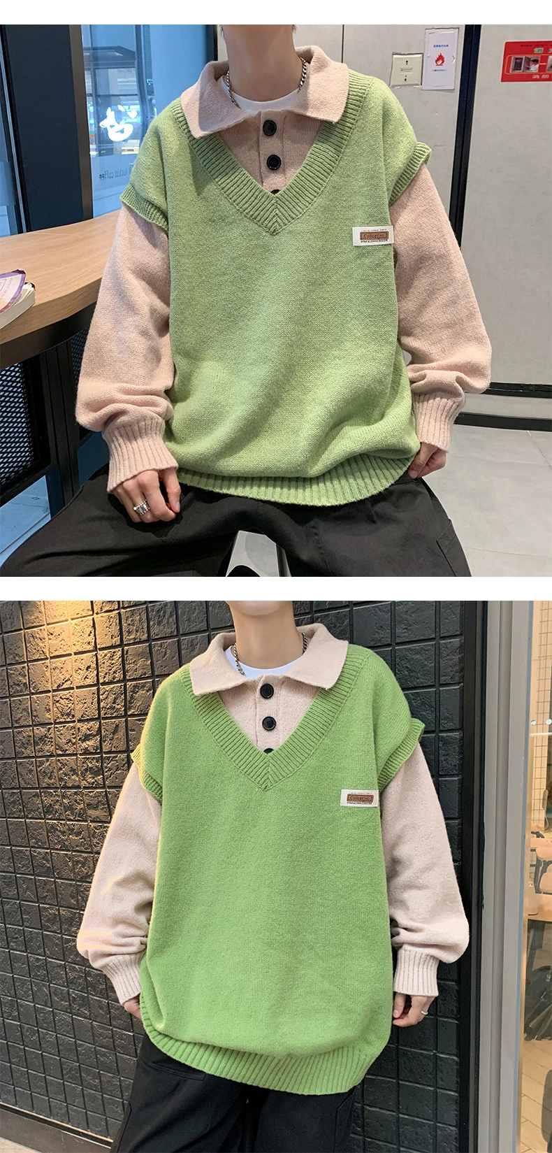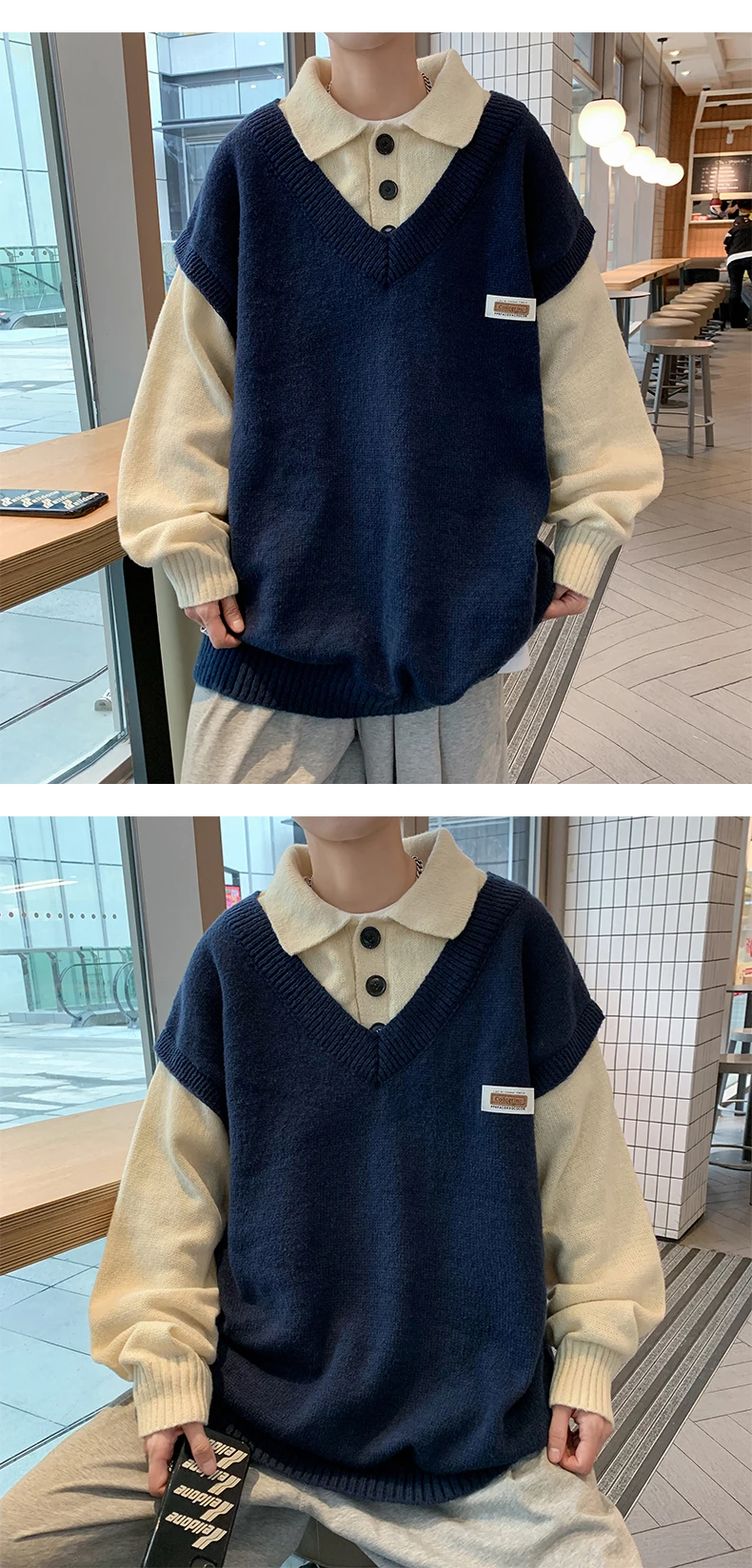 Wiaofellas Fake two collar sweater men winter style lazy coat loose knit in autumn and winter