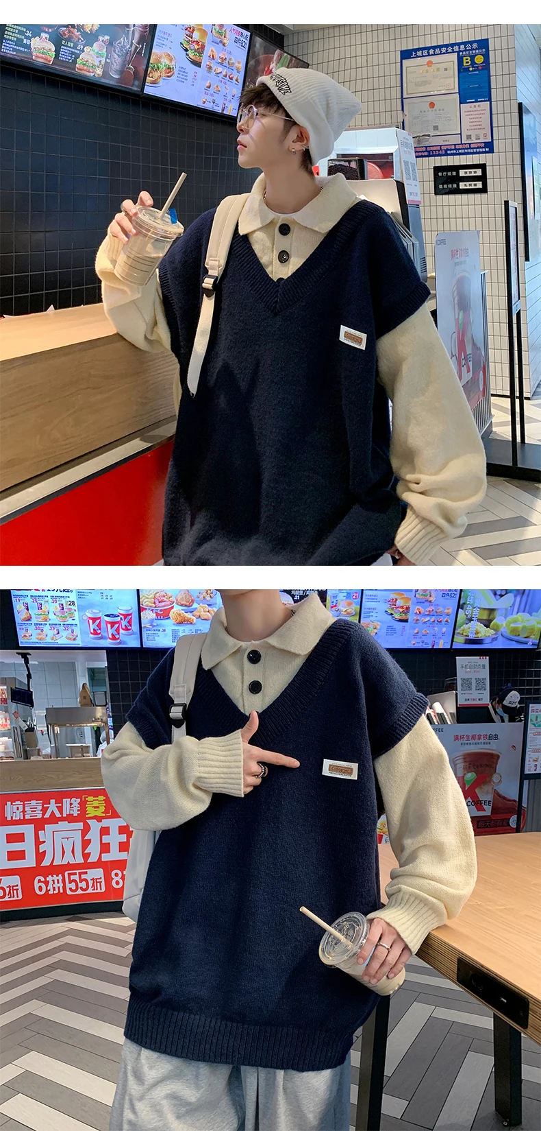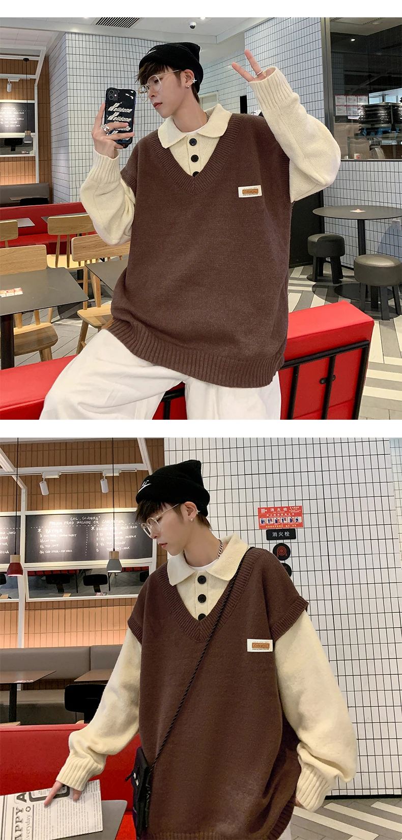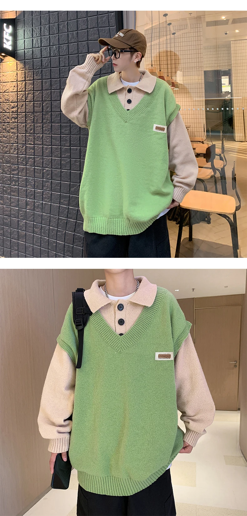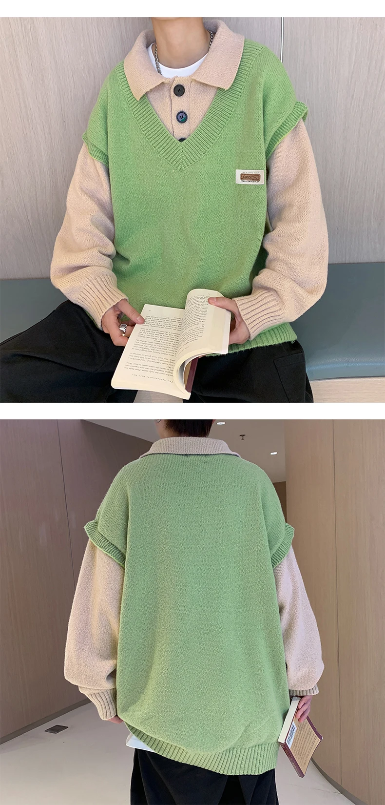 Wiaofellas Fake two collar sweater men winter style lazy coat loose knit in autumn and winter